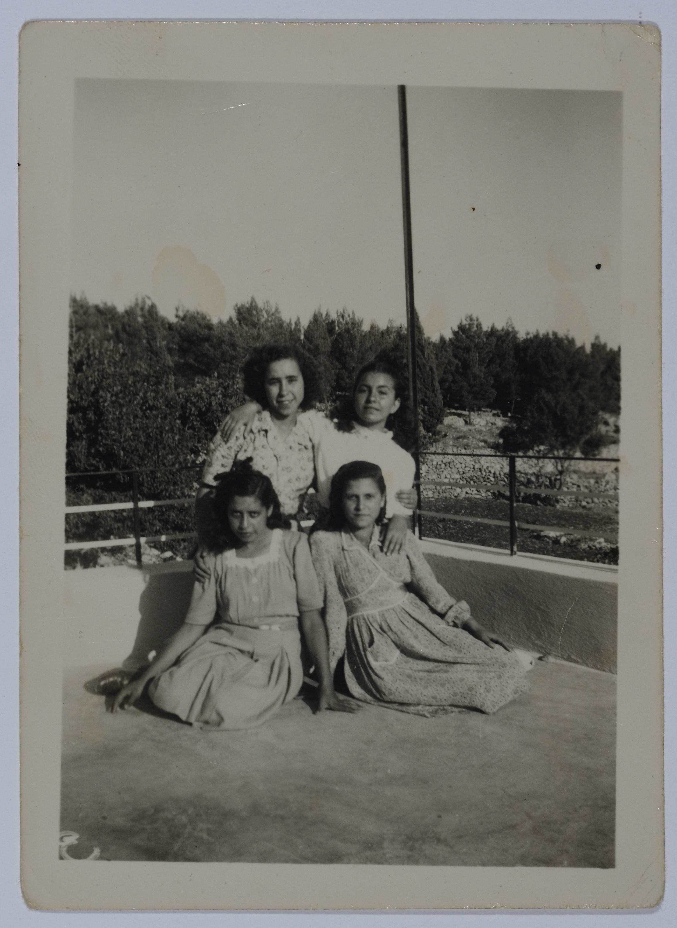 Taken in 1946, this photograph shows Mahira Dajani and others during a school trip.