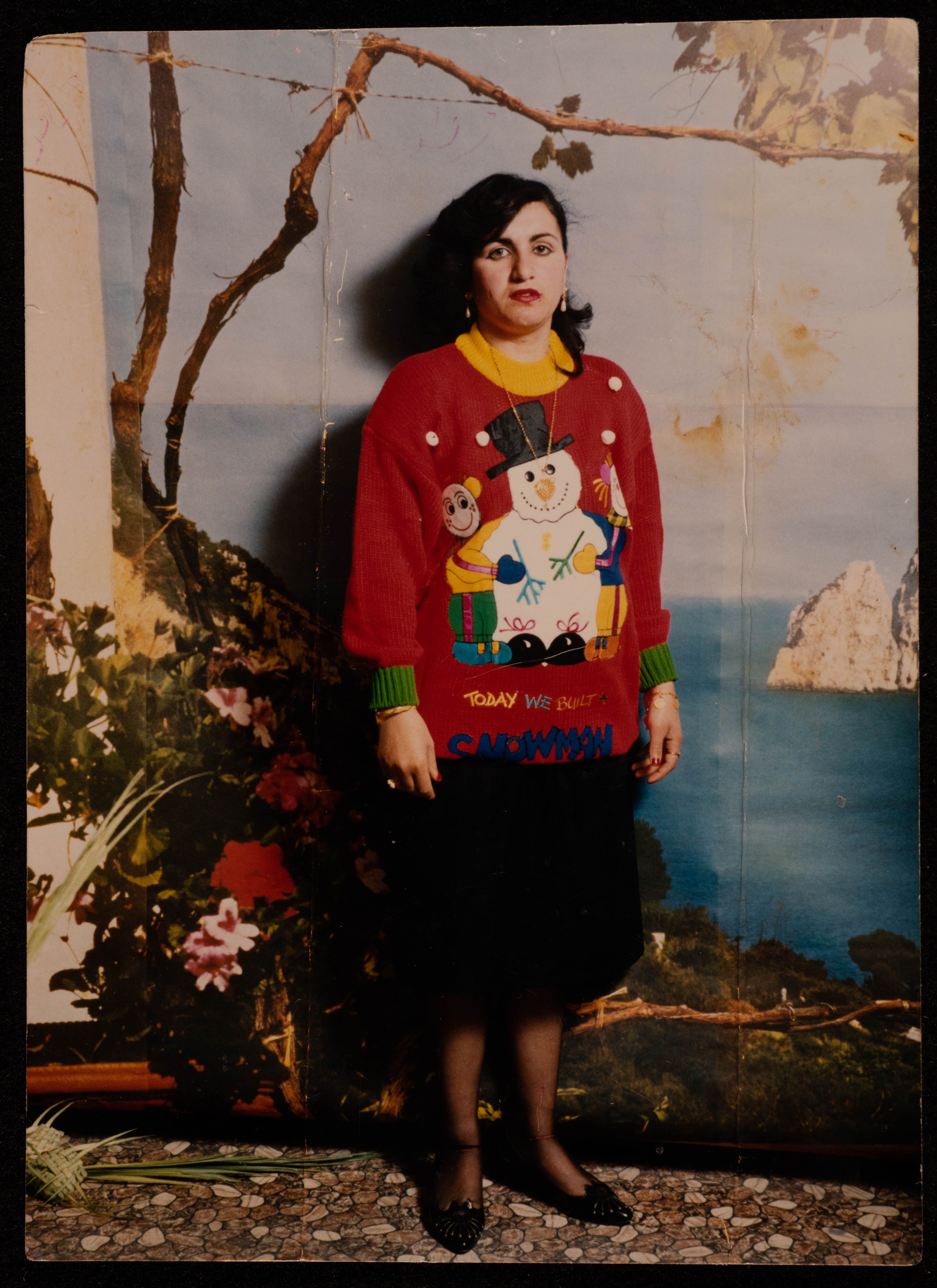 Taken at a studio in Ramallah, this undated photograph shows Randa Salman Saba Izz and was sent to her sister Lillian Izz; wife of Fo'ad Qare.