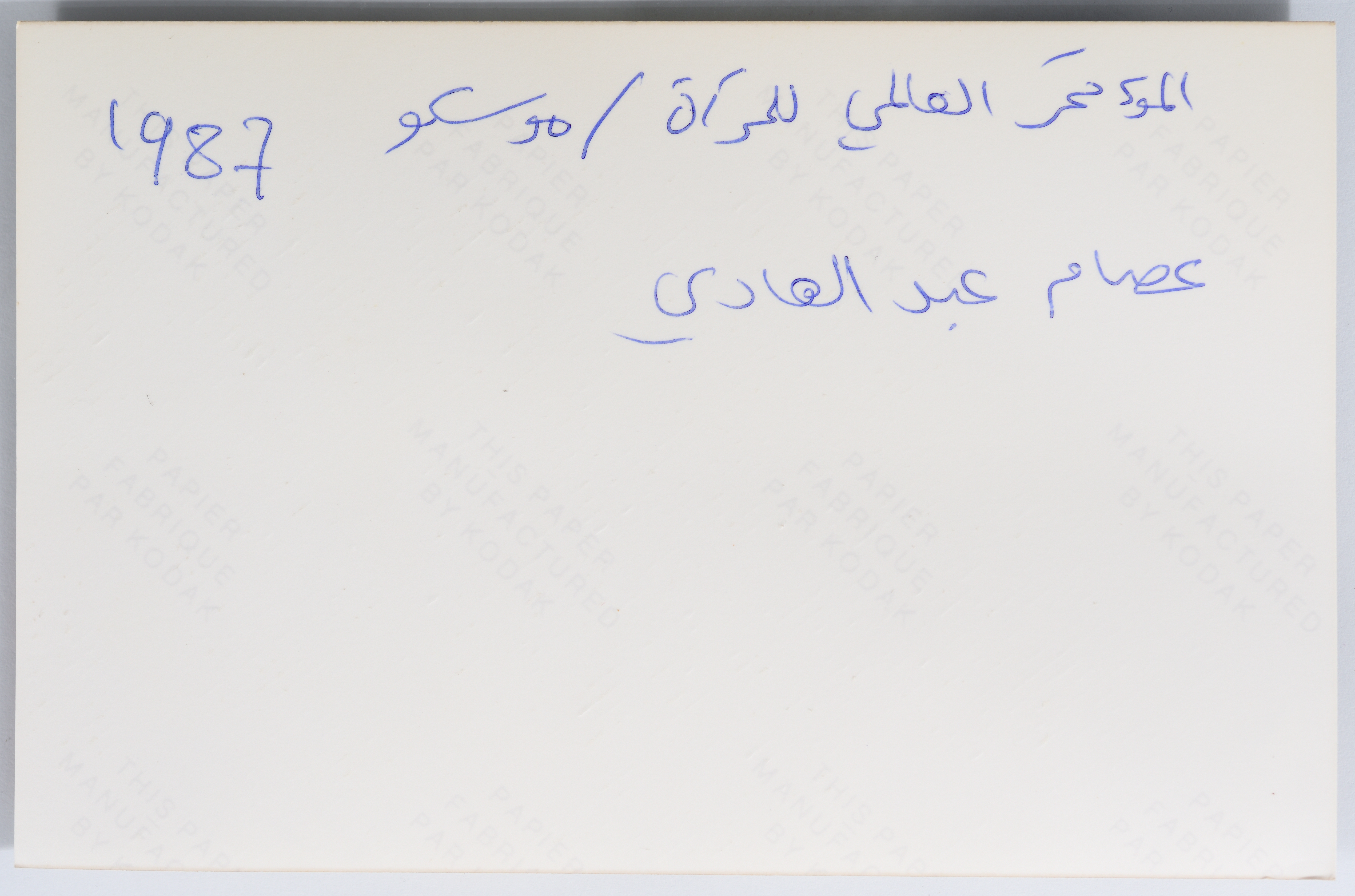 صورة ملونة من مشاركة الاتحاد العام للمرأة الفلسطينية في مؤتمر المرأة العالمي في موسكو وتظهر فيها السيدة عصام عبد الهادي.