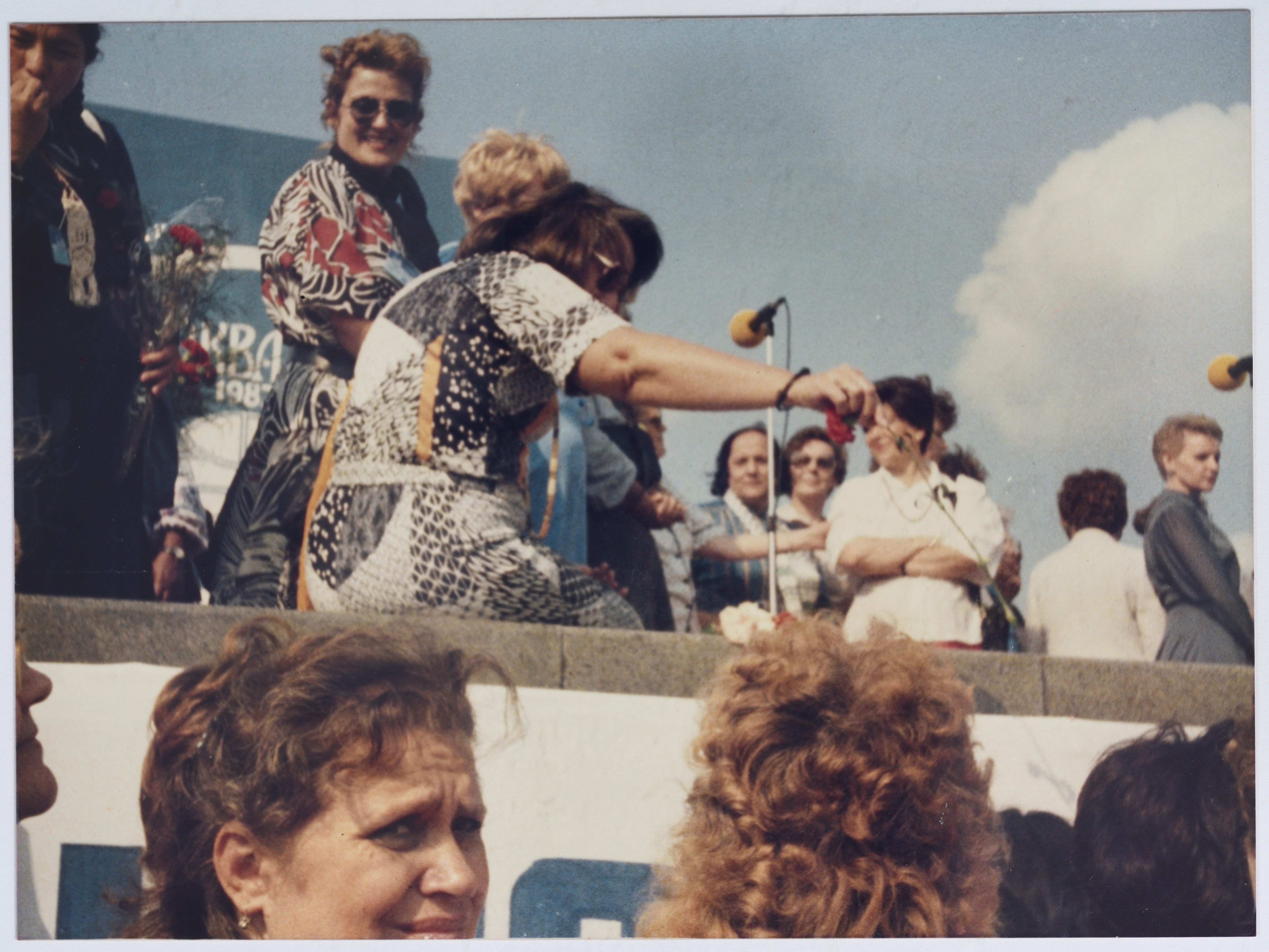 صورة ملونة من مشاركة الاتحاد العام للمرأة الفلسطينية في مؤتمر العالمي للمرأة في موسكو.
