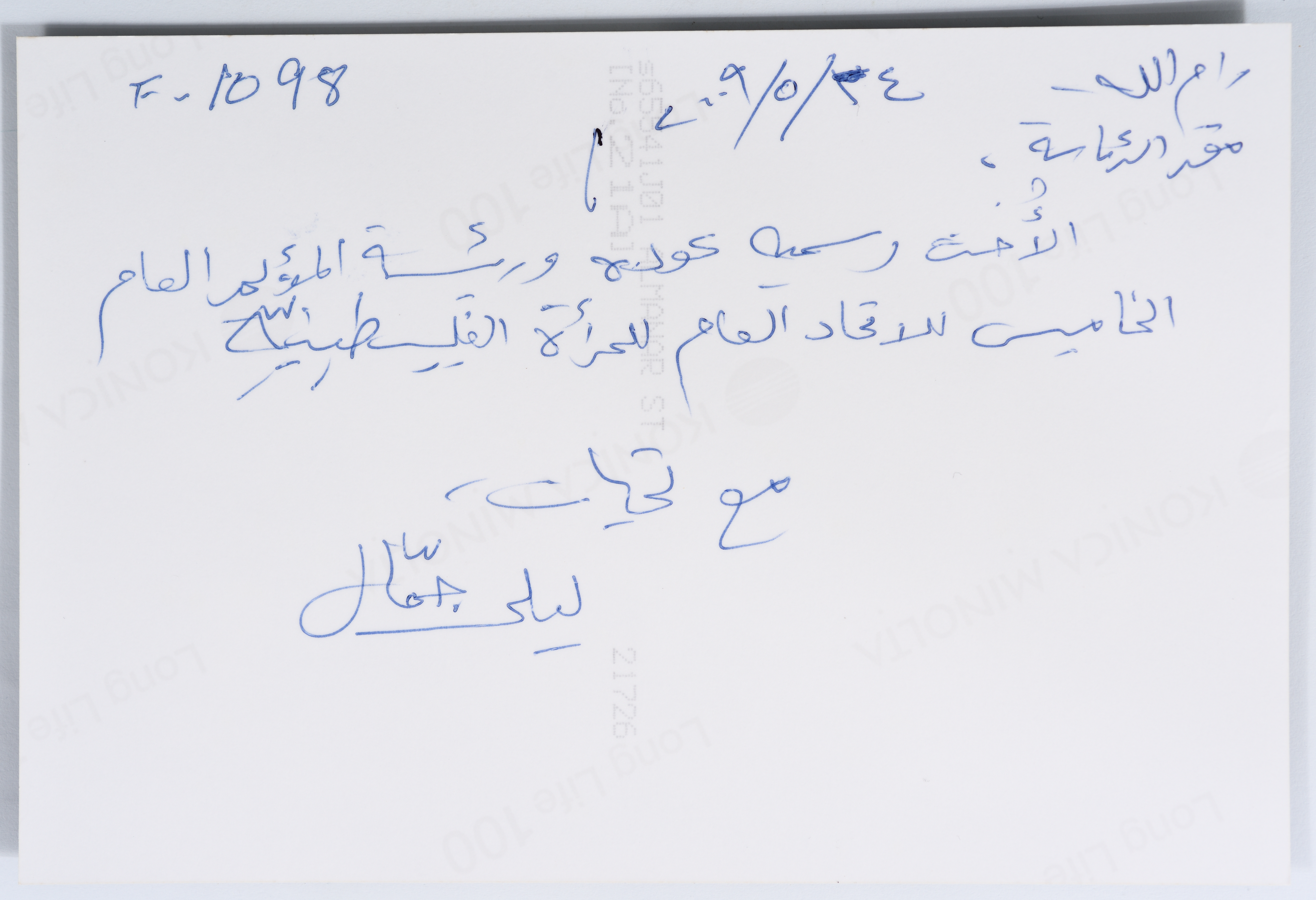 صورة ملونة تظهر بها المناضلة رسمية عودة ورئيسة المؤتمر الخامس خلال فعاليات المؤتمر الخامس للاتحاد العام للمرأة الفلسطينية المنعقد في رام الله في العام 2009