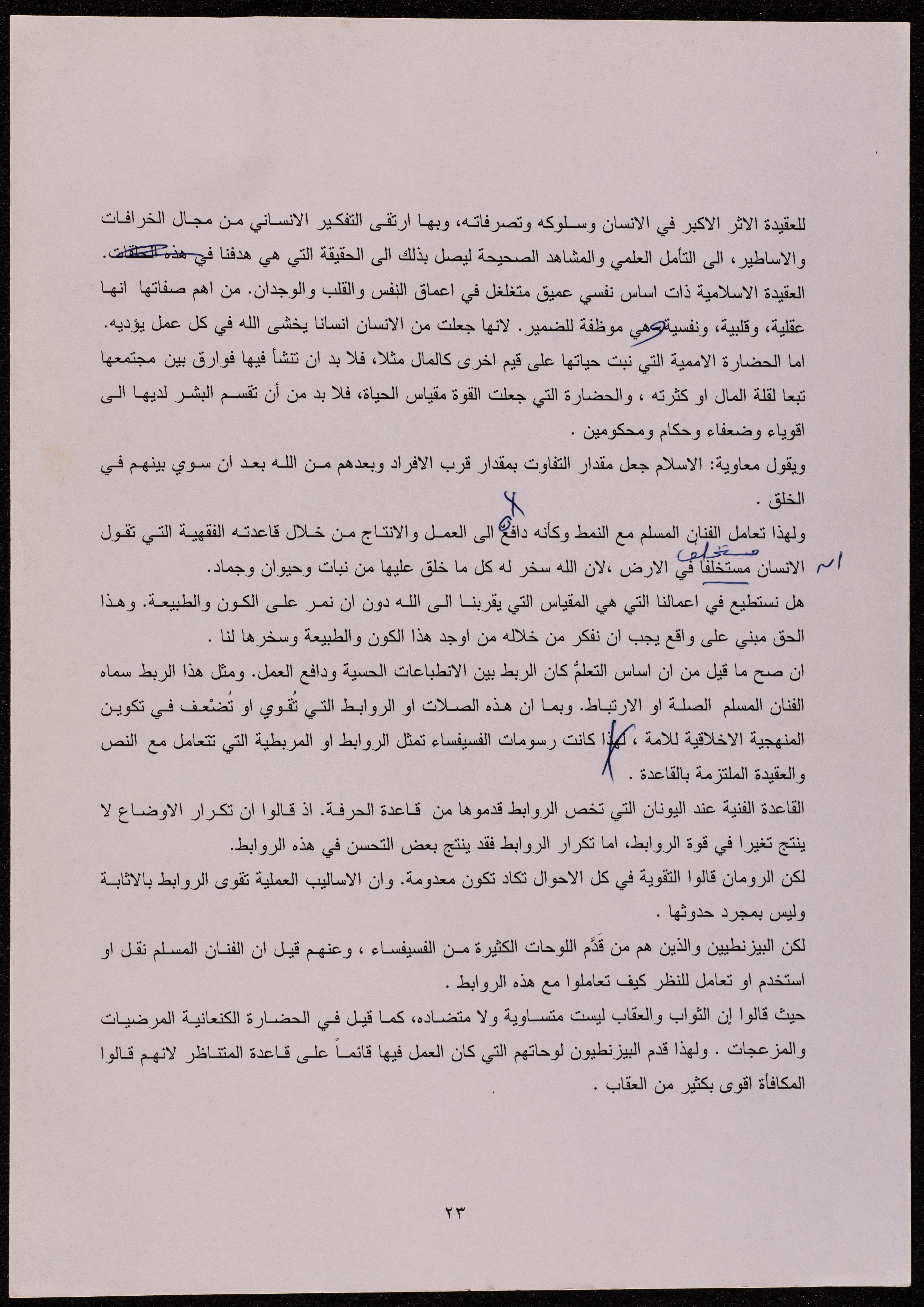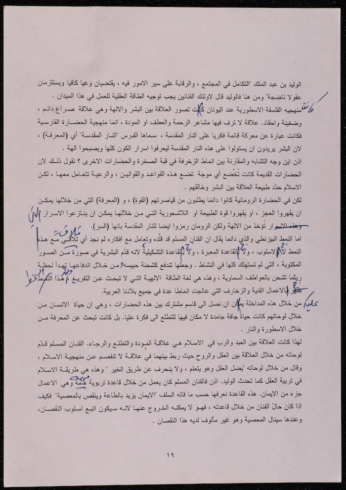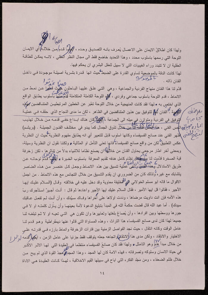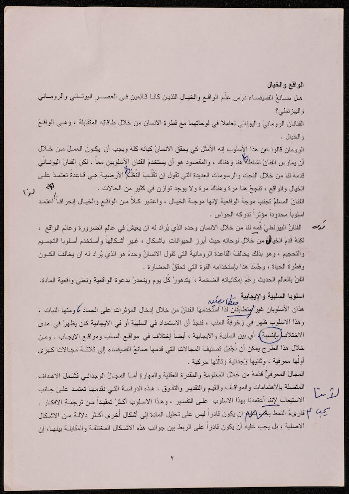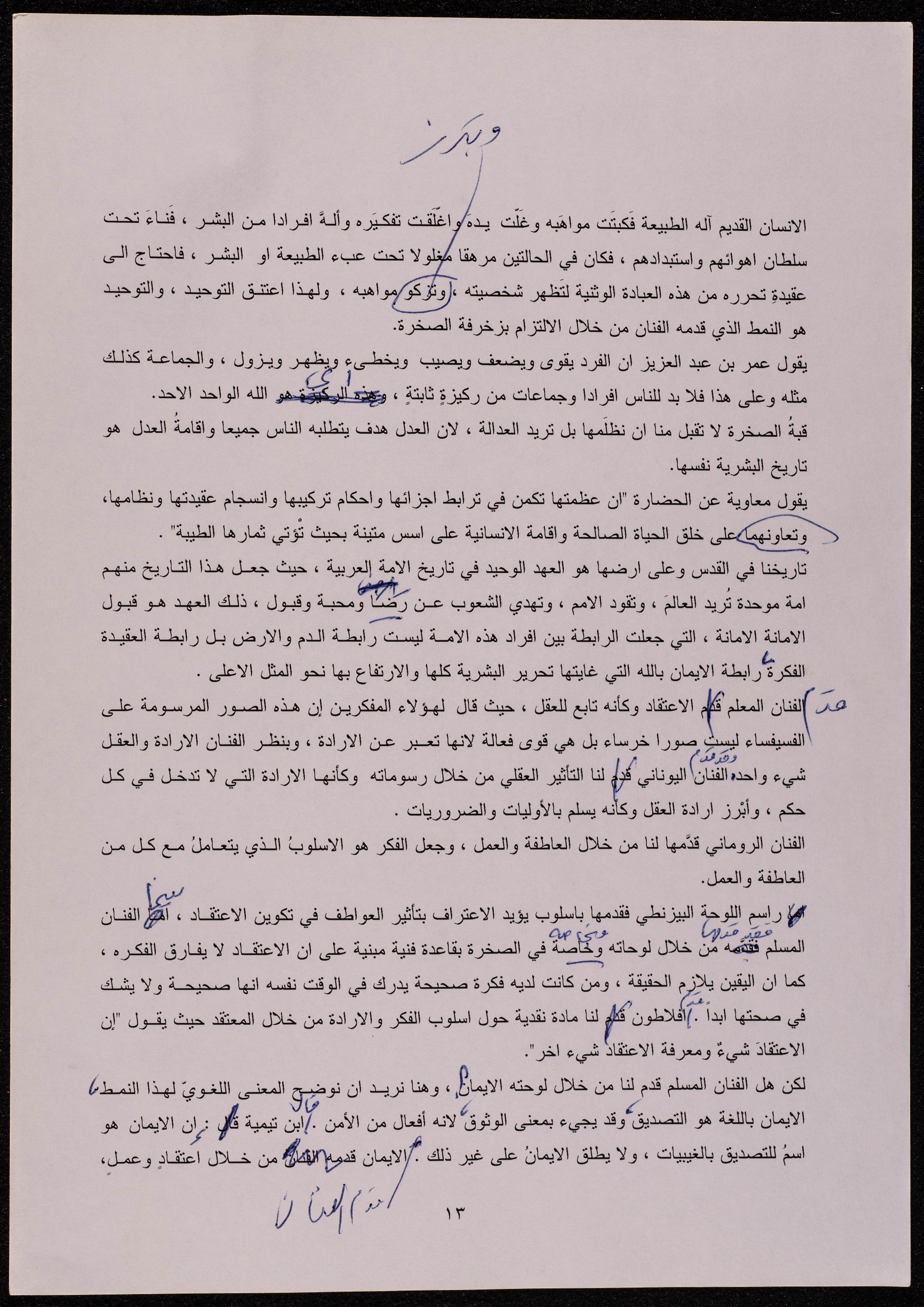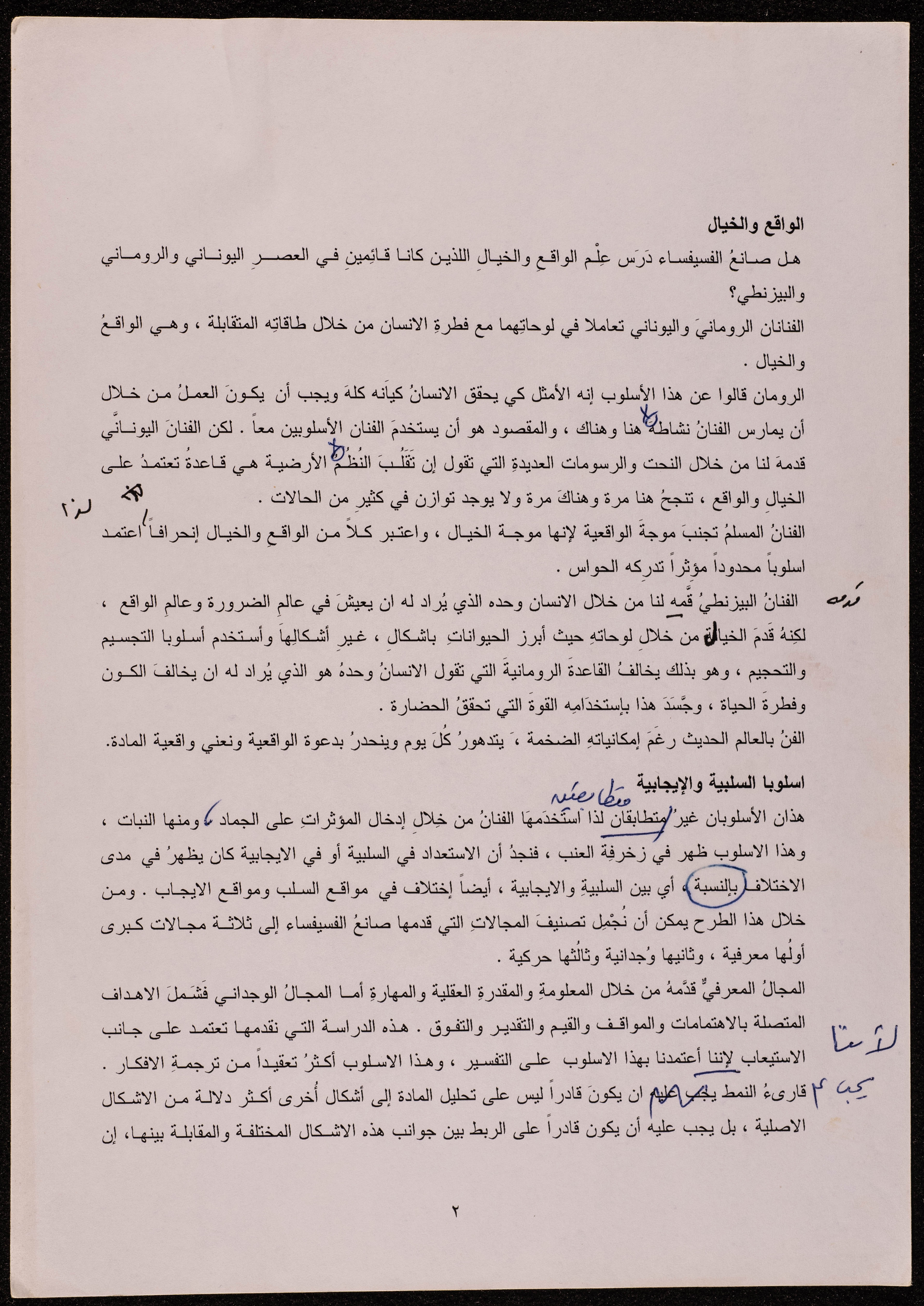 توثق هذه المادة الأرشيفية غير المؤرخة، والمطبوعة باللغة العربية، ورقة تحليلية لإبراهيم الفنّي حول فسيفساء قبة الصخرة، حيث تتبع الكاتب فن الزخرفة والفسيفساء في العصر البيزنطي والروماني واليوناني، ومجالات الفسيفساء الوجدانية والمعرفية والحركية، إضافة إلى مداخلة عن الزخرفة بأشكالها وأنواعها وتفسير وتحليل الرسومات الزخرفية حسب العصور التاريخية، كما وتناول موضوع ولادة الفن الإسلامي في القدس، وتحليل عناصر الزخرفة عبر أنماط الفسيفساء في قبة الصخرة.