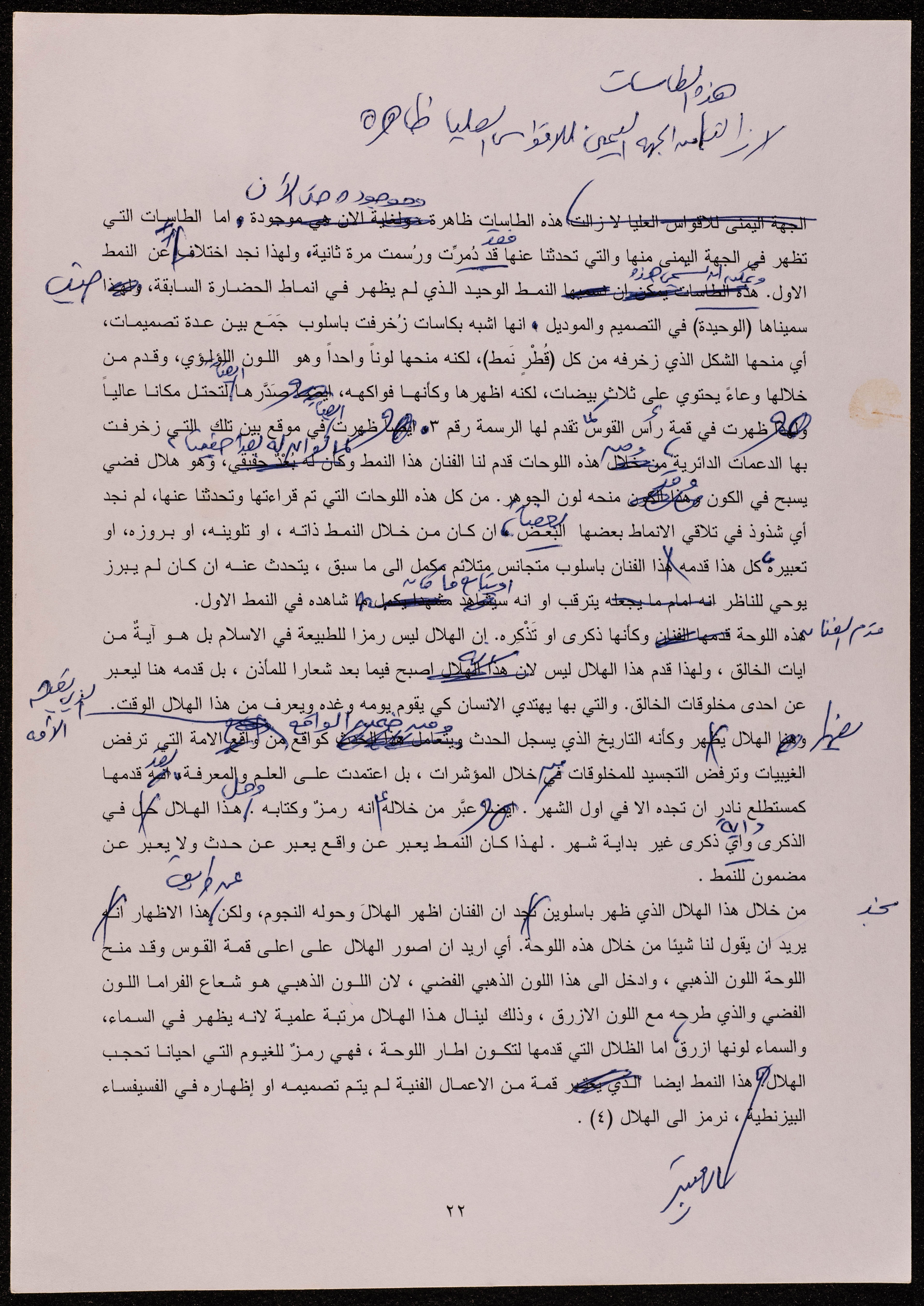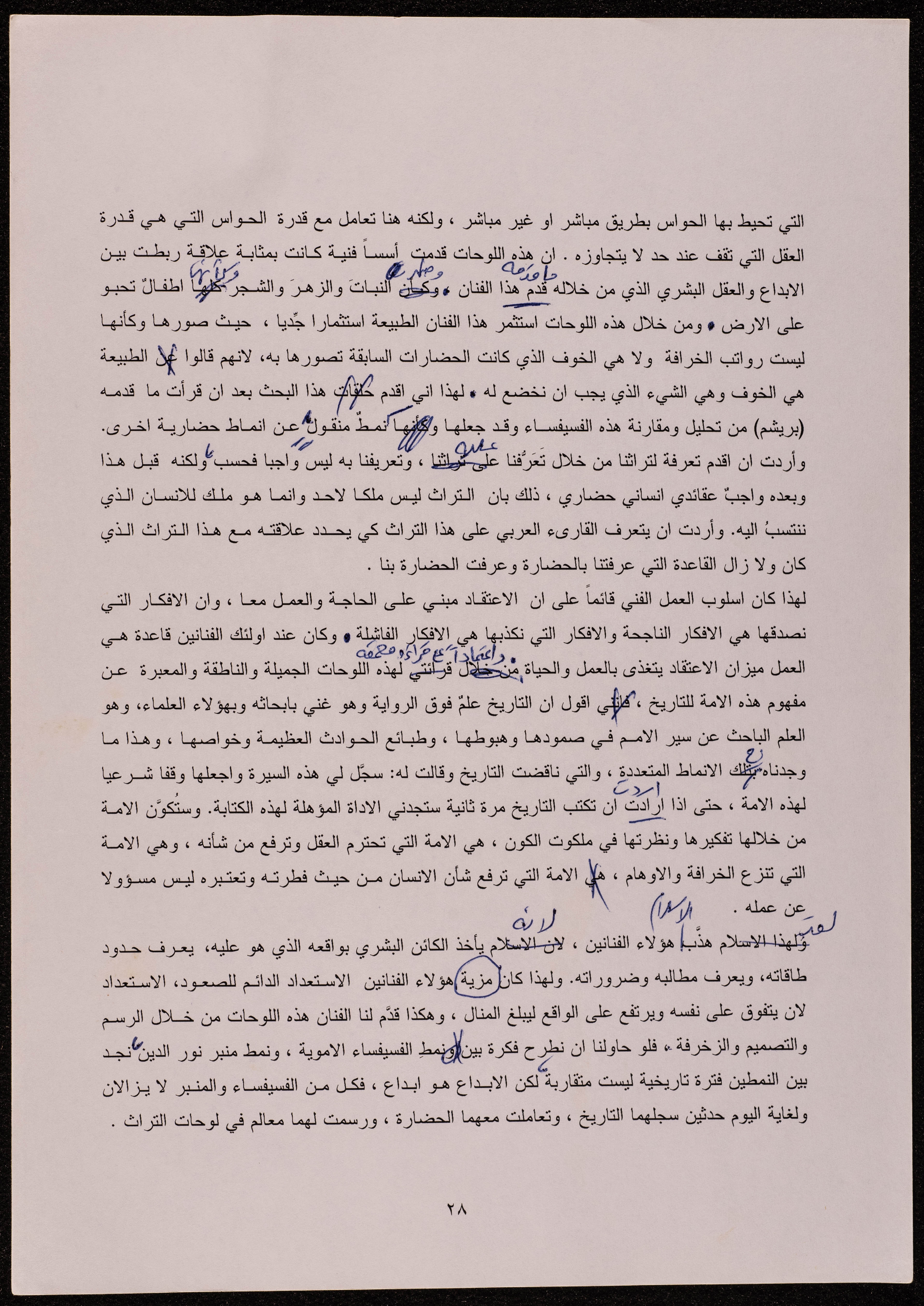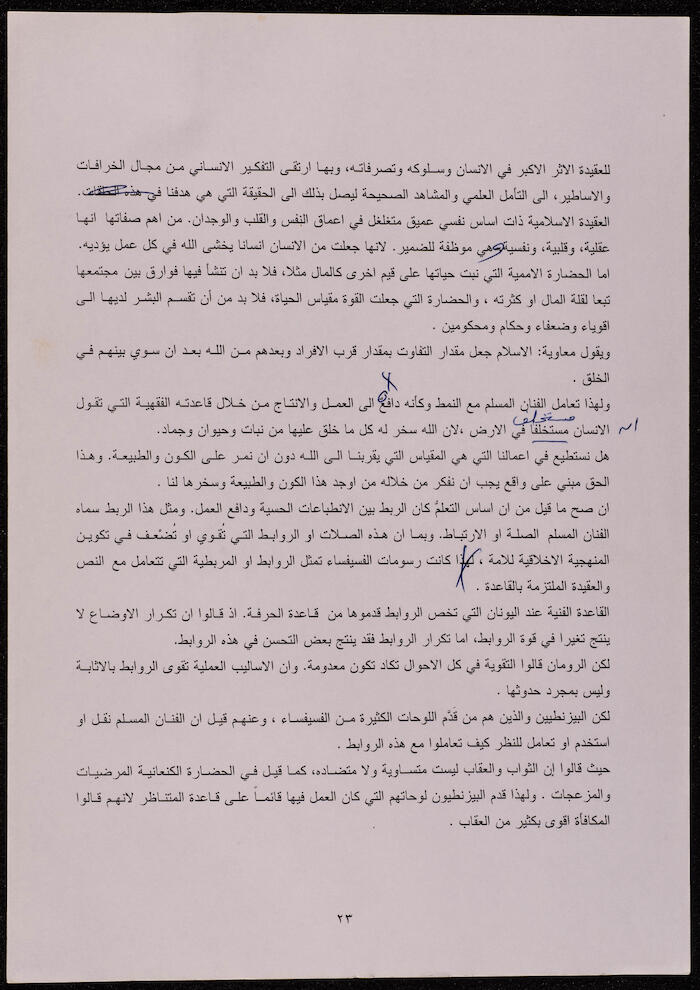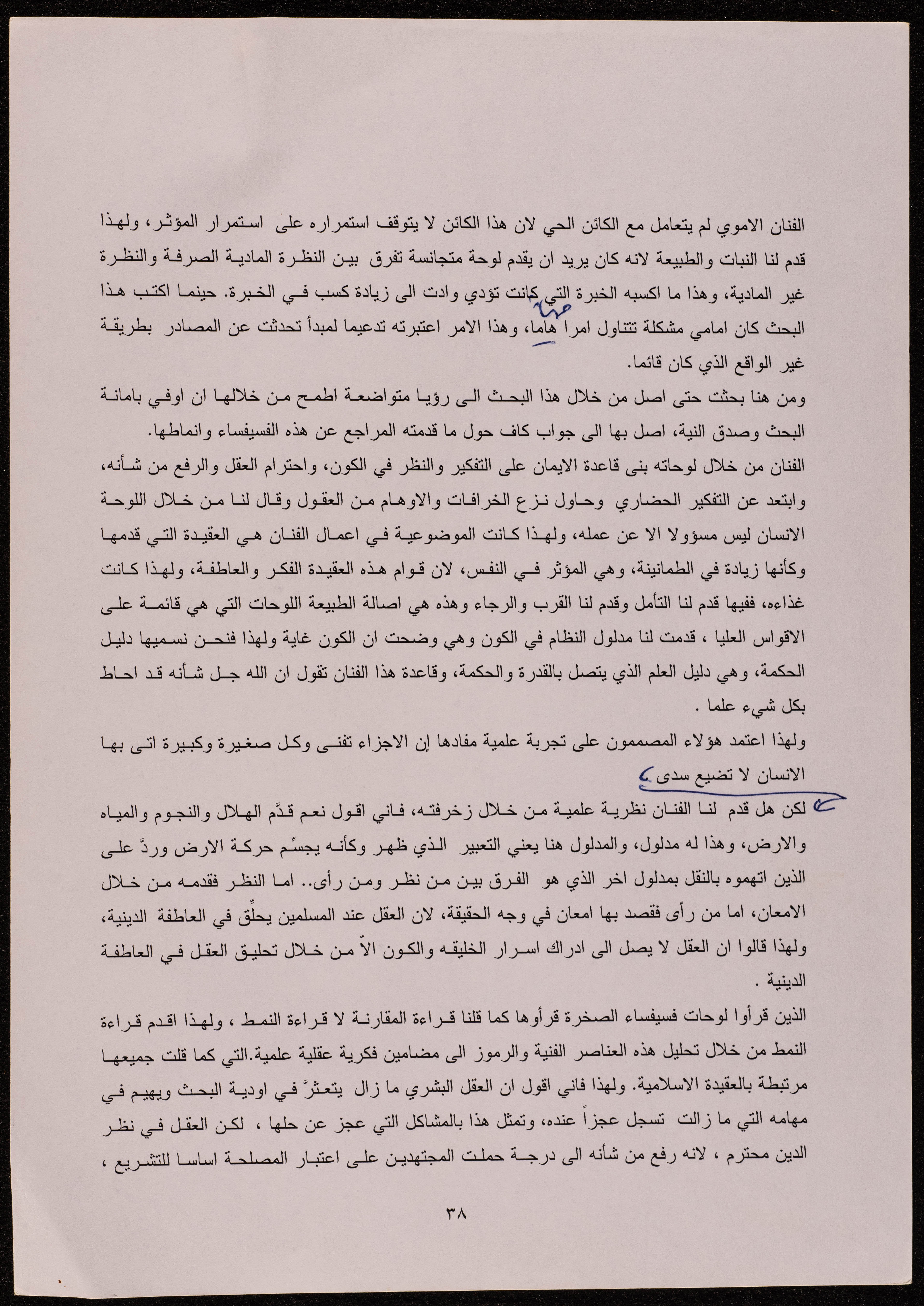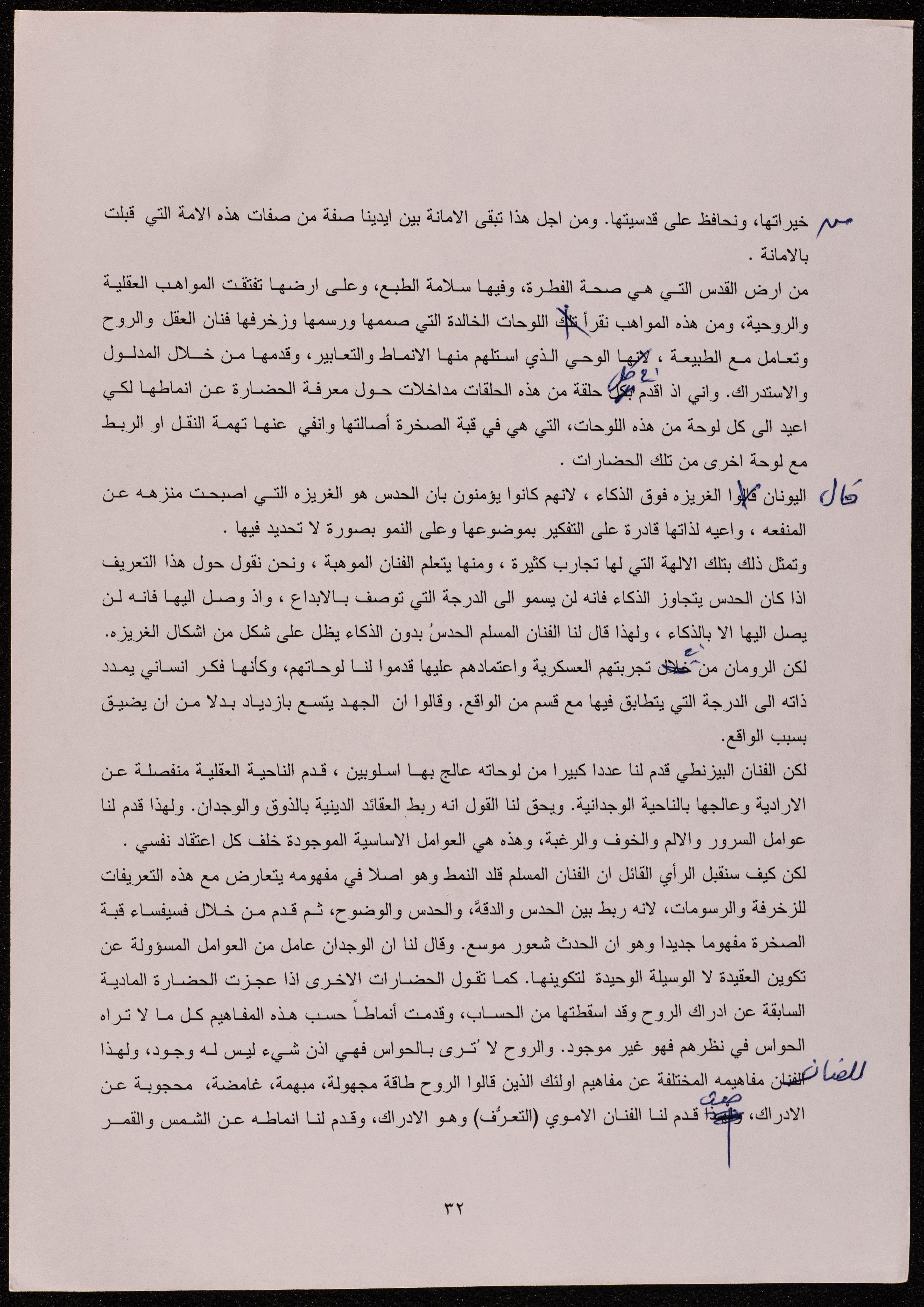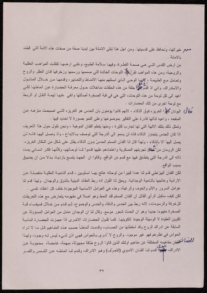 توثق هذه المادة الأرشيفية غير المؤرخة، والمطبوعة باللغة العربية، ورقة تحليلية لإبراهيم الفنّي حول فسيفساء قبة الصخرة، حيث تتبع الكاتب فن الزخرفة والفسيفساء في العصر البيزنطي والروماني واليوناني، ومجالات الفسيفساء الوجدانية والمعرفية والحركية، إضافة إلى مداخلة عن الزخرفة بأشكالها وأنواعها وتفسير وتحليل الرسومات الزخرفية حسب العصور التاريخية، كما وتناول موضوع ولادة الفن الإسلامي في القدس، وتحليل عناصر الزخرفة عبر أنماط الفسيفساء في قبة الصخرة.