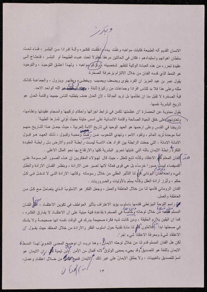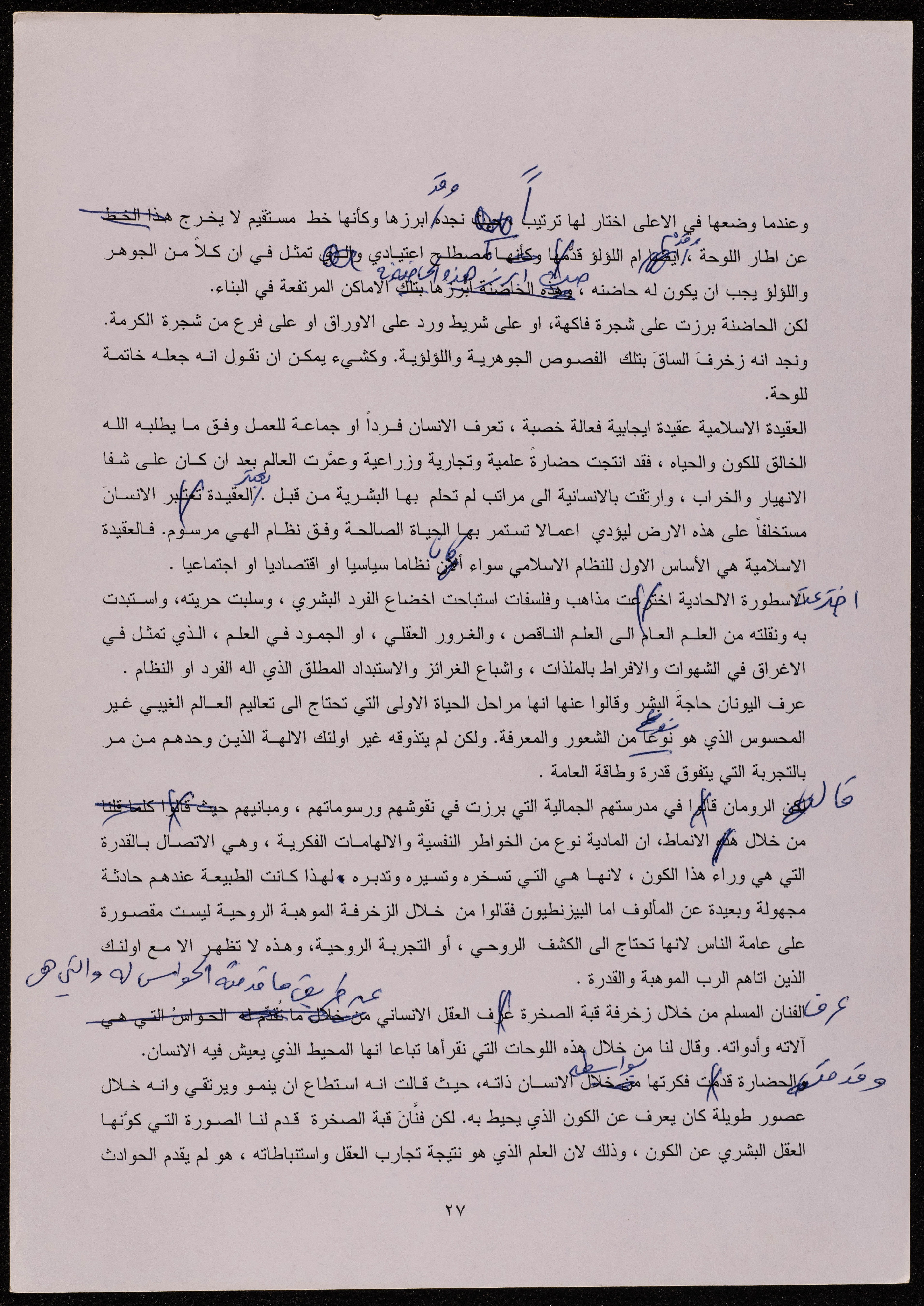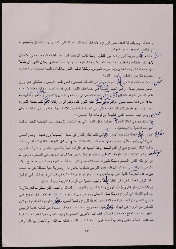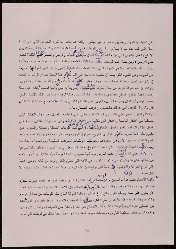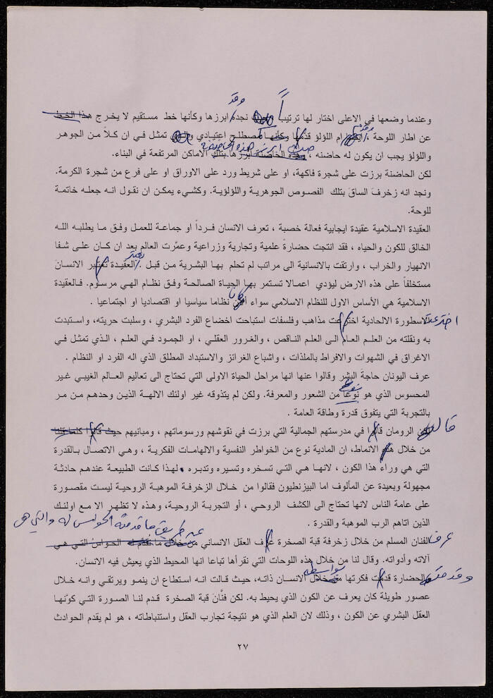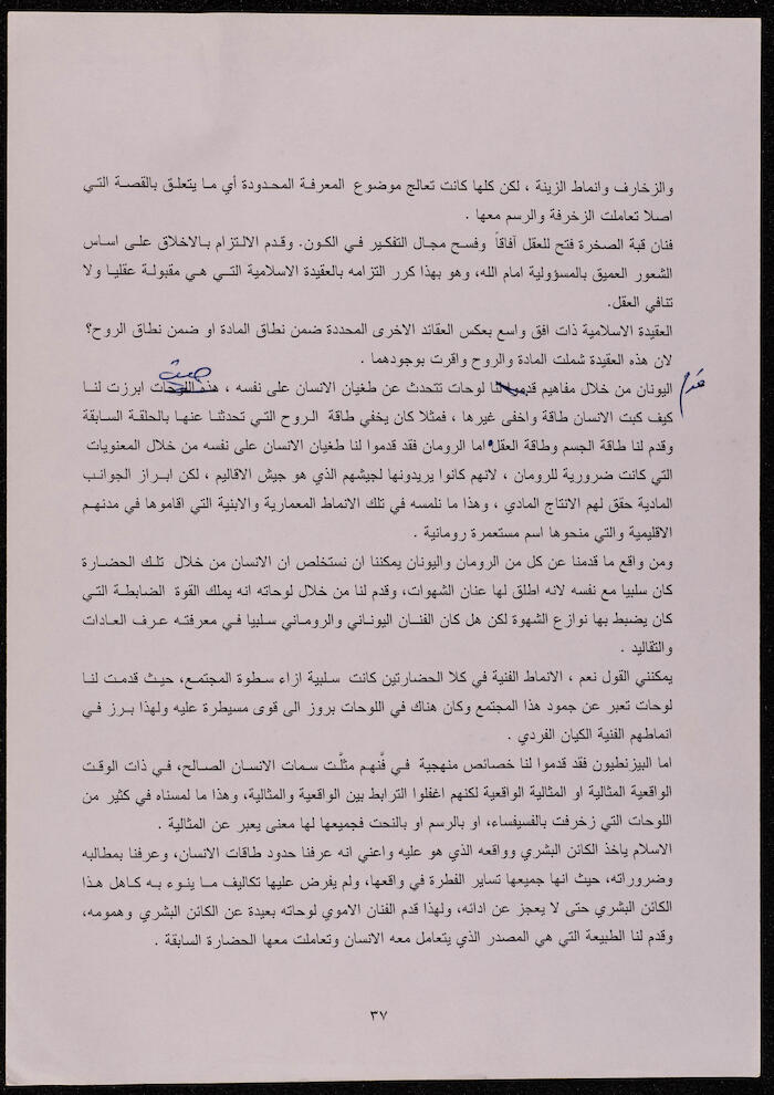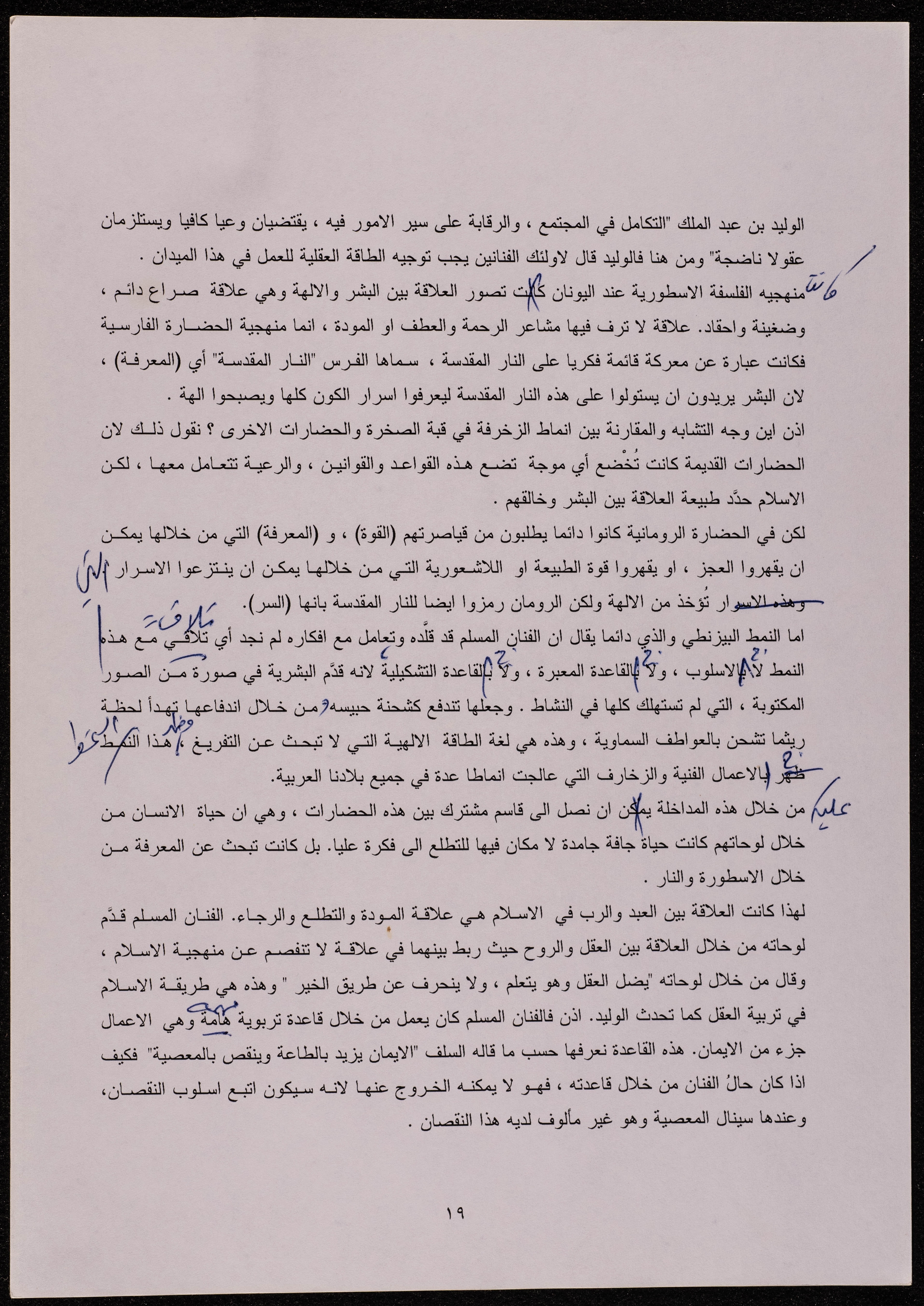 توثق هذه المادة الأرشيفية غير المؤرخة، والمطبوعة باللغة العربية، ورقة تحليلية لإبراهيم الفنّي حول فسيفساء قبة الصخرة، حيث تتبع الكاتب فن الزخرفة والفسيفساء في العصر البيزنطي والروماني واليوناني، ومجالات الفسيفساء الوجدانية والمعرفية والحركية، إضافة إلى مداخلة عن الزخرفة بأشكالها وأنواعها وتفسير وتحليل الرسومات الزخرفية حسب العصور التاريخية، كما وتناول موضوع ولادة الفن الإسلامي في القدس، وتحليل عناصر الزخرفة عبر أنماط الفسيفساء في قبة الصخرة.