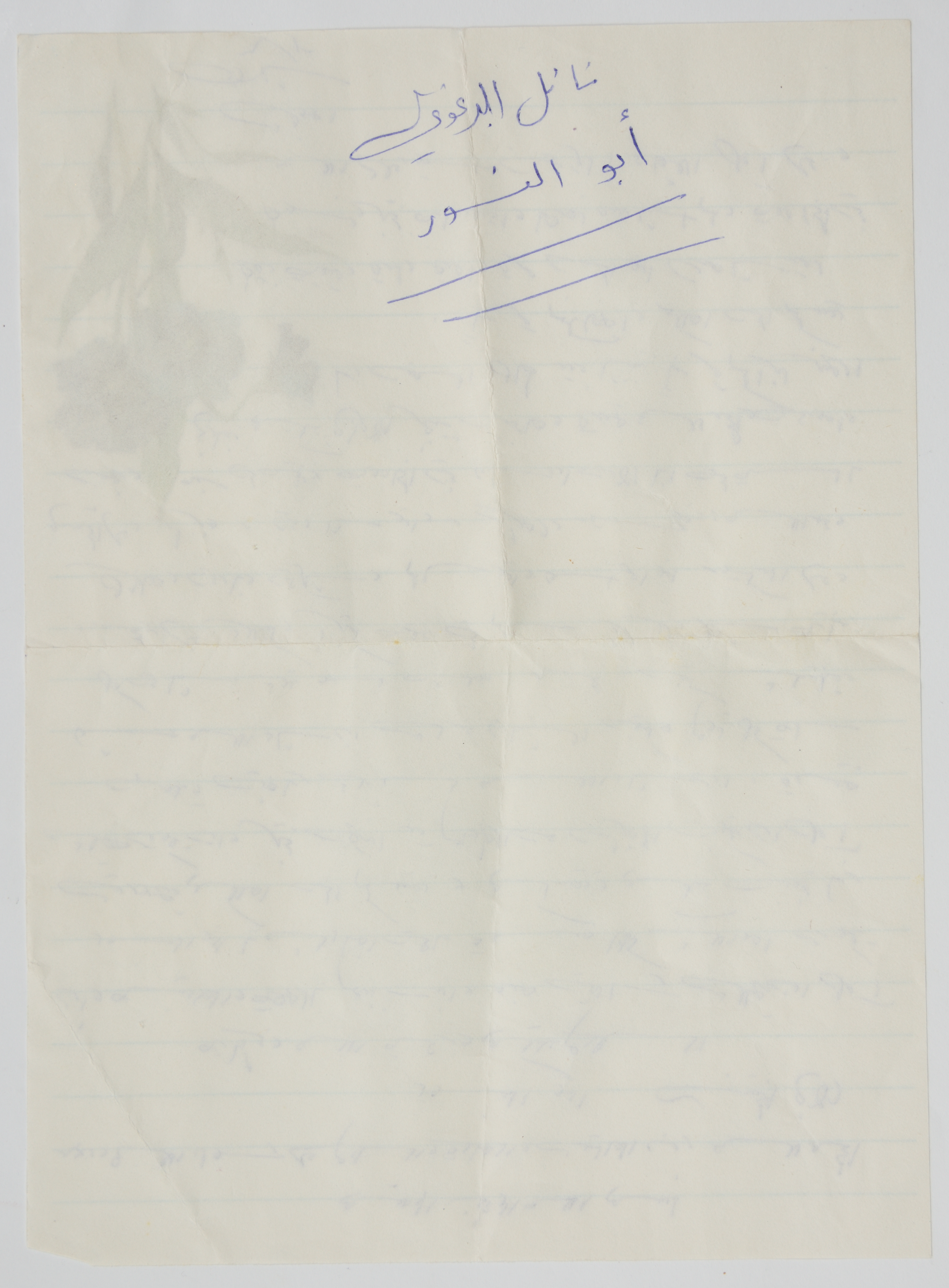 مادة مكتوبة بخط اليد في صفحة واحدة، أرسلها أسير يدعتى شادي إلى الأسير نائل الببرغوثي في السجن؛ ليطمئن عليهم وعلى صحتهم بعد الإضراب عن الطعام الذي خاضوه، ويسأل عن أصدقائهم وعن امورهم ويدعو لهم بالفرج القريب.