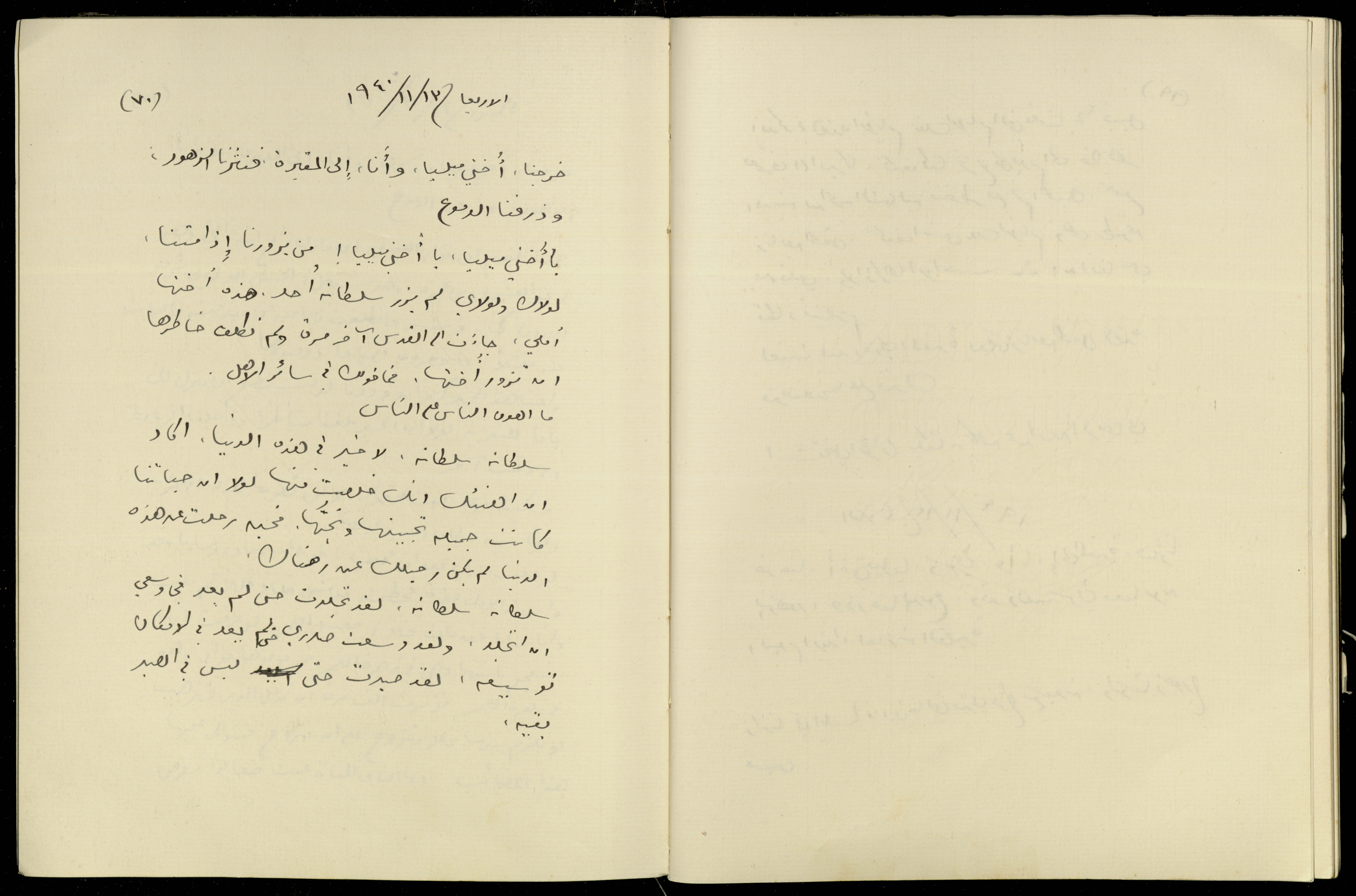 توثق هذه المادة الأرشيفية، المكتوبة بخط يد خليل السكاكيني، يوميته المؤرخة في يوم الأربعاء الموافق 13 تشرين الثاني 1940، وقد افتتحها بذكر خروجه وأخته ميليا إلى المقبرة ونثرهم الزهور عليها، ومما جاء فيها أيضاً معاتبة أخت زوجته؛ إملي التي جاءت من القدس ولم تكلف نفسها بزيارة قبر أختها، ويكتب بعد ذلك لسلطانة عن فراقها الصعب والثقيل عليه.