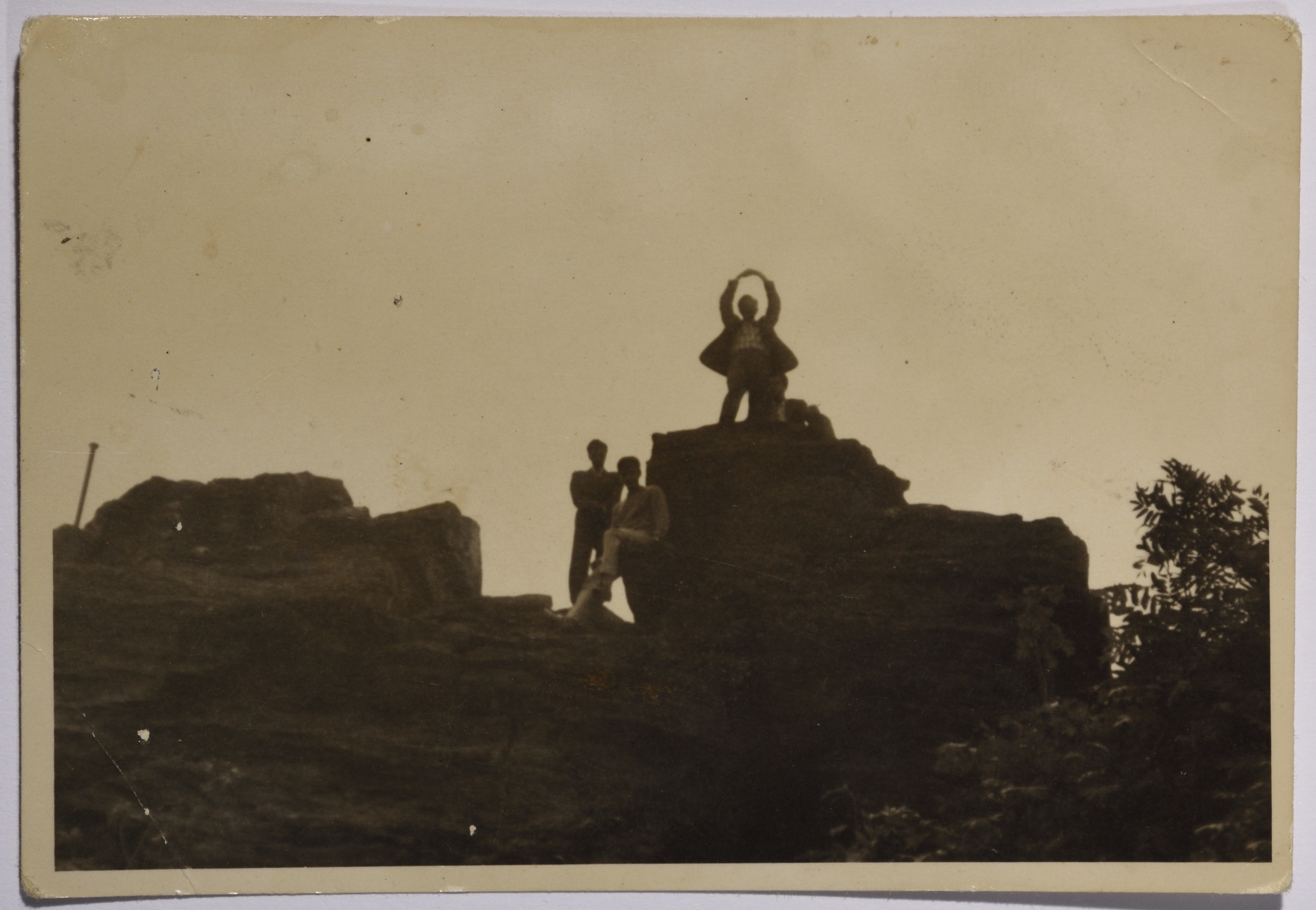 صورة بالأبيض والأسود لراجح السلفيتي مع اصدقائه في منطقة برية تدعى "قطان الحويط " في سلفيت، يظهر راجح وهو يعتلي الصخور وأصدقاءه يجلسون على الصخور، التقطت الصورة في أربعينيات القرن الماضي.