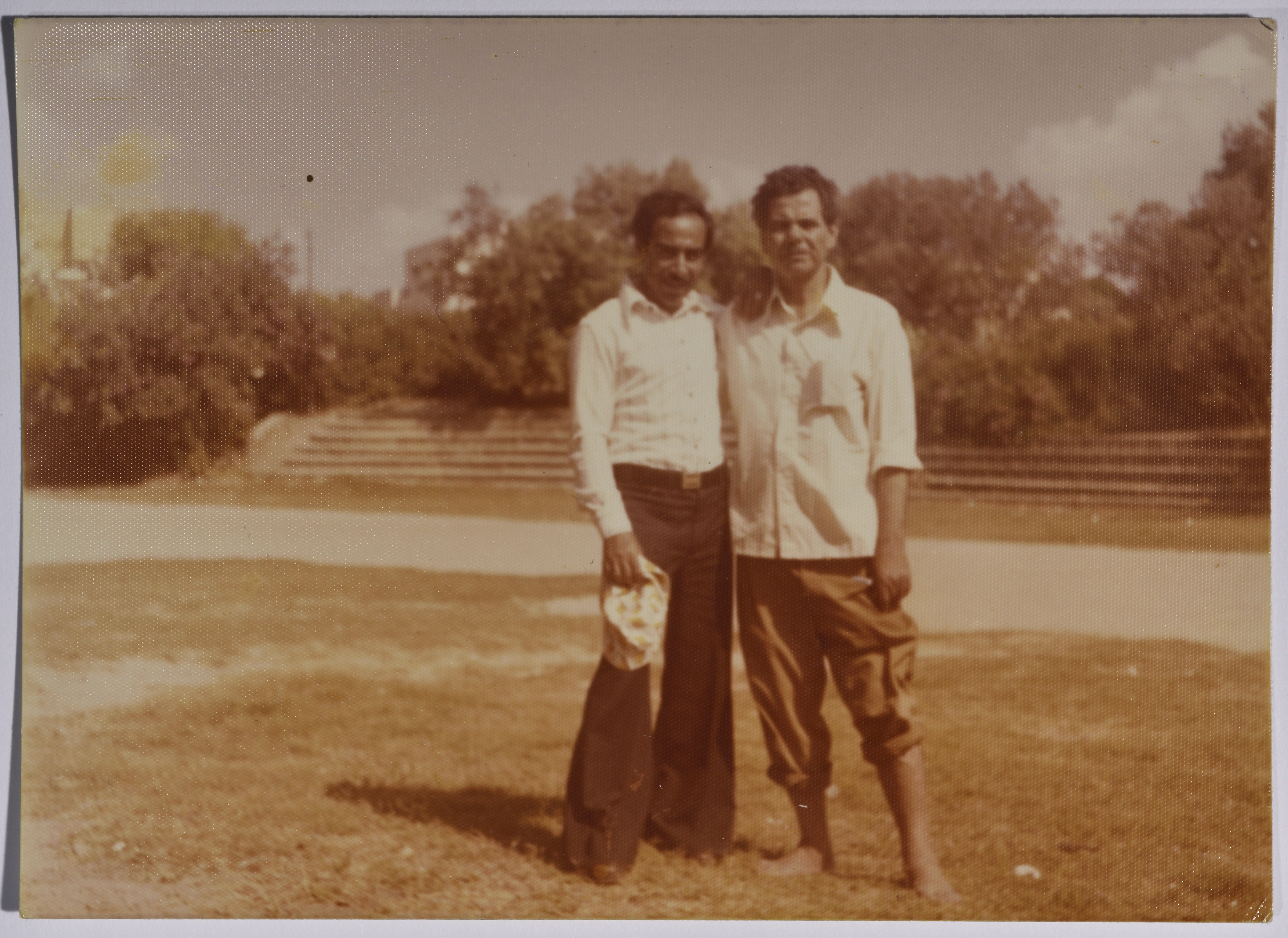 صورة ملونة لراجح السلفيتي مع صديقه خلال رحلة قام بها راجح هو وعائلته الى قلنسوة بدعوة من أحد اصدقائه هناك