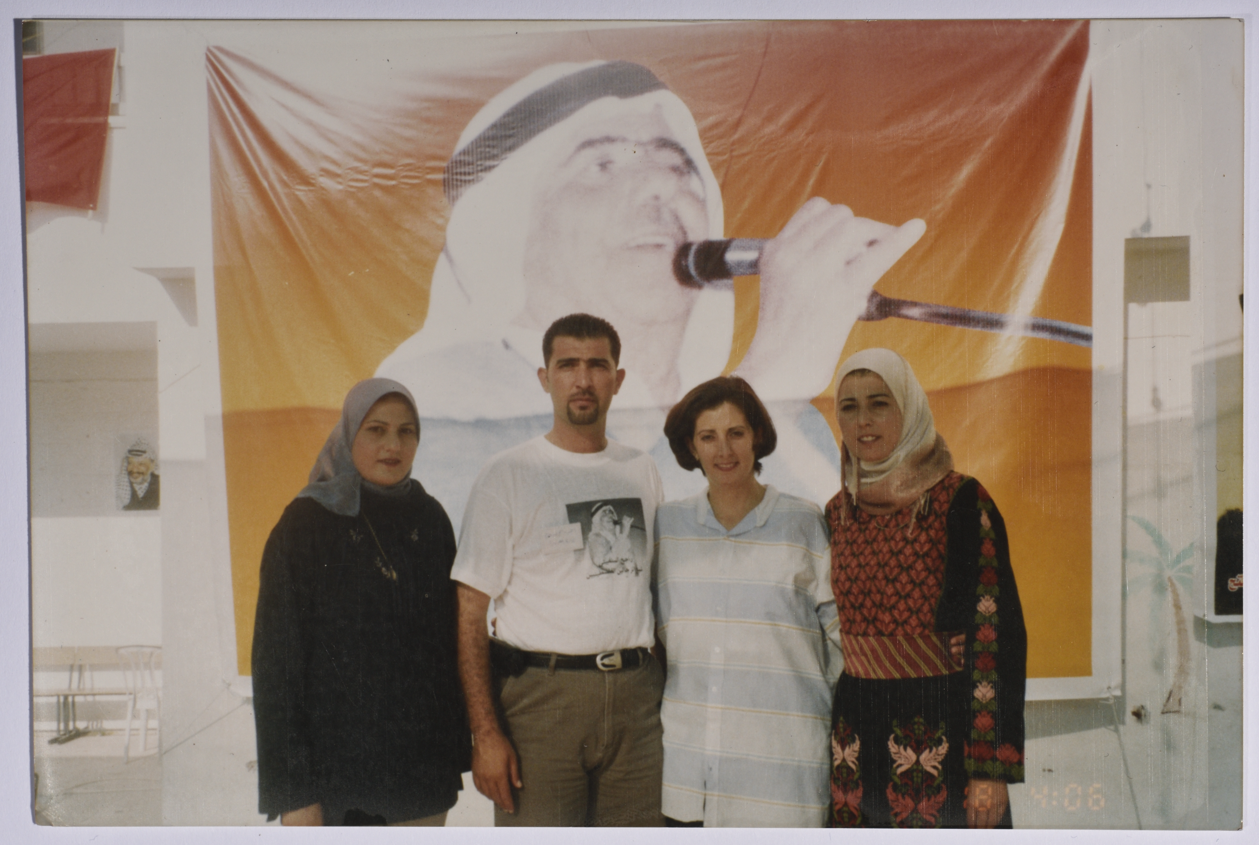 Taken in the 200s, this colour photograph features Rajih al Salfeety's family at his Festival held in Salfit. Shown in the photograph are Ahmad Rajih al Salfeety, his wife, and his two sisters Duha and ʿandalib.