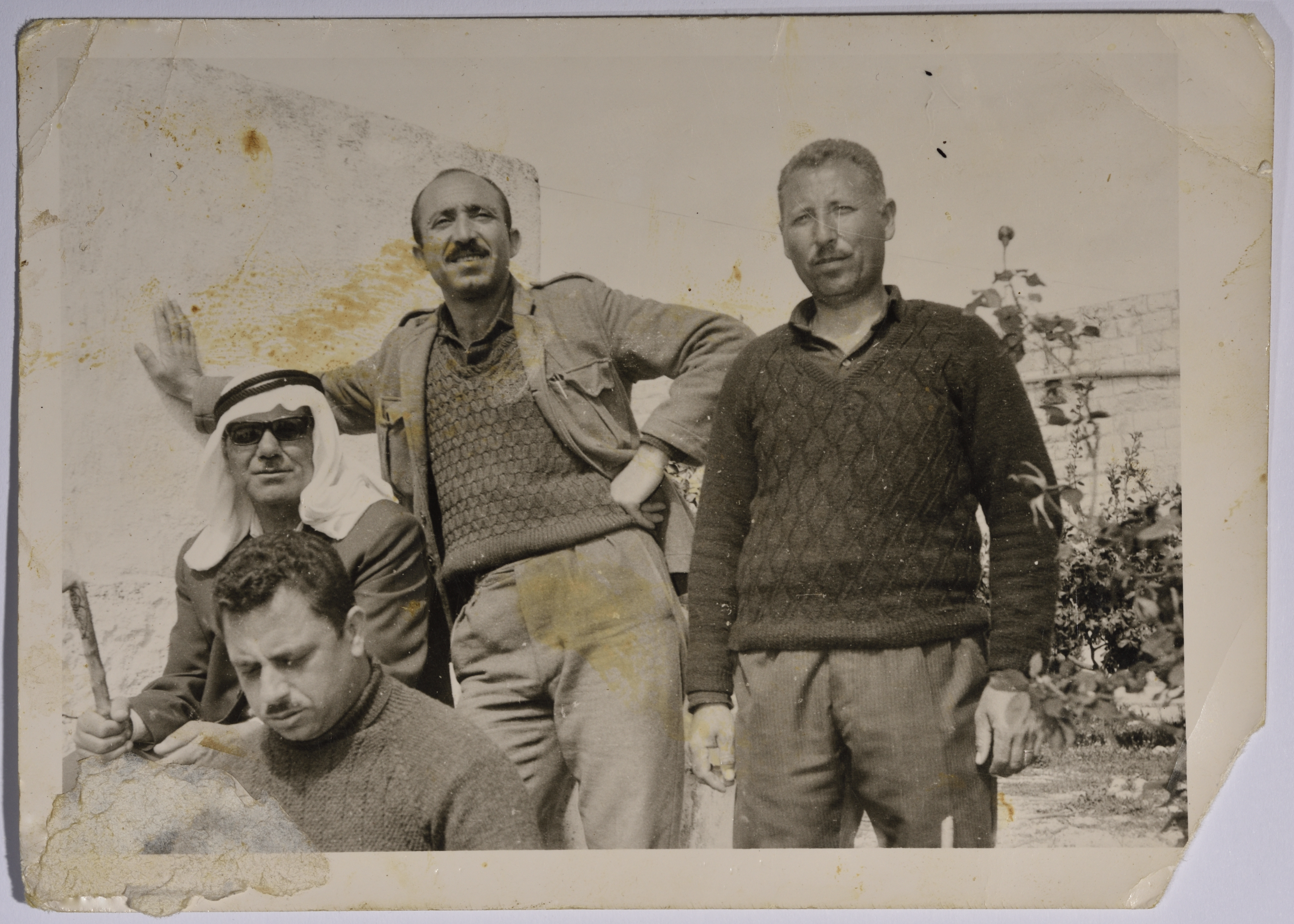 صورة بالأبيض والأسود لراجح السلفيتي مع مجموعة من اصدقائه في بلدته سلفيت، يعرف منهم أبو بلال الحريم