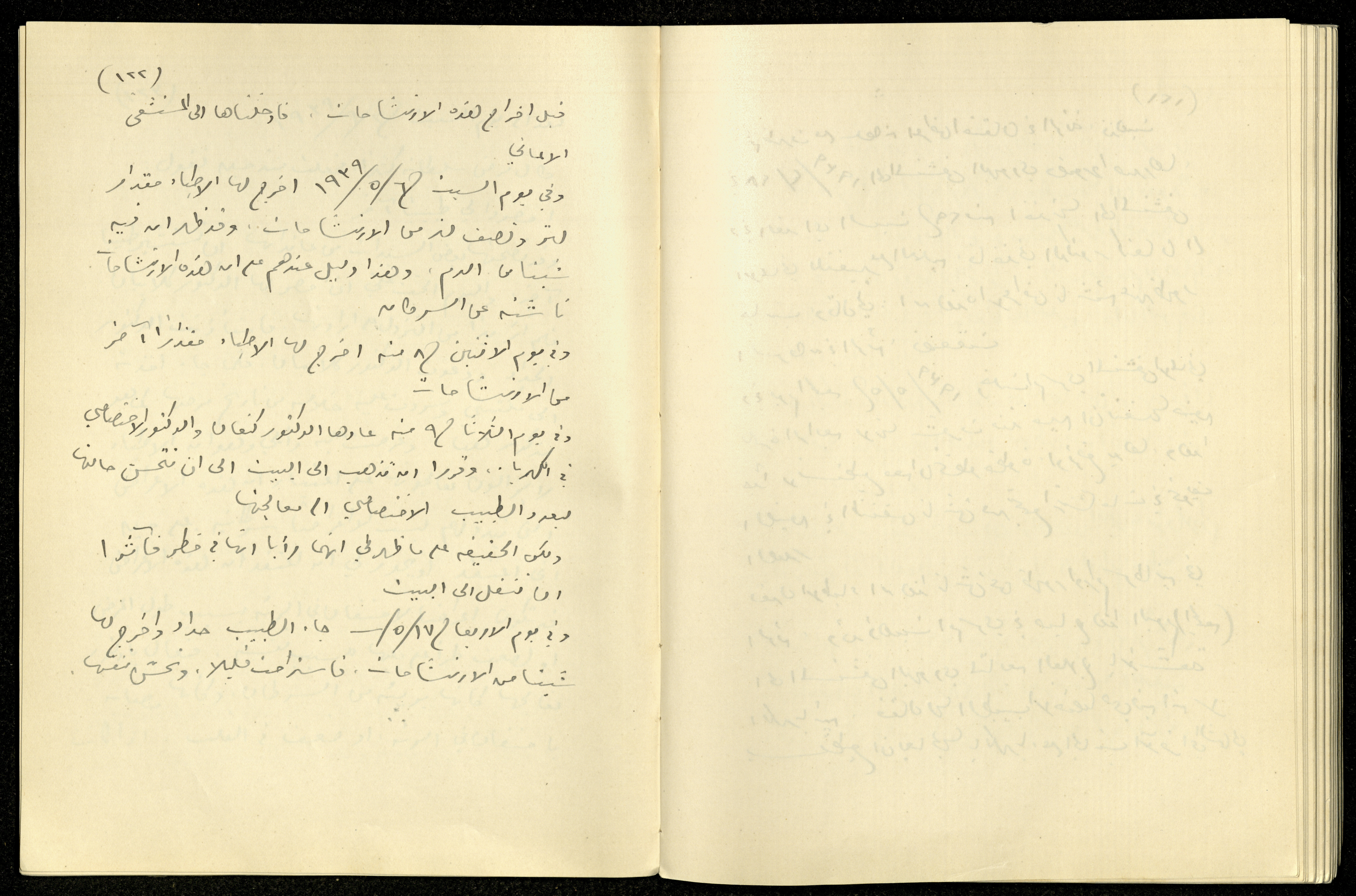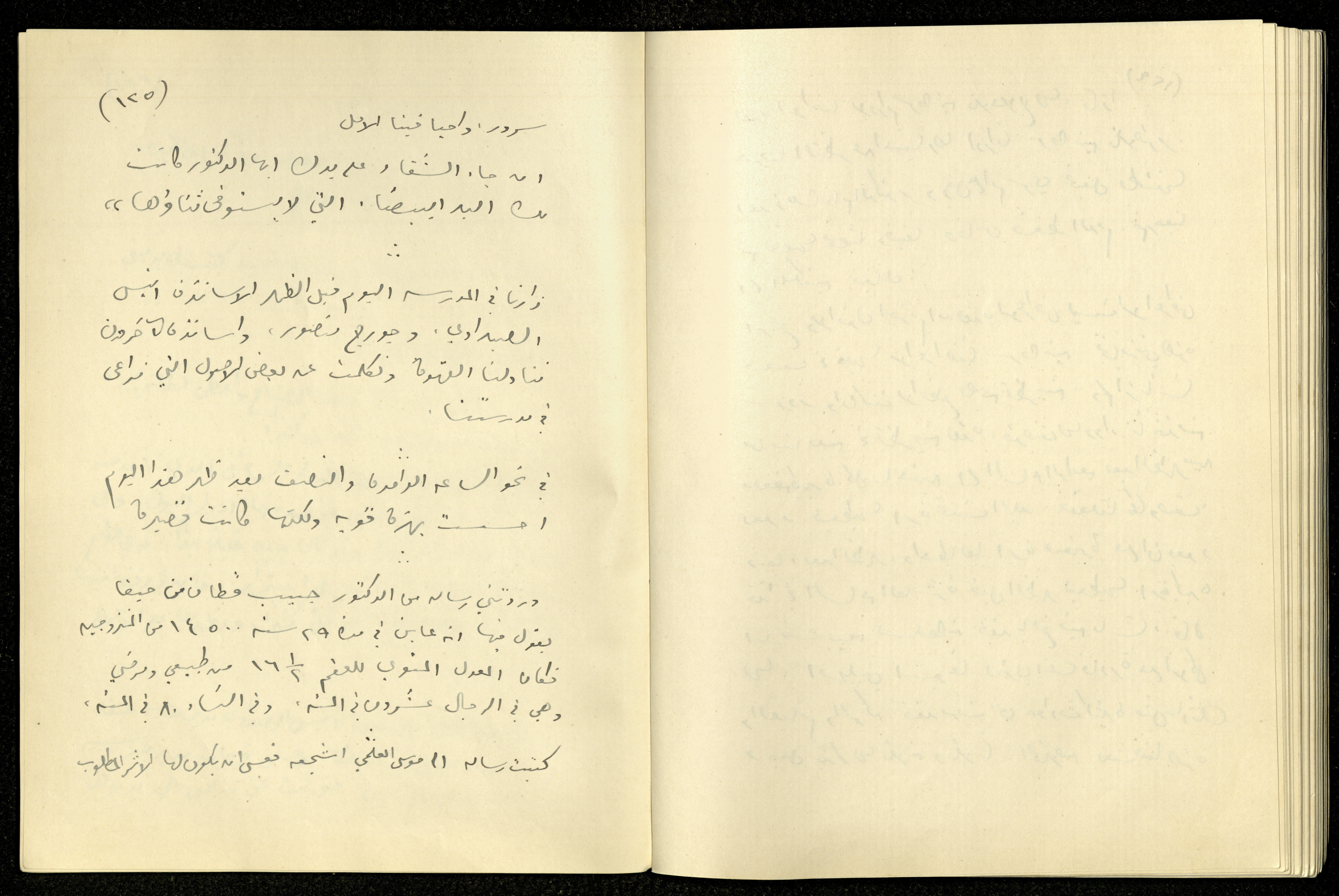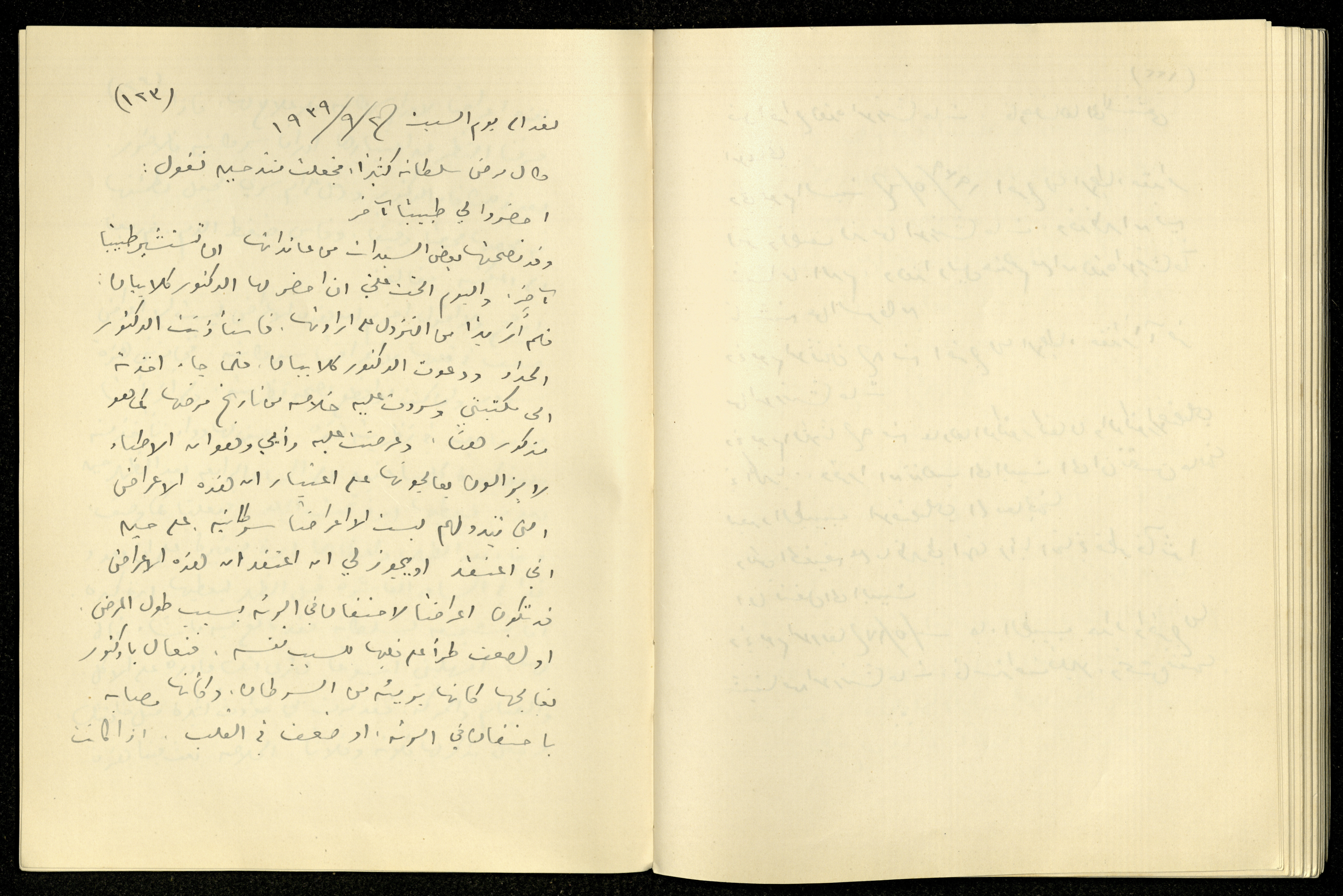 Handwritten, this archival item documents the diaries of Khalil Sakakini on Monday 2 September 1940, where he mentioned going with his sister Milia and daughters Dumia and Hala to the cemetery and spreading flowers, recalling his diary dated the same date in the previous year, briefing Sultana's medical history, Anis Saidawi and George Mansour visiting him at school, and receiving a letter from Habib Qattan from Haifa saying that has tested 14.500 cases of married people in 29 years, showing yearly infertility rate of 16.5 due to natural or medical reasons.