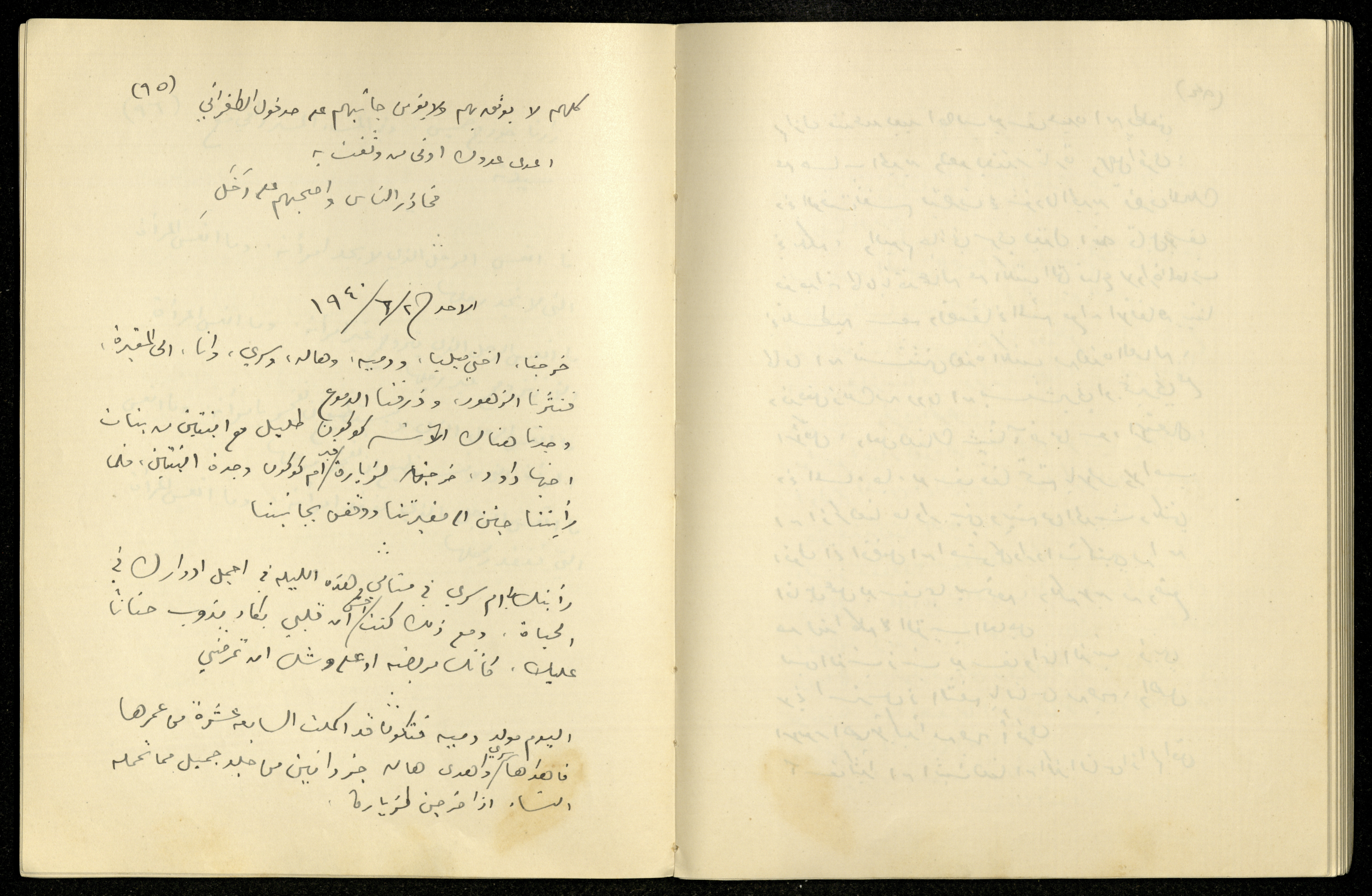 توثق هذه المادة الأرشيفية المكتوبة بخط يد خليل السكاكيني يوميته المؤرخة في يوم الأحد الموافق 2 حزيران 1940، افتتحها بذكر خروجه هو وأخته ميليا إلى المقبرة ونثرهم الزهور عليها، وذكر فيها رؤيته سلطانة في المنام، وأشار إلى أن اليوم هو يوم مولد دمية فقد بلغت السابعة عشرة من عمرها، وذكر بعد ذلك زيارة جورج خميس له، وفي المساء زاره دافي مع زوجته.