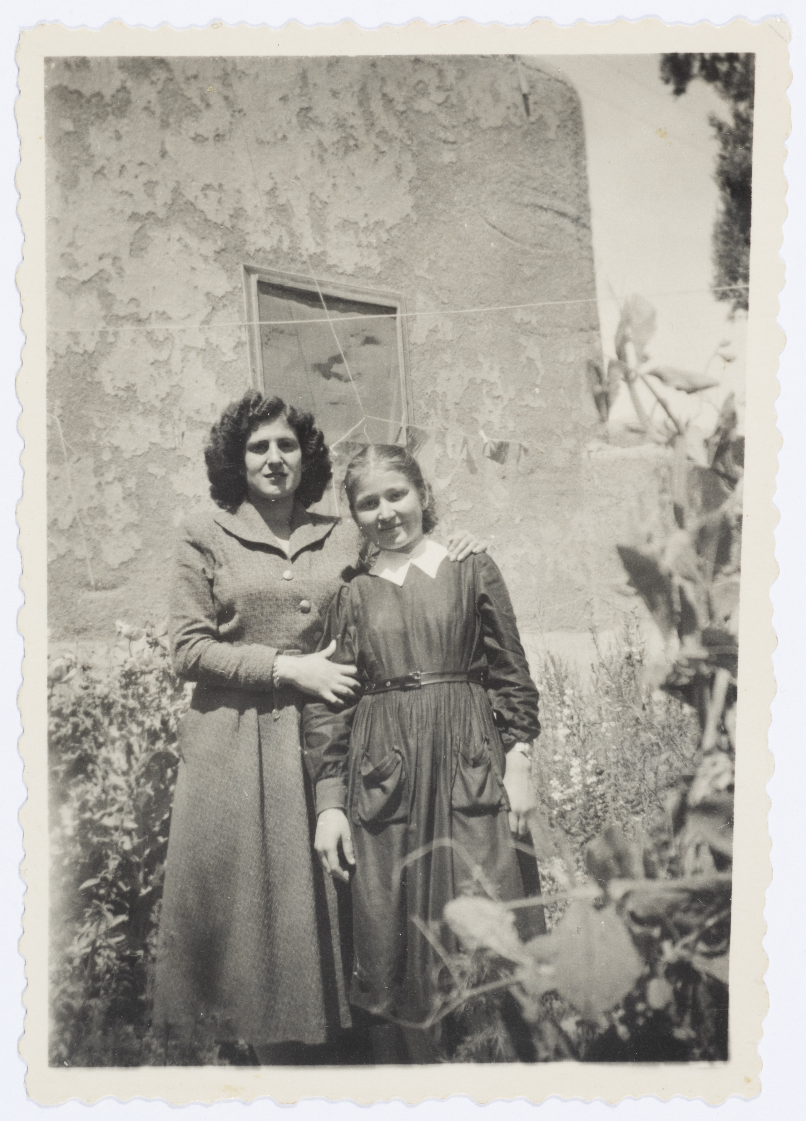 صورة التُقطت عام 1952 لميلادة حنا خميس برفقة طفلة.