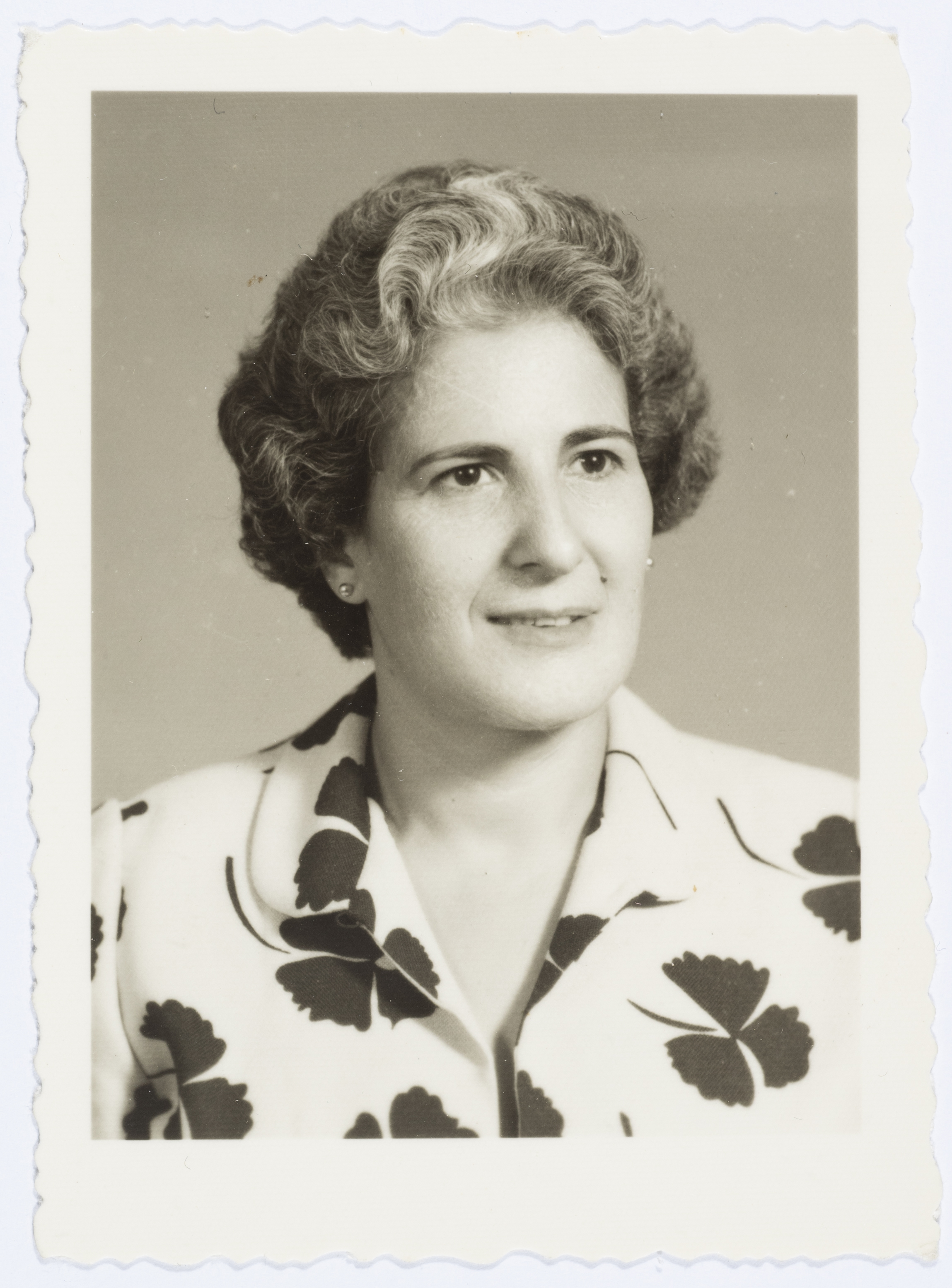 صورة شخصية لميلادة خميس ترتدي قميصًا موردًا، أيار 1964.