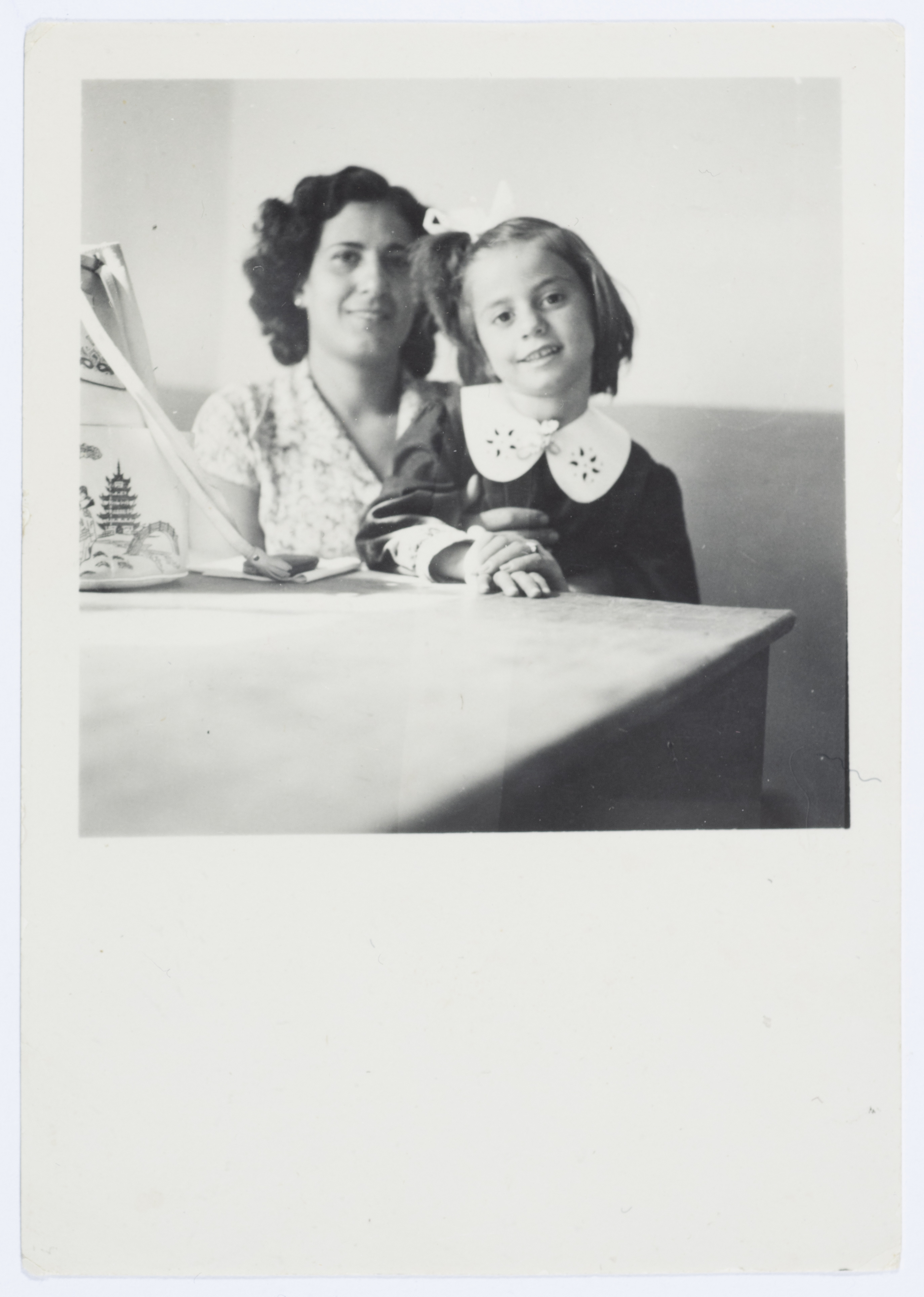 صورة لميلادة حنا خميس التقطت عام 1956 مع طالبة من طالباتها في مدرسة العيزرية حيث كانت مديرة المدرسة.