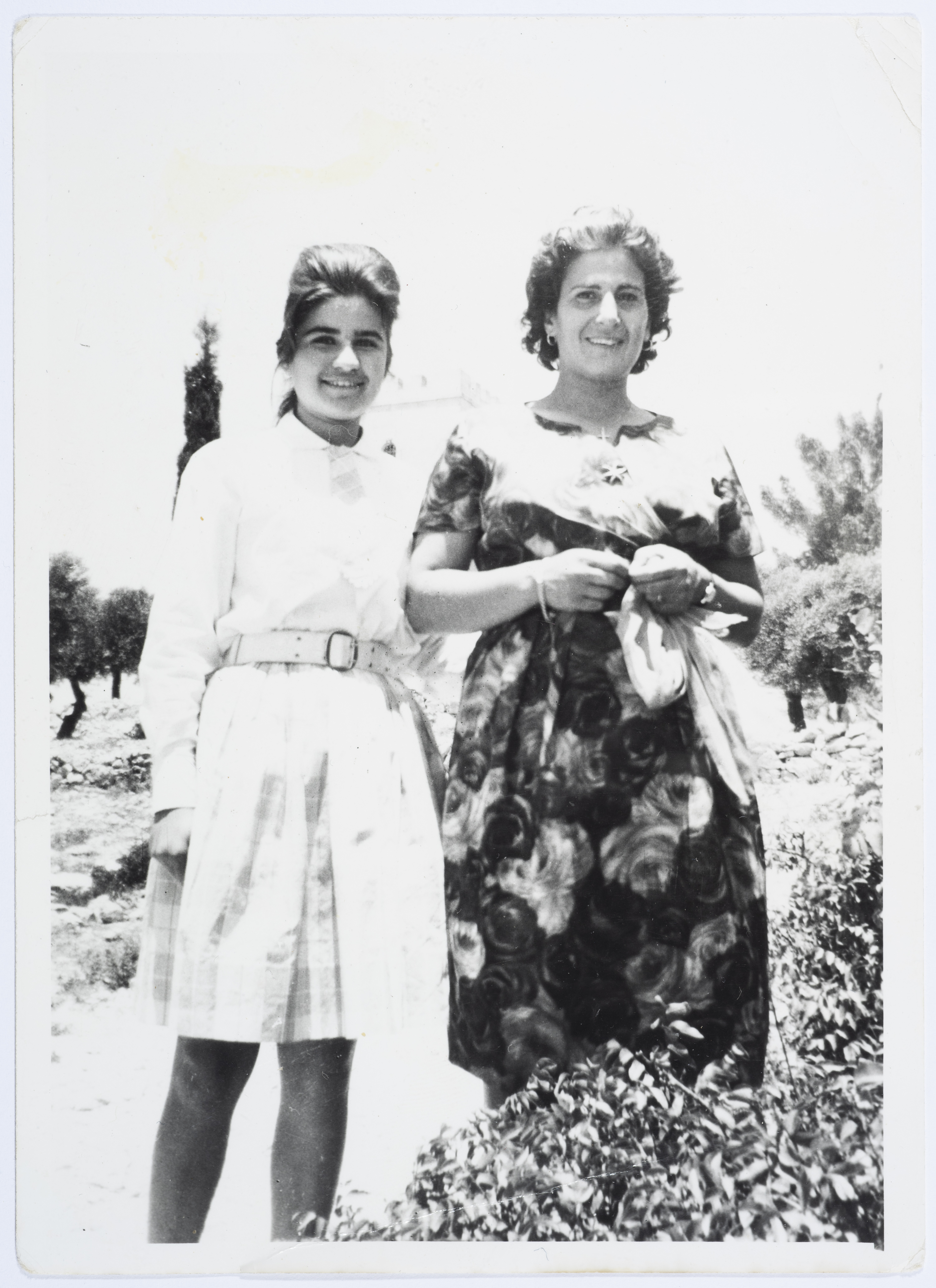صورة التقطت عام 1963 لميلادة حنا خميس مع طالبة من طالباتها.