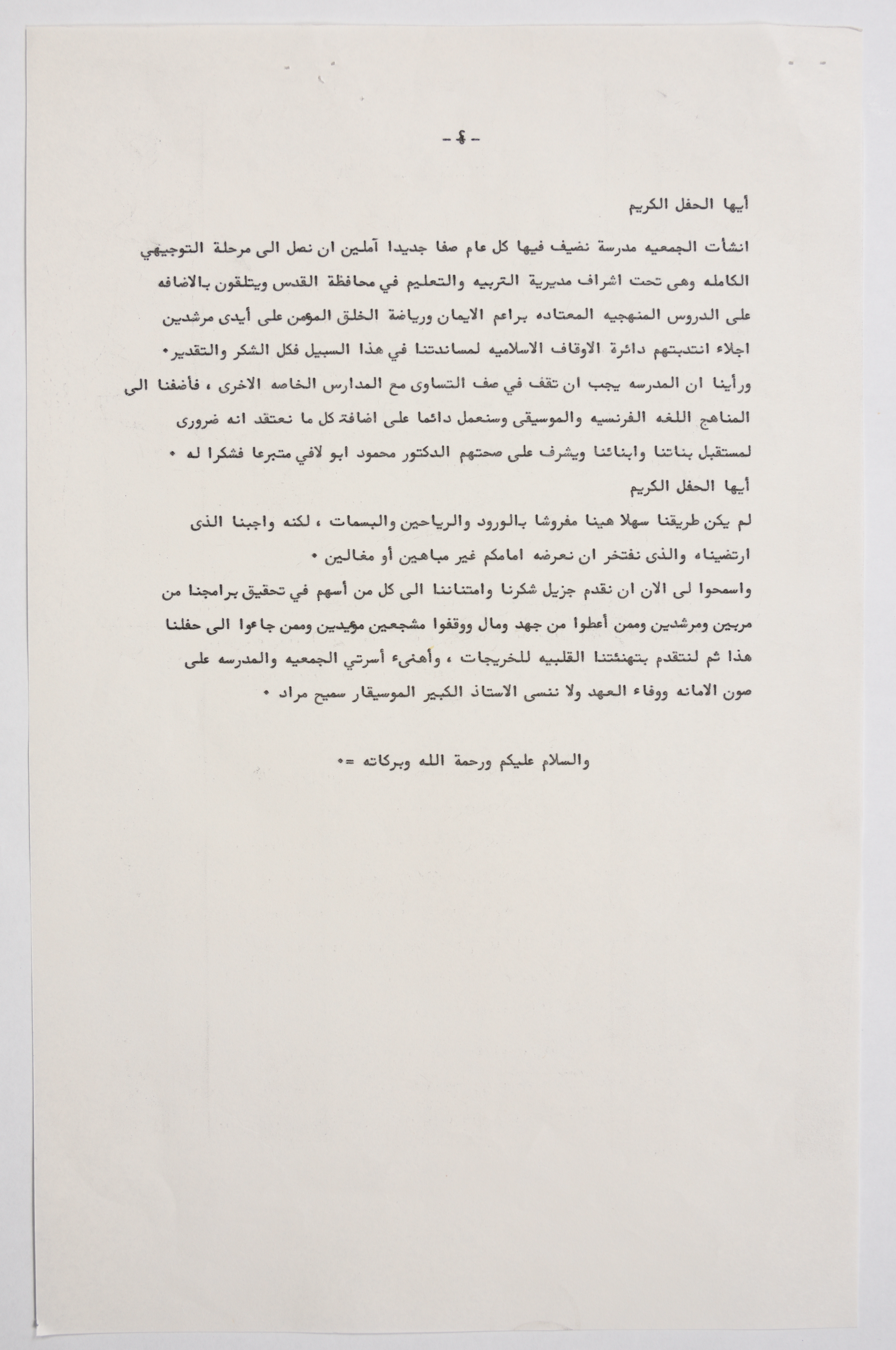 كلمة ألقيت في حفل تخريج طالبات دورات جمعية الشابات المسلمات في القدس تشمل دورات الطباعة والخياطة وللمرة الألوى دورة في محو الأمية.