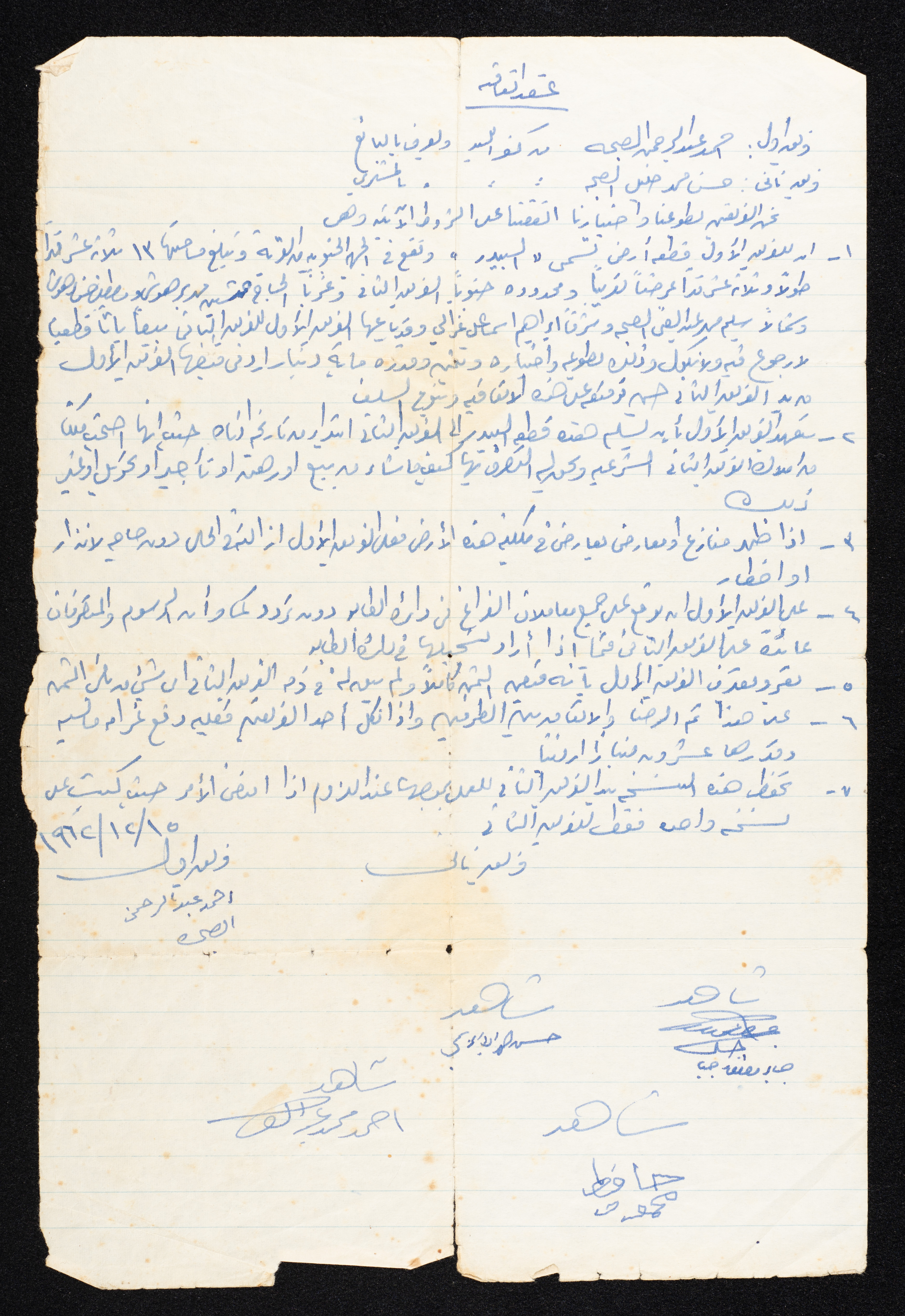 "عقد اتفاقية" بين أحمد عبد الرحمن وحسن خليل، 15 كانون الأول 1962
