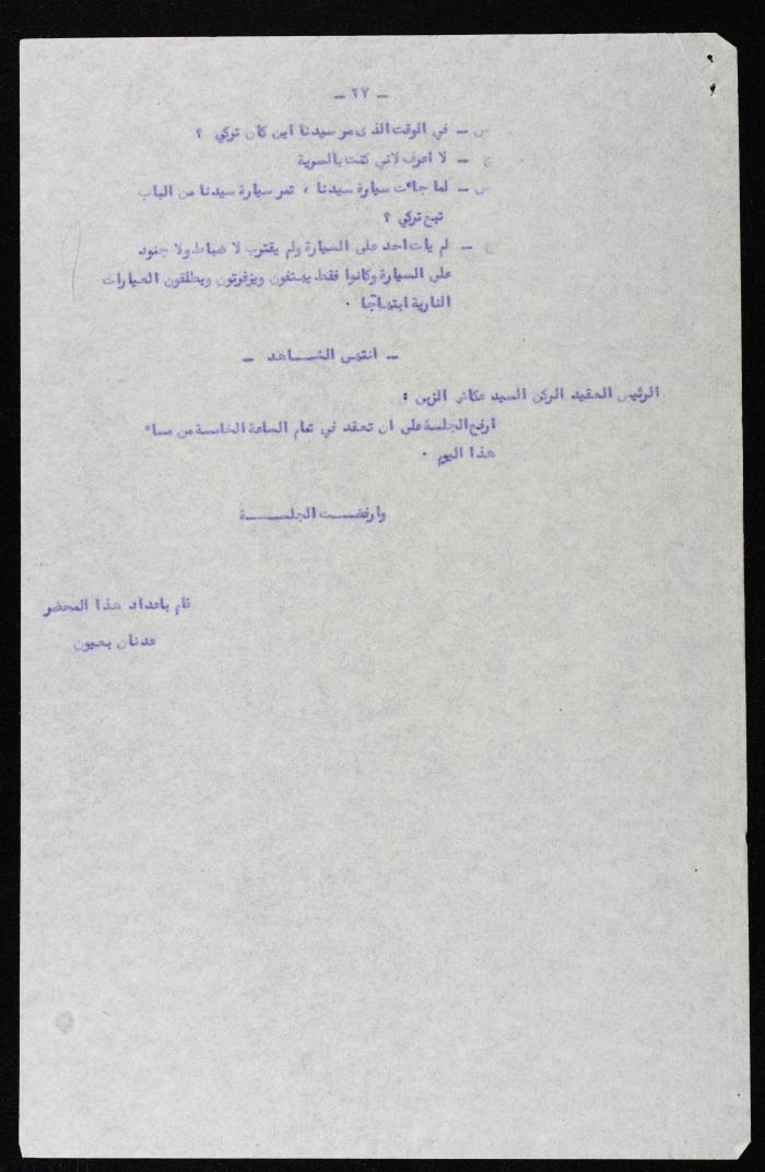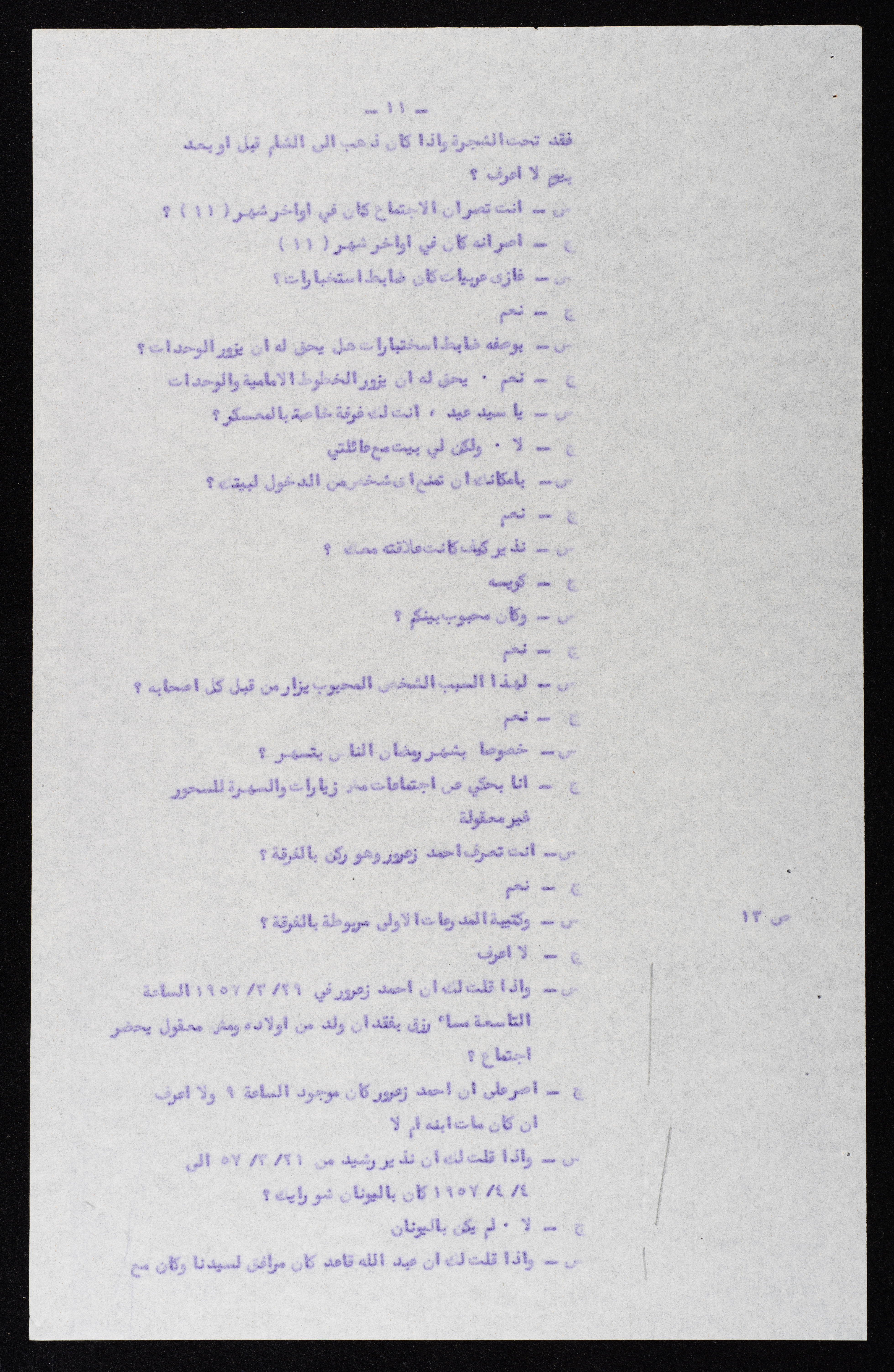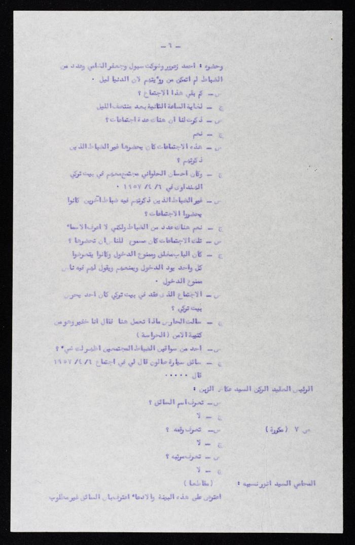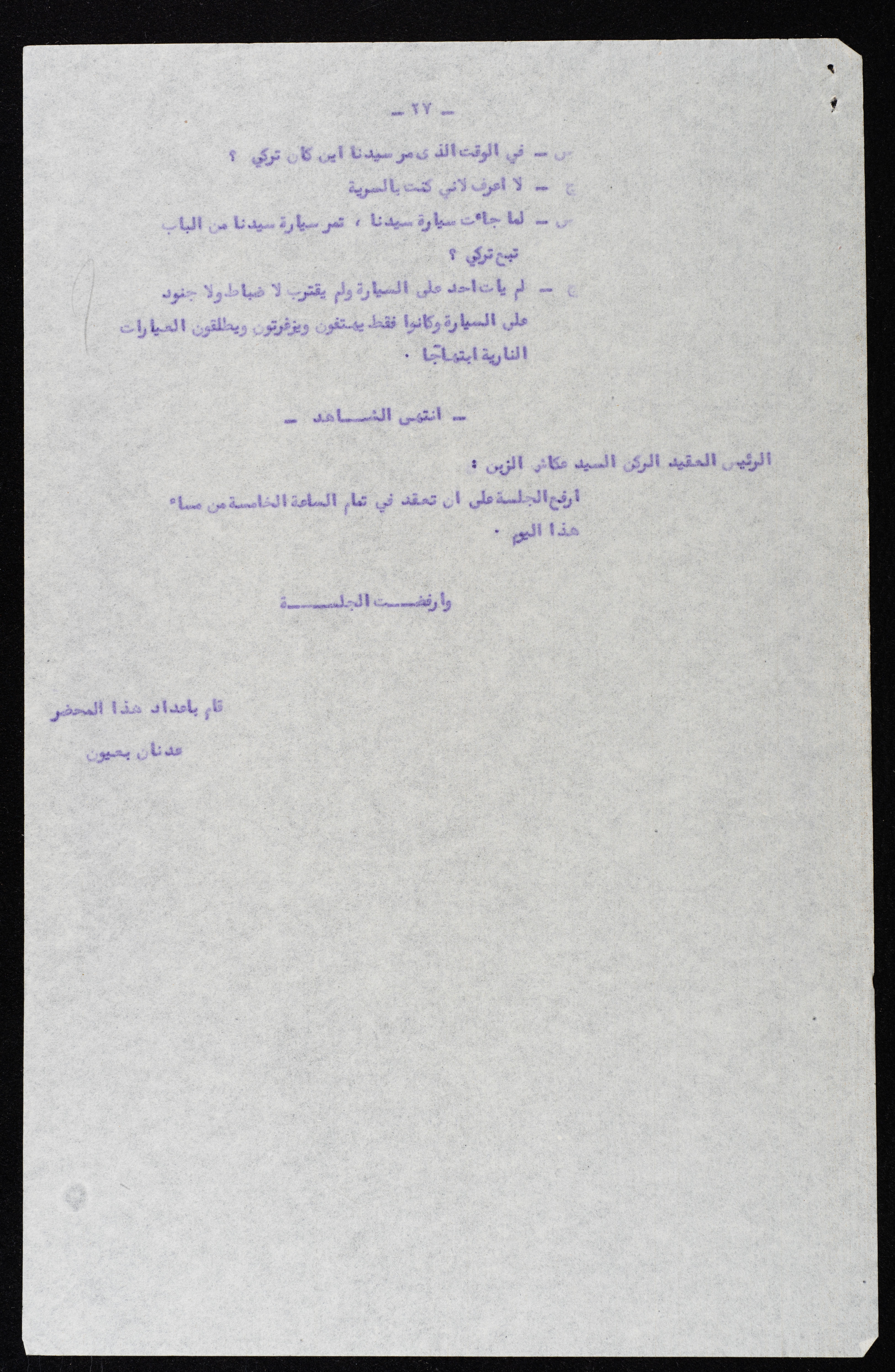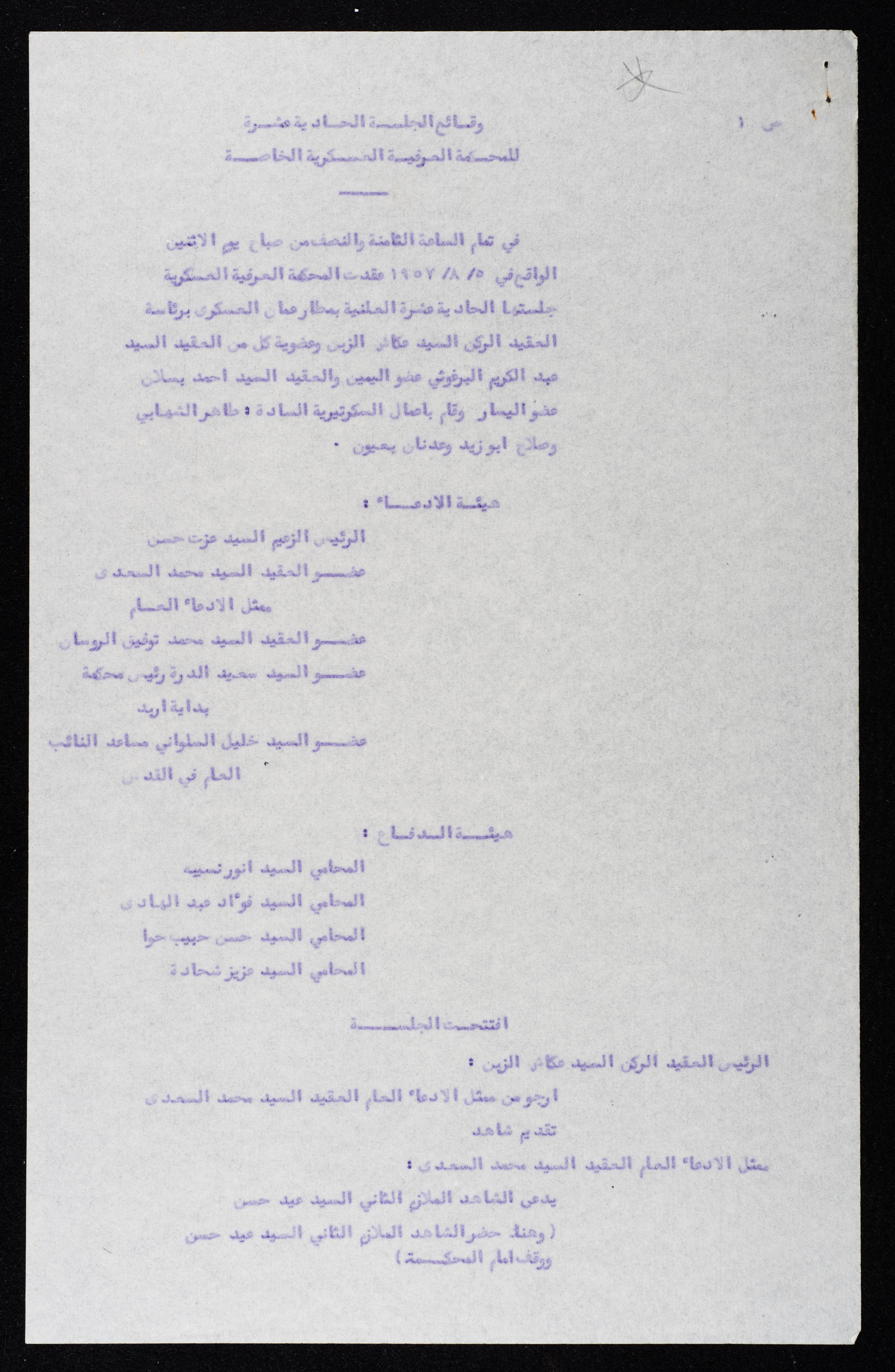 وقائع الجلسة الحادية عشرة للمحكمة العسكرية في قضية محاولة الانقلاب على ملك الأردن، 5 آب 1957