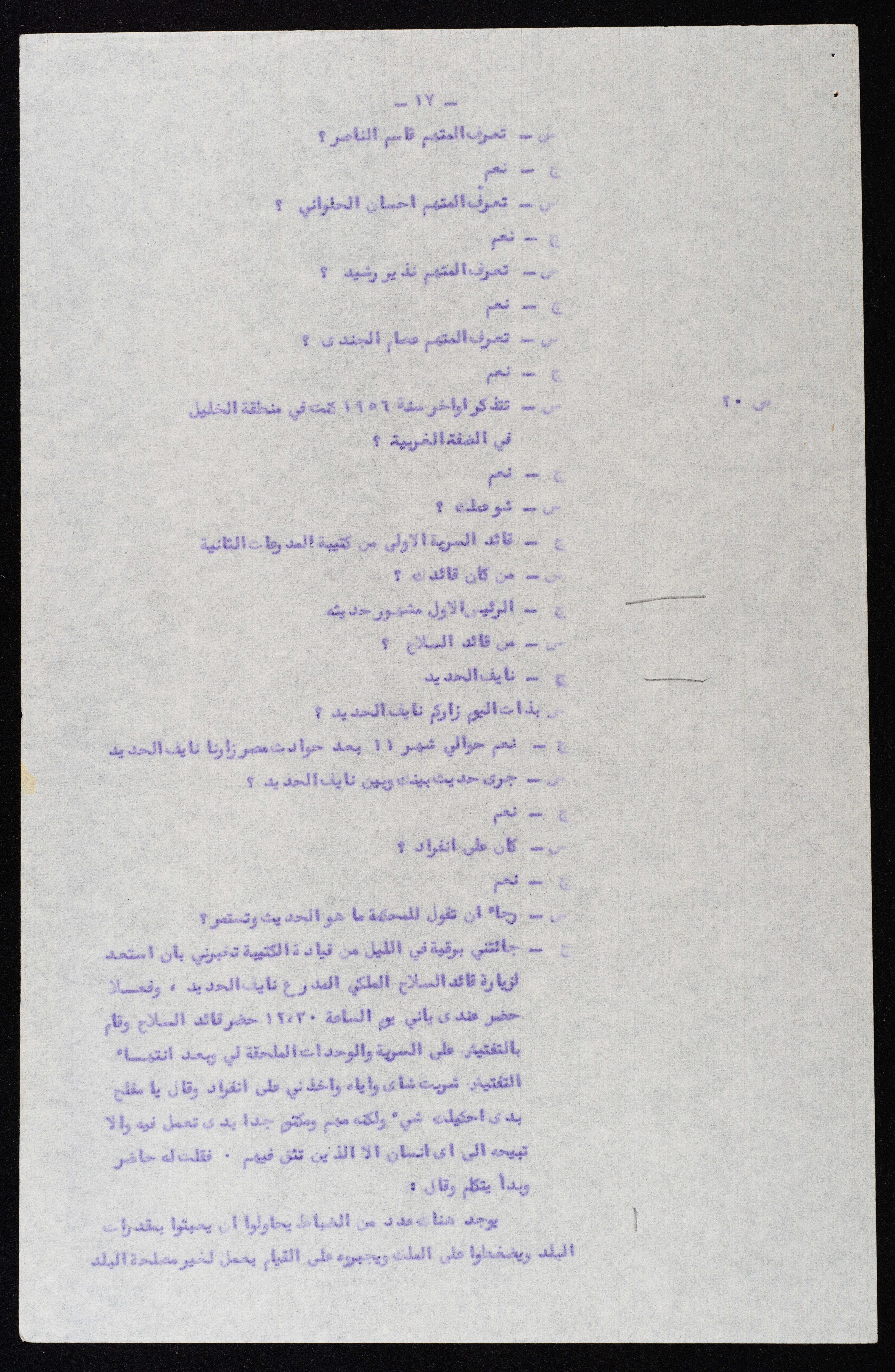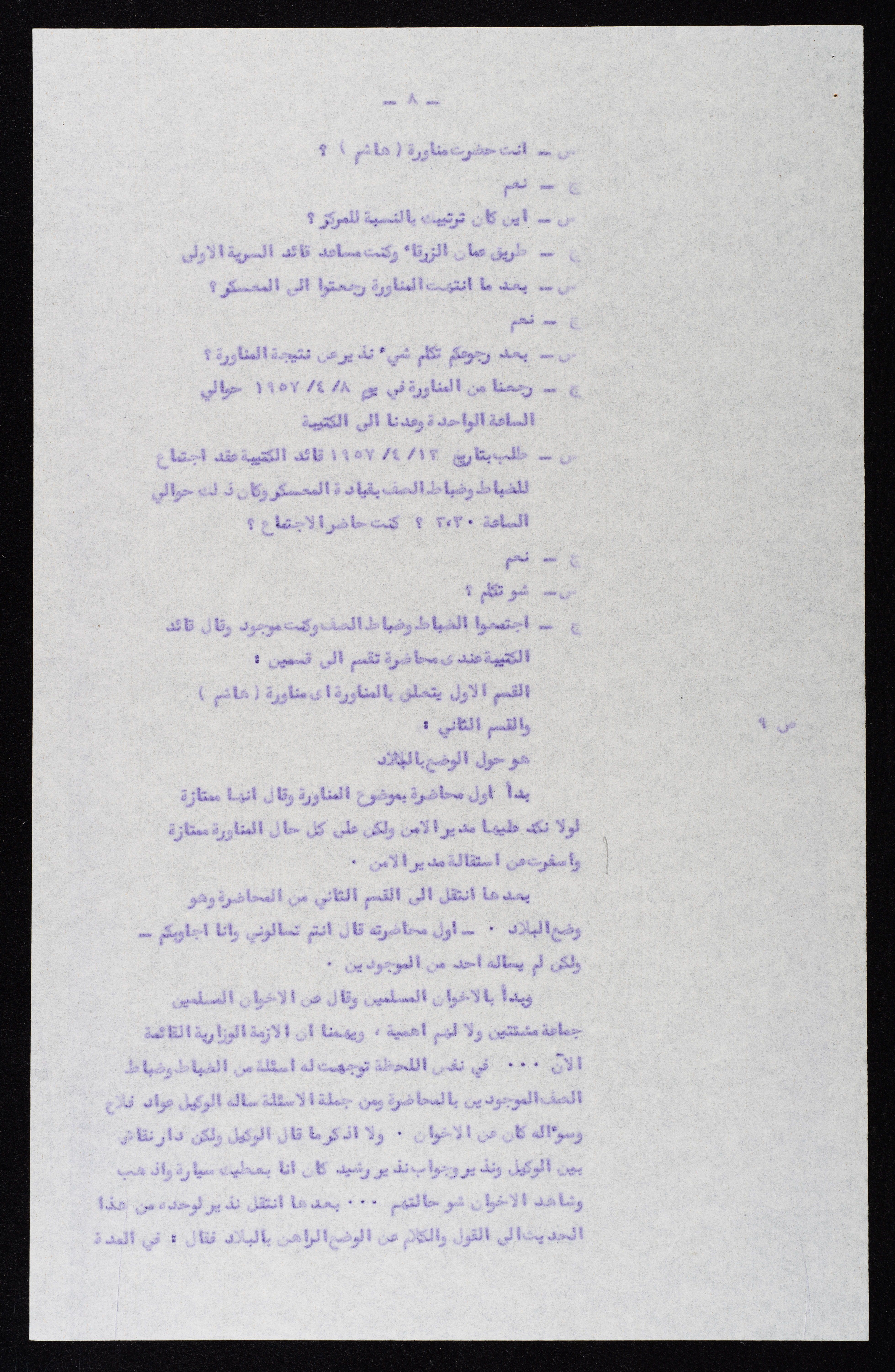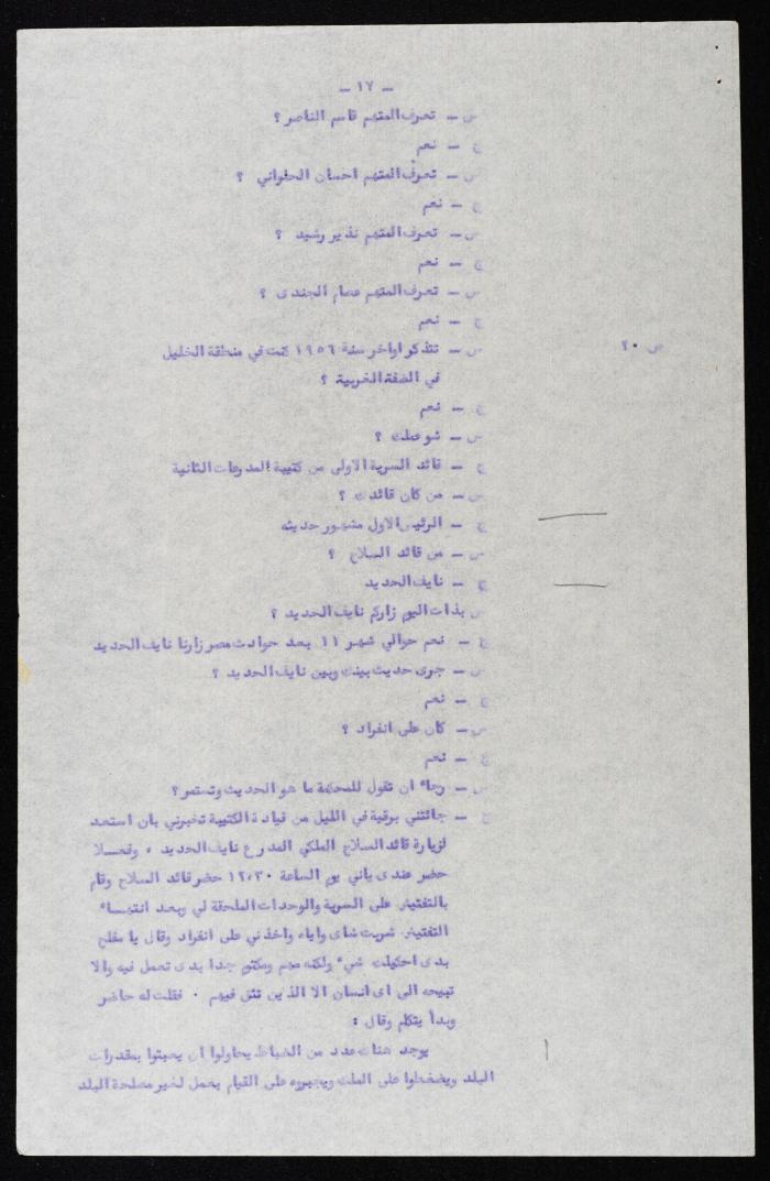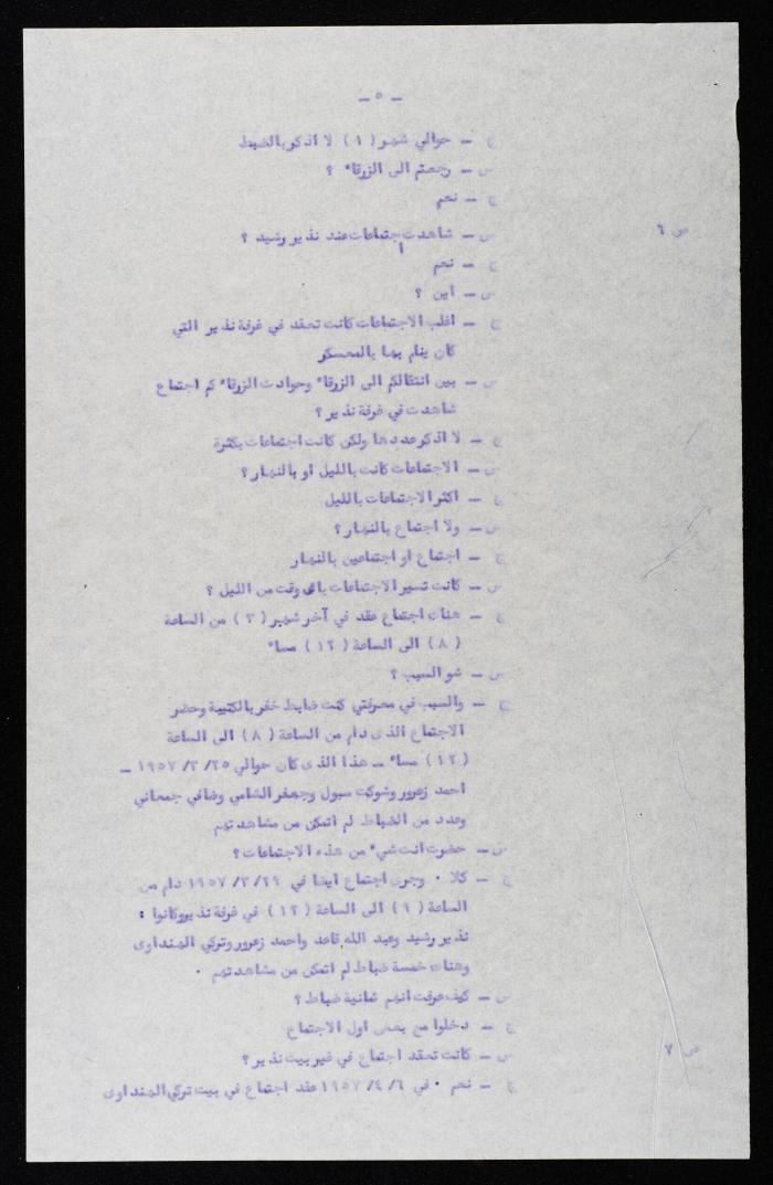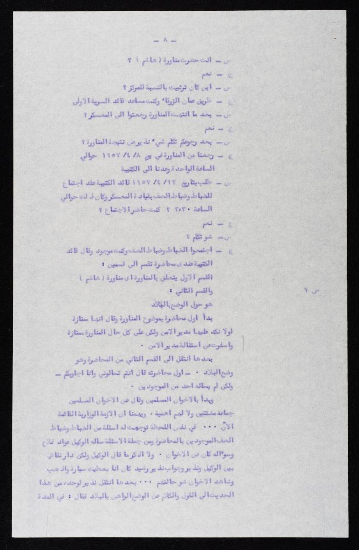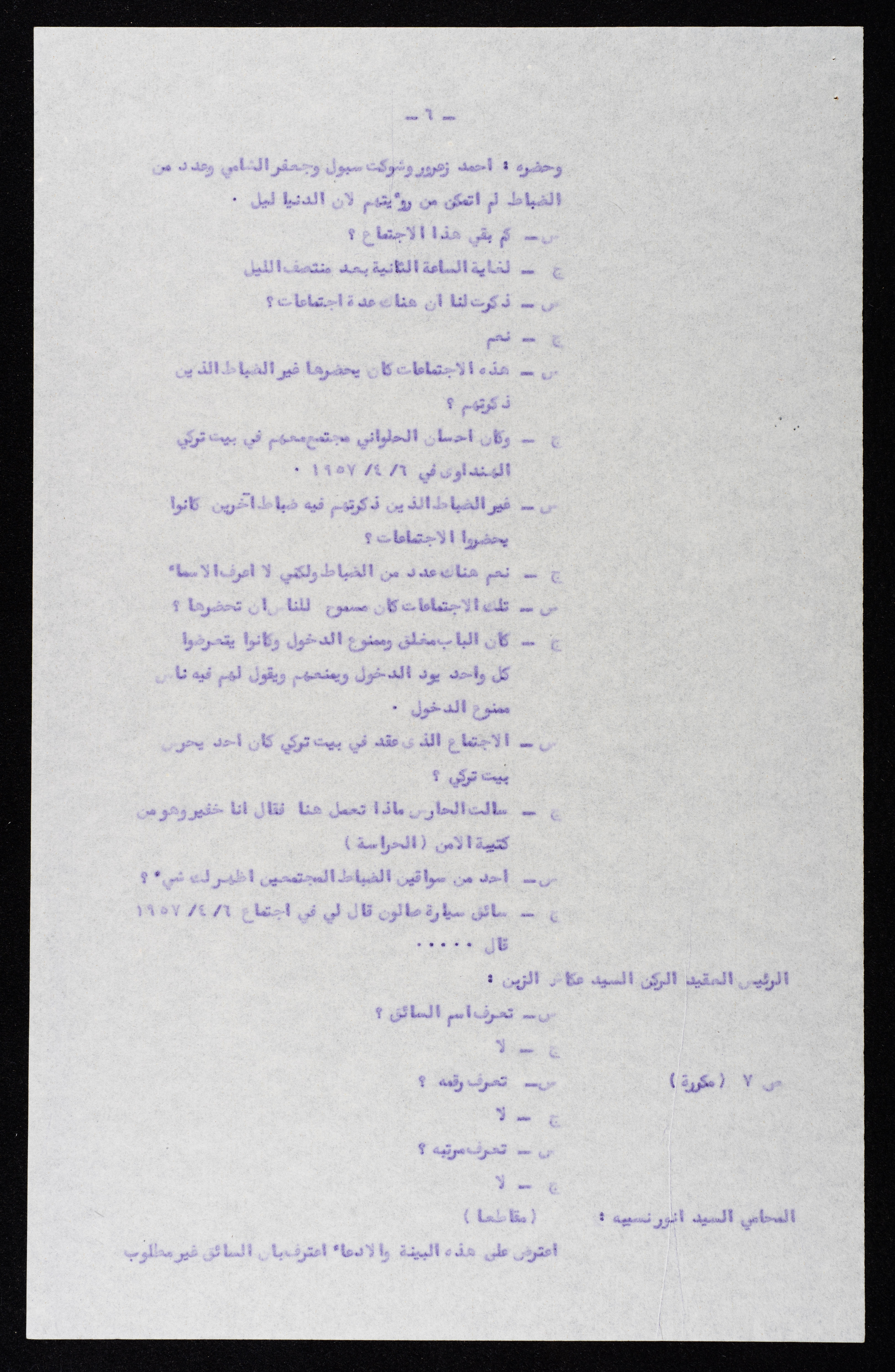 وقائع الجلسة الحادية عشرة للمحكمة العسكرية في قضية محاولة الانقلاب على ملك الأردن، 5 آب 1957