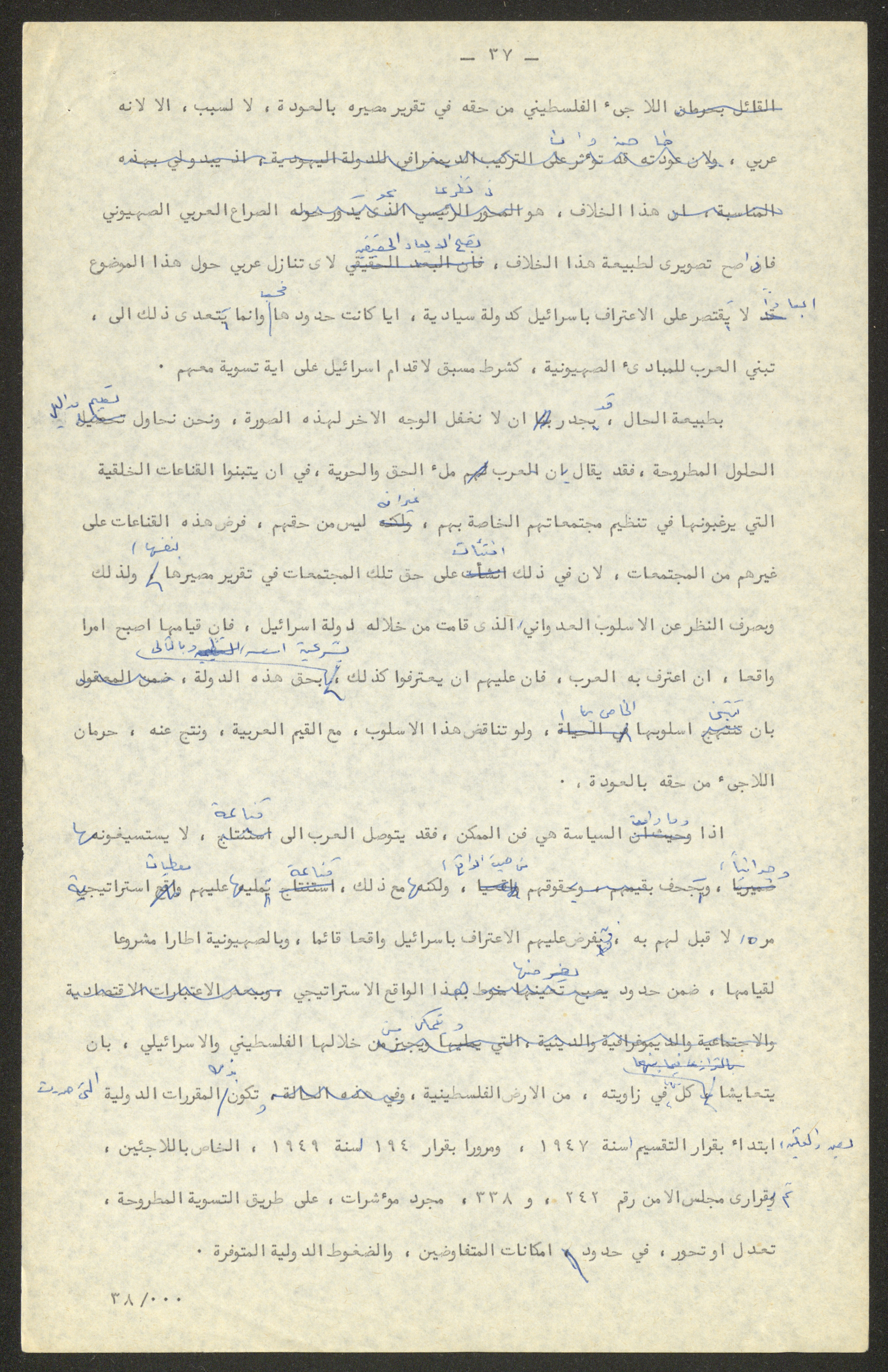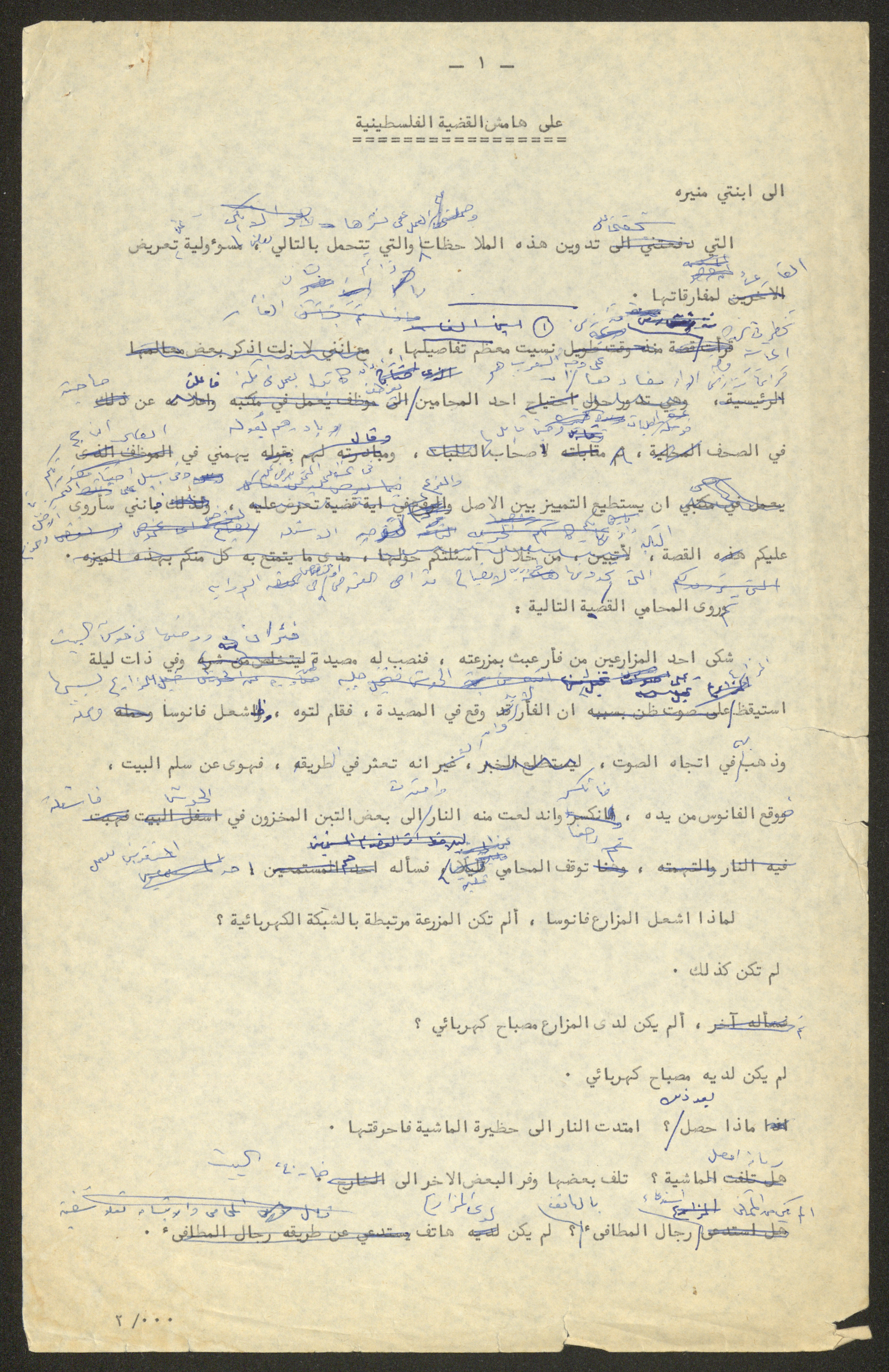"على هامش القضية"، مسودة بحث لأنور نسيبة