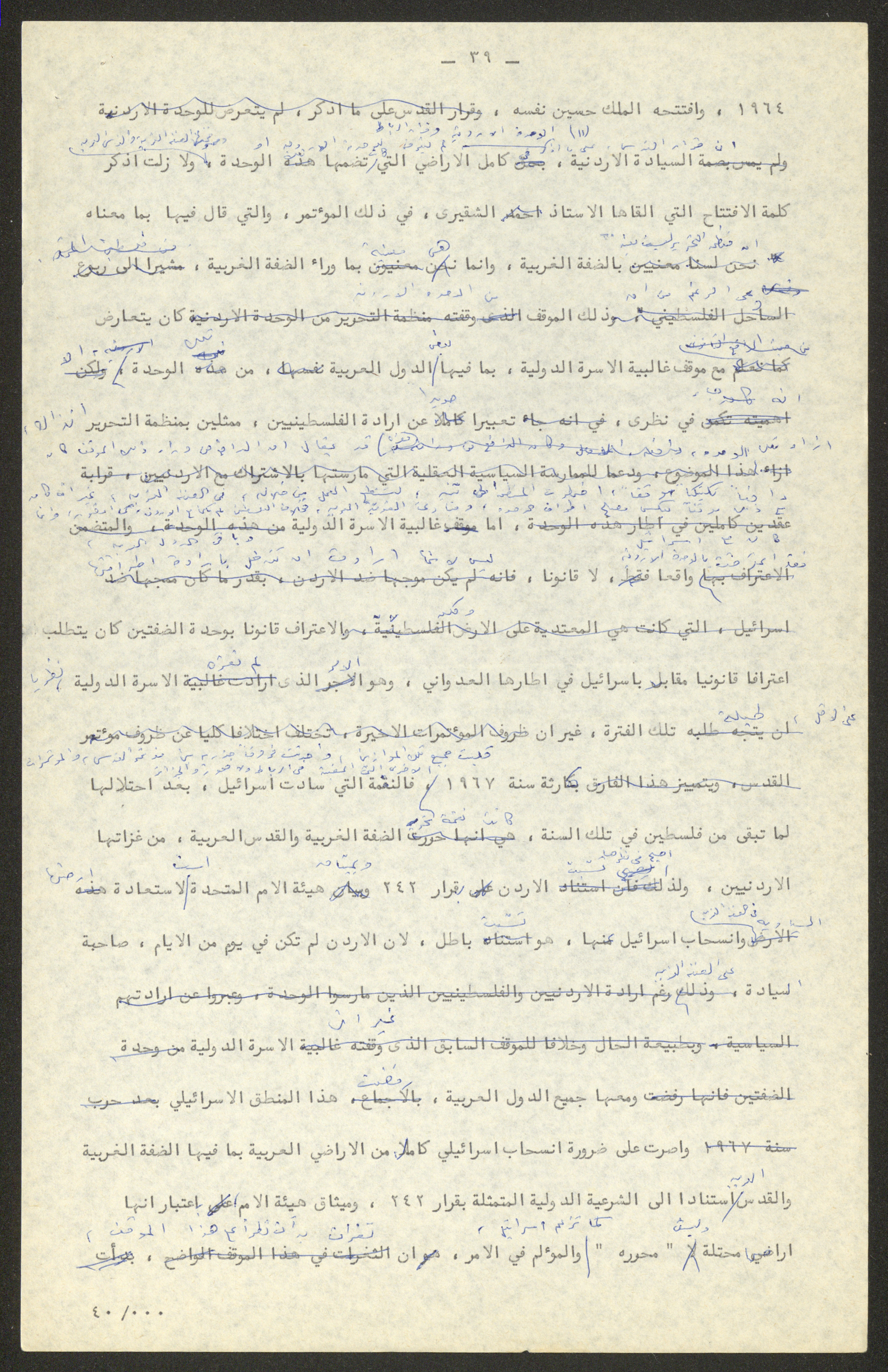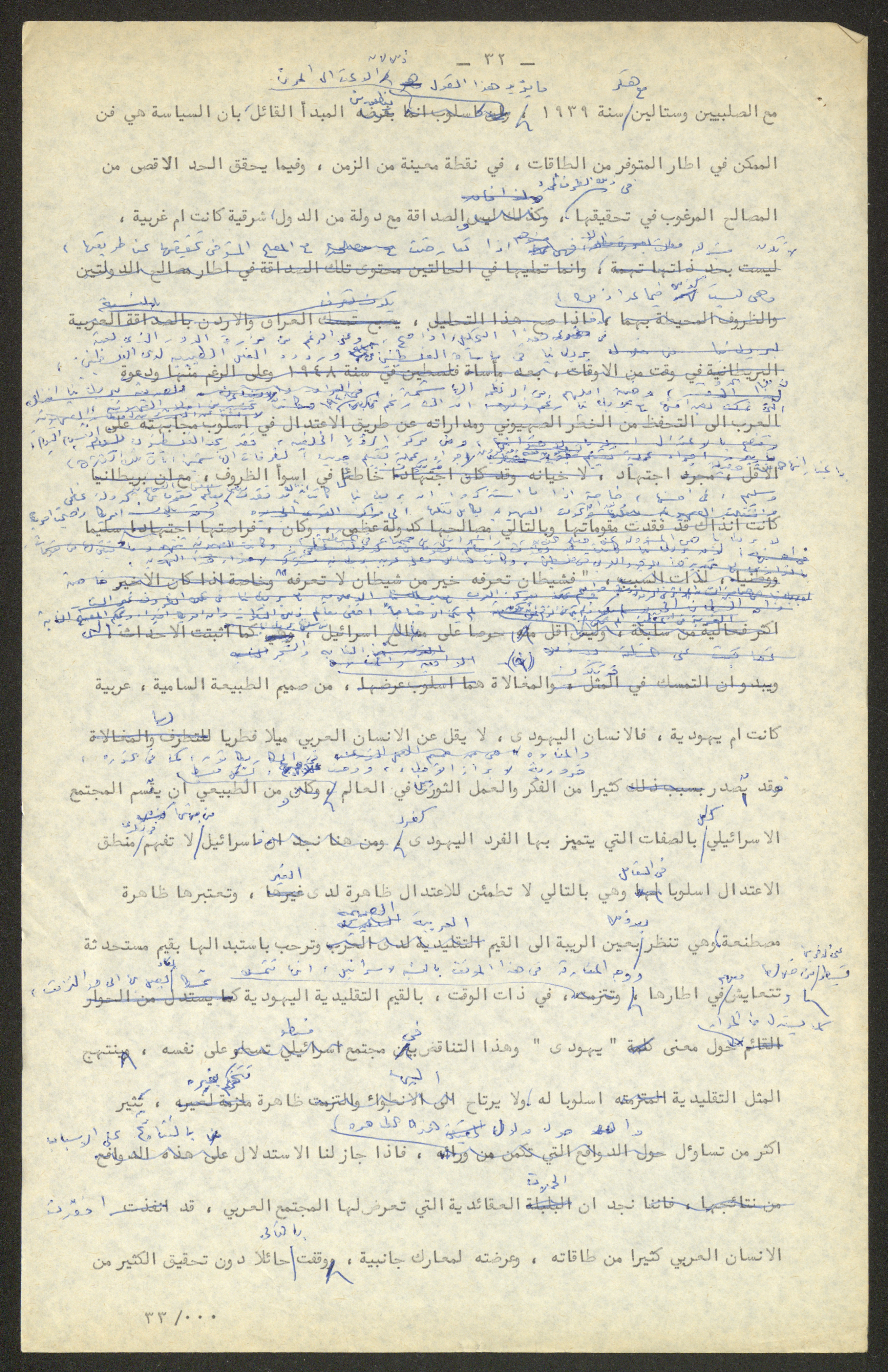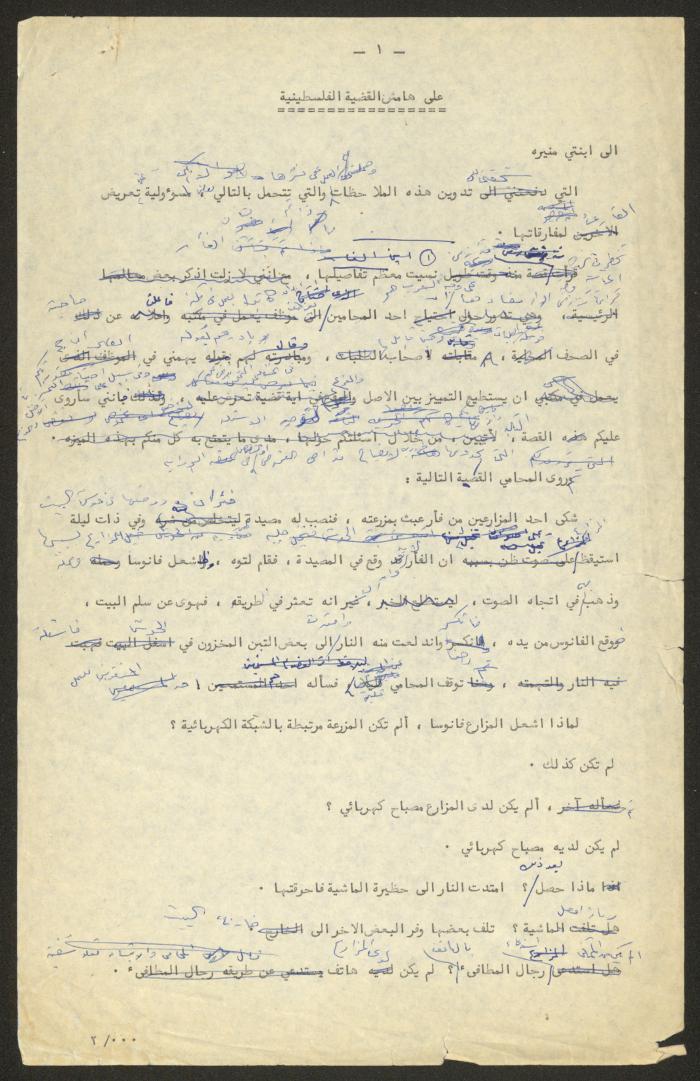 مسودة بحث لأنور نسيبة بعنوان "على هامش القضية" كان قد أهداه لابنته منيرة لتشجيعها له تدوين ملاحظاته حول القضية الفلسطينية.