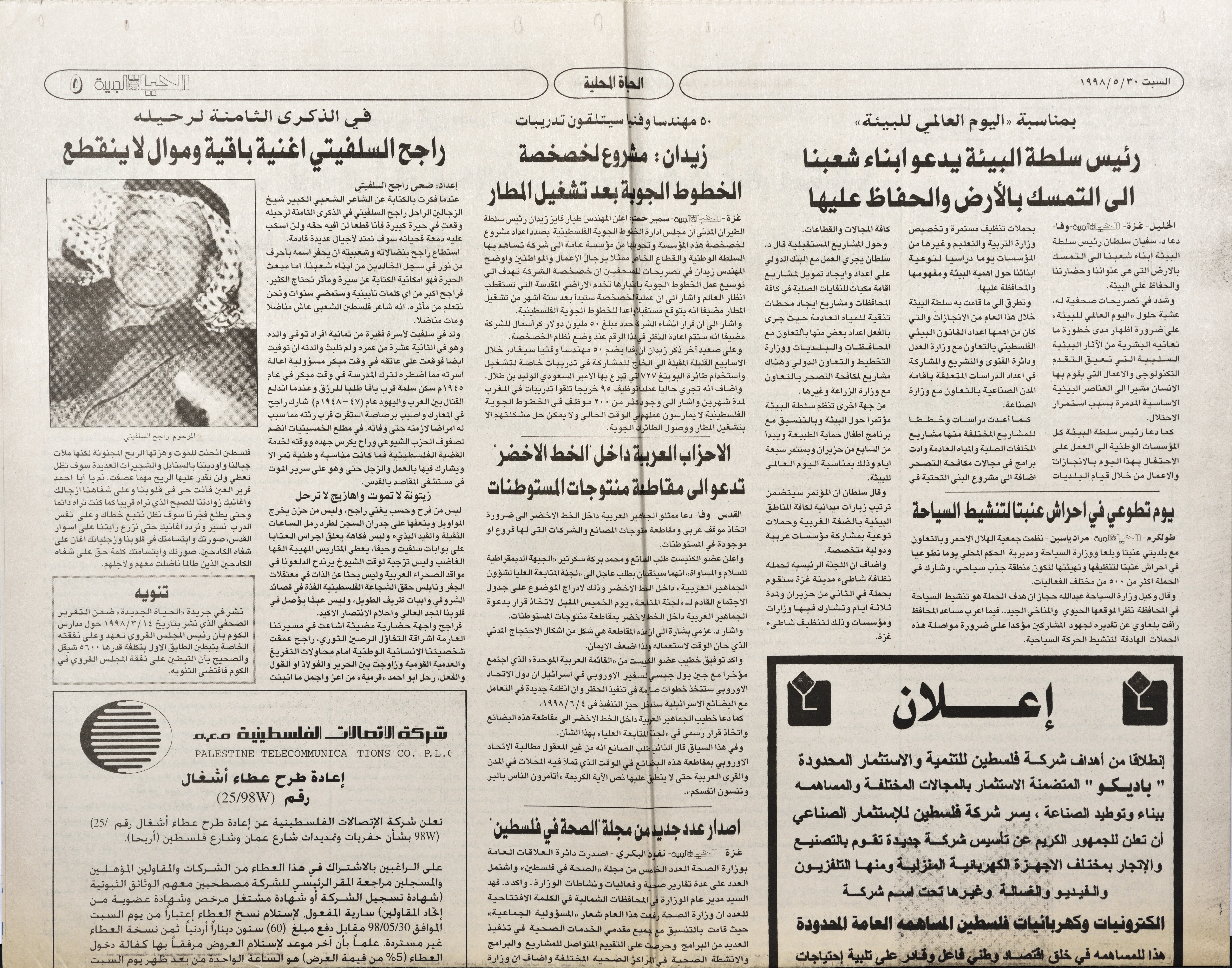 وثيقة مكونة من صفحات من جريدة الحياة الجديدة، نشرت فيها ابنة راجح السلفتي ضحى، مقال في الذكرى الثامنة لرحيله وتضمنت رثاء لوالدها وذكرياتها هي وأخوتها مع راجح السلفيتي ومحطات من حياته