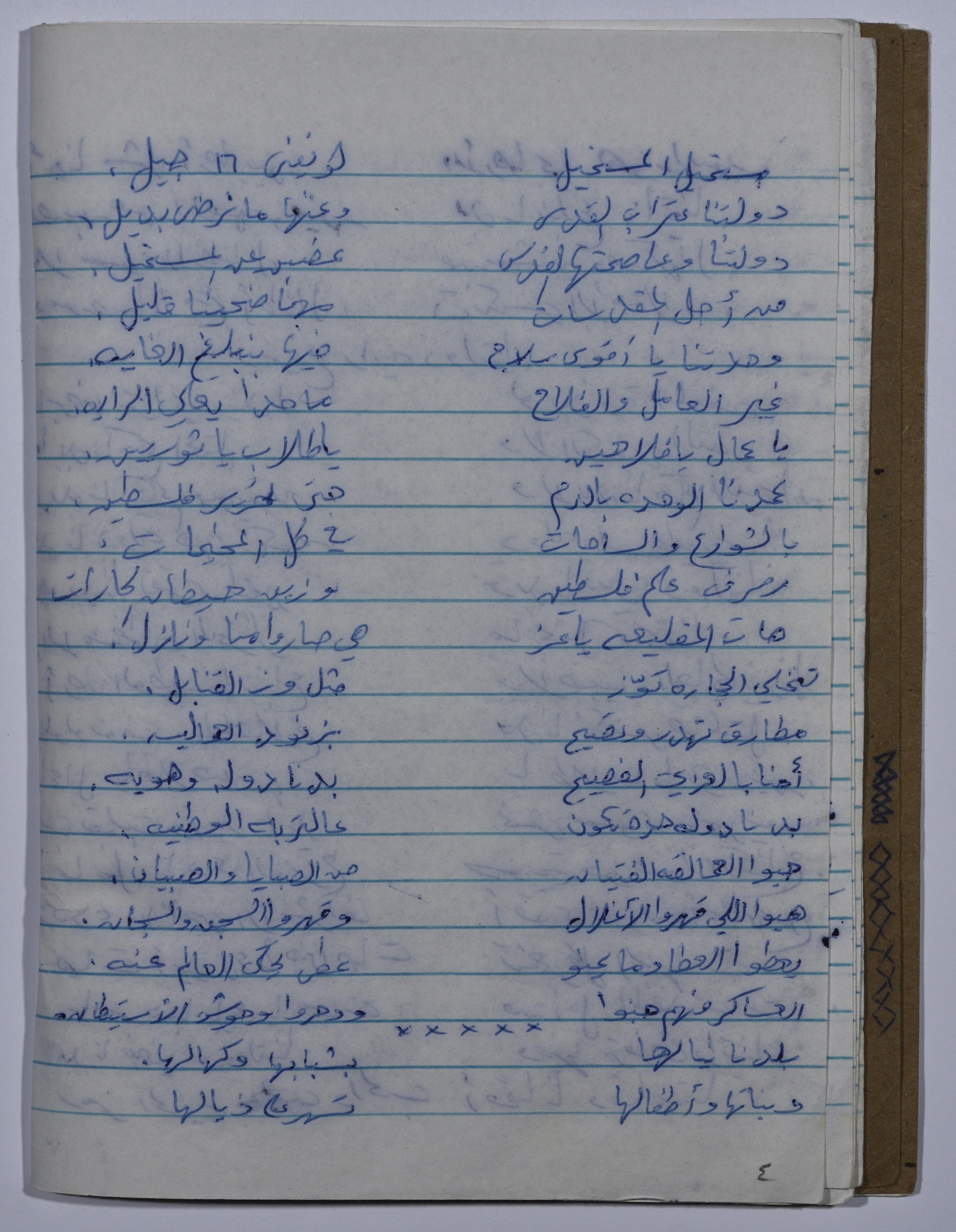 وثيقة مكونة من صفحة واحدة، تتضمن قصيد ألفها راجح السلفيتي ومكتوبة بخط يد ابنته ضحى، القصيدة تؤكد على حق الفلسطينيين باقمة دولتهم الفسلطينية وأن تكون عاصمتها القدس، كما تشدد على ضرورة الوحدة الفلسطينية وضرورة ازالة الاحتلال الصيوني والاستيطان
