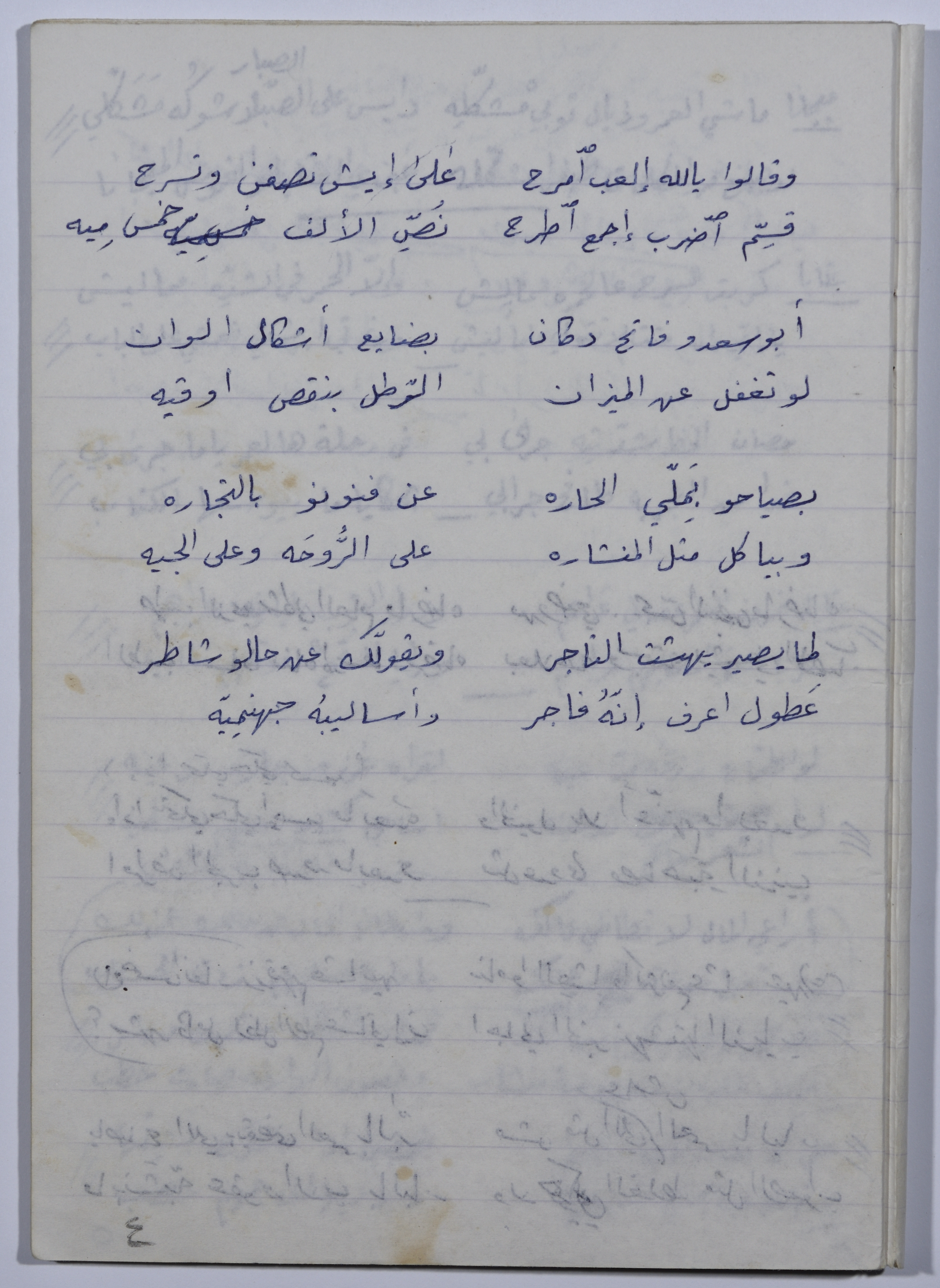 وثيقة مكونة من صفحة واحدة، تتضمن قصيدة فكاهية كتبها راجح السلفيتي عن البائعين المتجولين والبيع والشراء