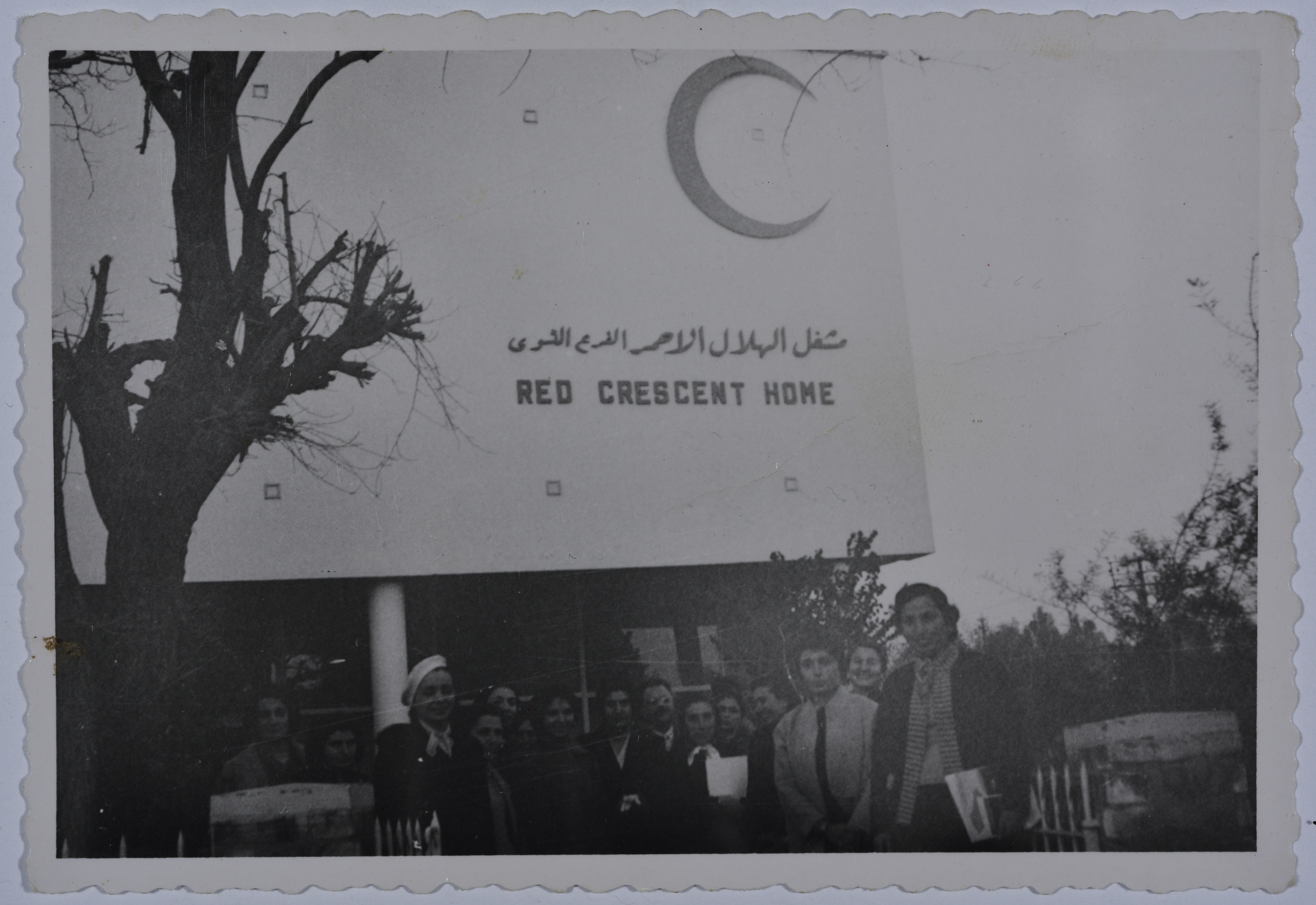 Found in the Mahira Dajani Collection, this photograph shows girls and men.
