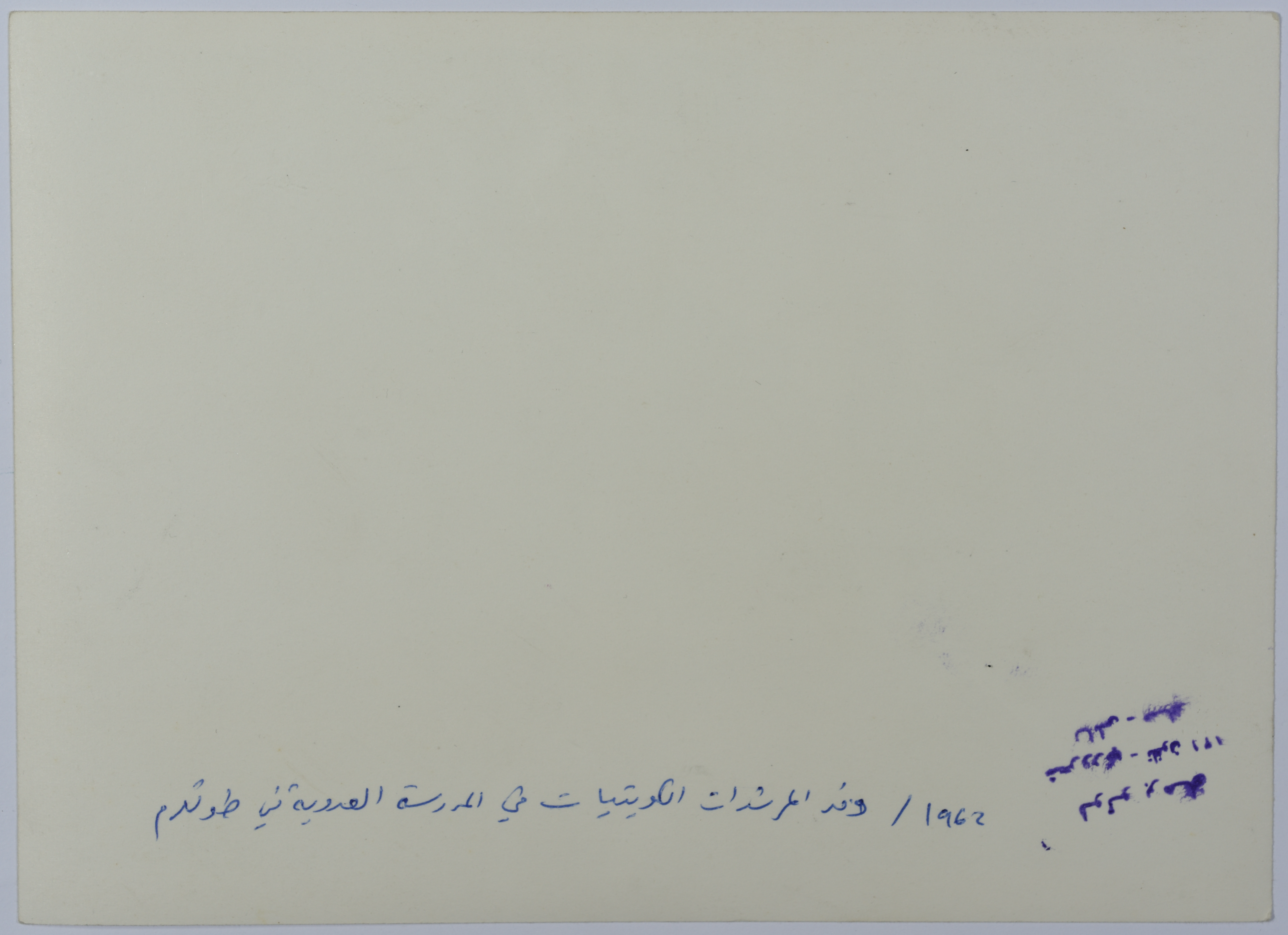 Found in the Mahira Dajani Collection, this photograph shows part of the visit of a delegation of Kuwaiti scout guides to al-Adawiya School in Tulkarem in 1962.