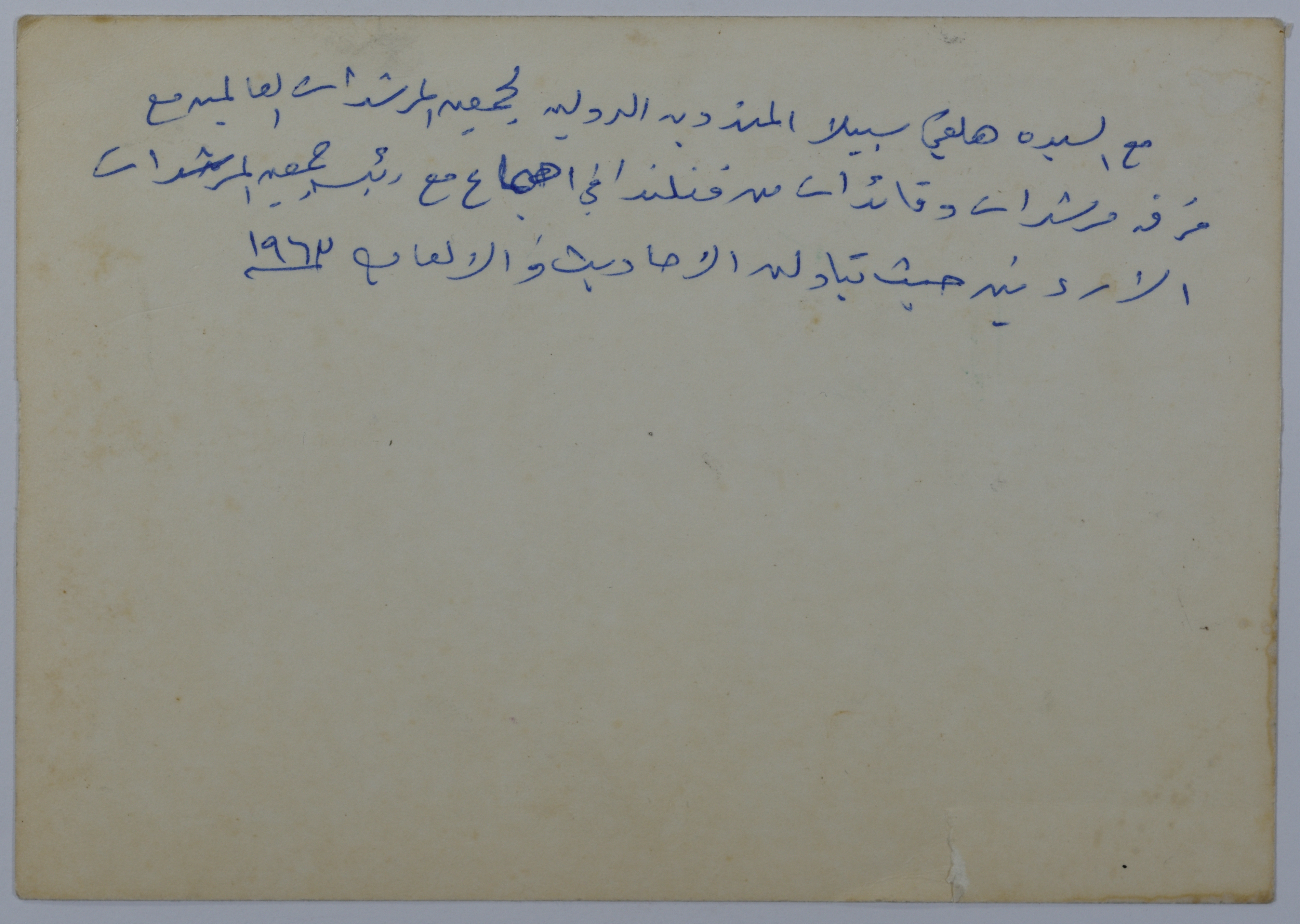 Found in the Mahira Dajani Collection, this photograph shows part of the meeting of Helga Sabilla, the international delegate of the World Scout Guides Association, in 1963, with the President of the Jordanian Scout Guides Association, in the presence of a group of Finnish scout leaders and guides.