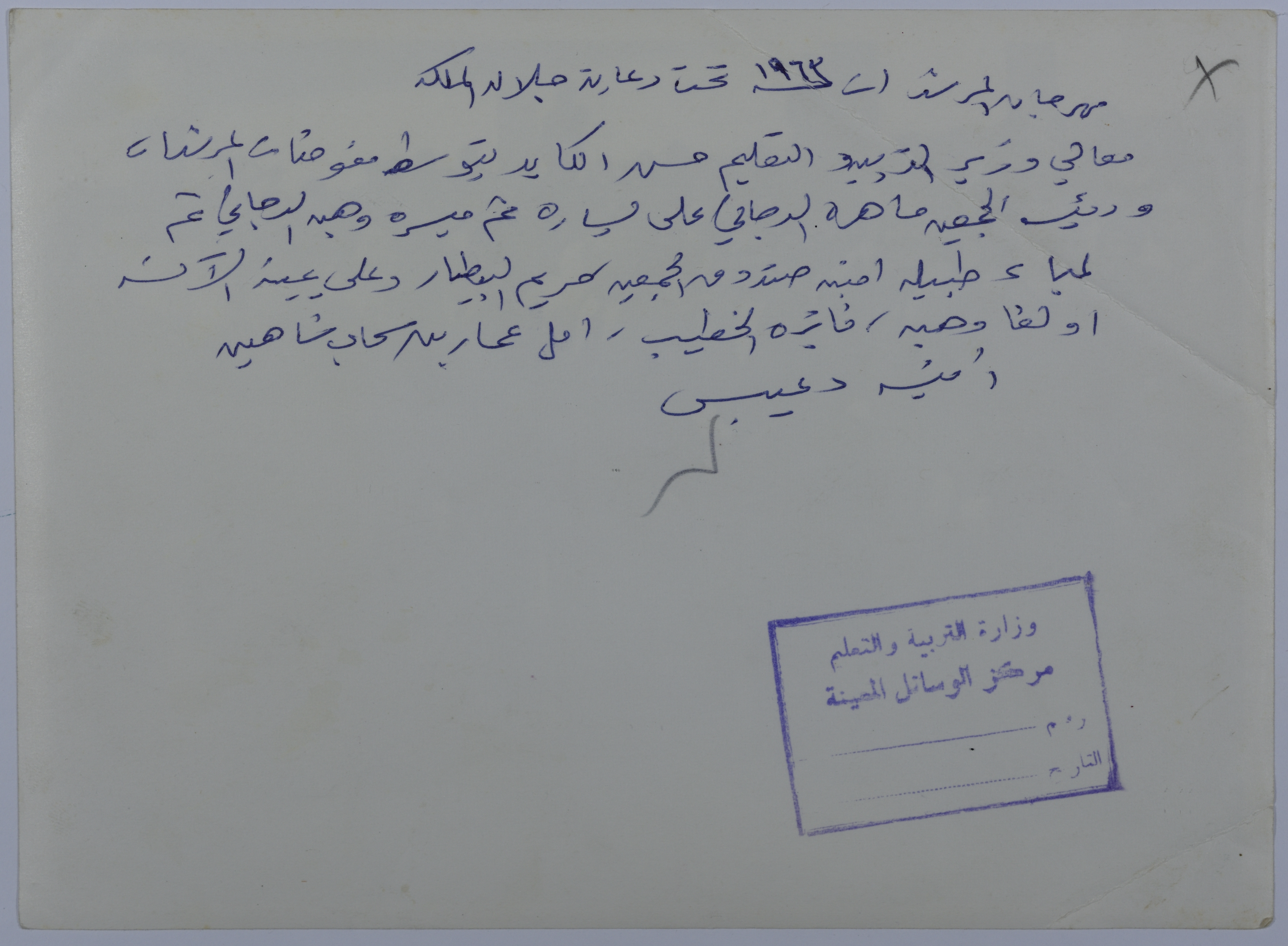 Dajani, Mahira. "The Mahira Dajani Collection". Interview with PMDA Researcher Lama Ghosheh. July 2018. The Palestinian Museum Digital Archive.