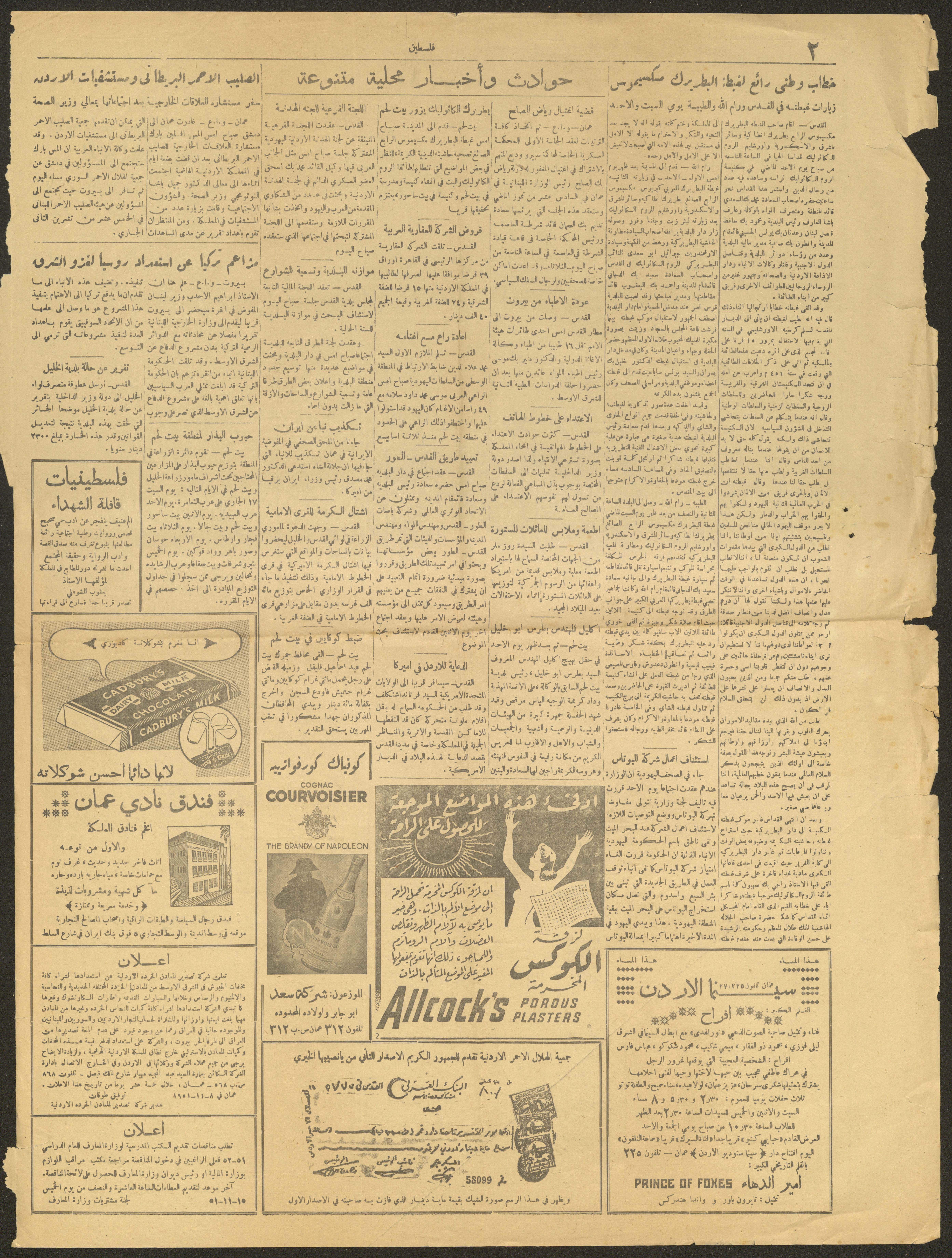 عدد من جريدة فلسطين، 13 تشرين الثاني 1951