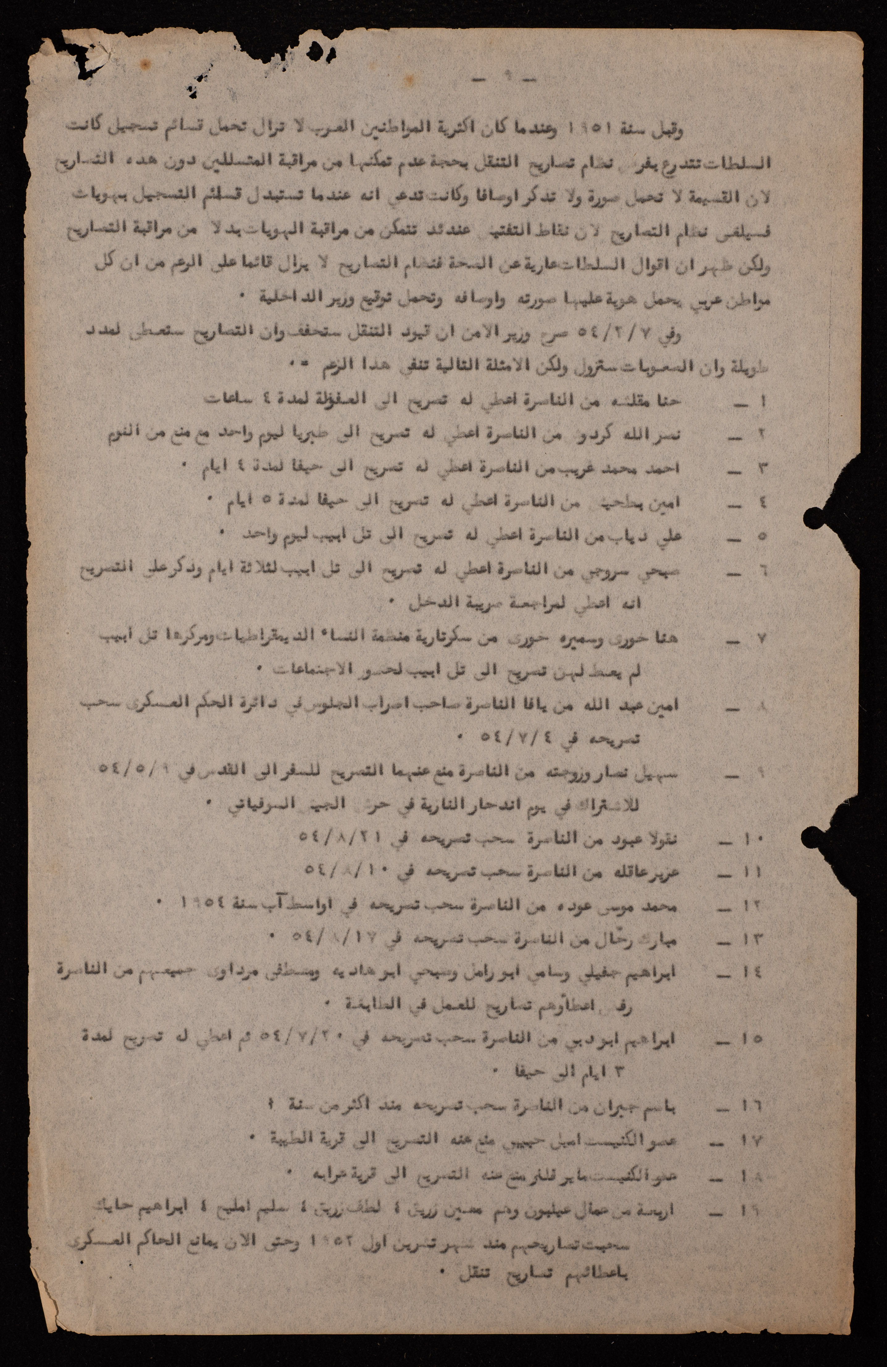A Letter from the Defense of Liberties Association in "Israel", 1954