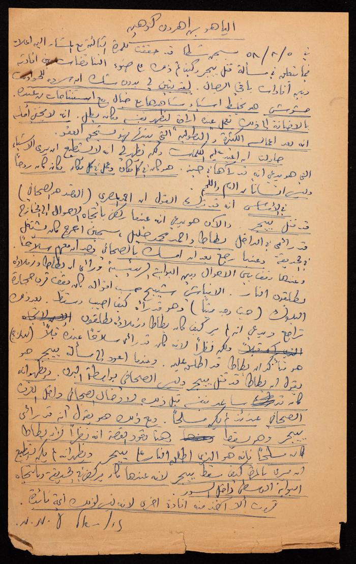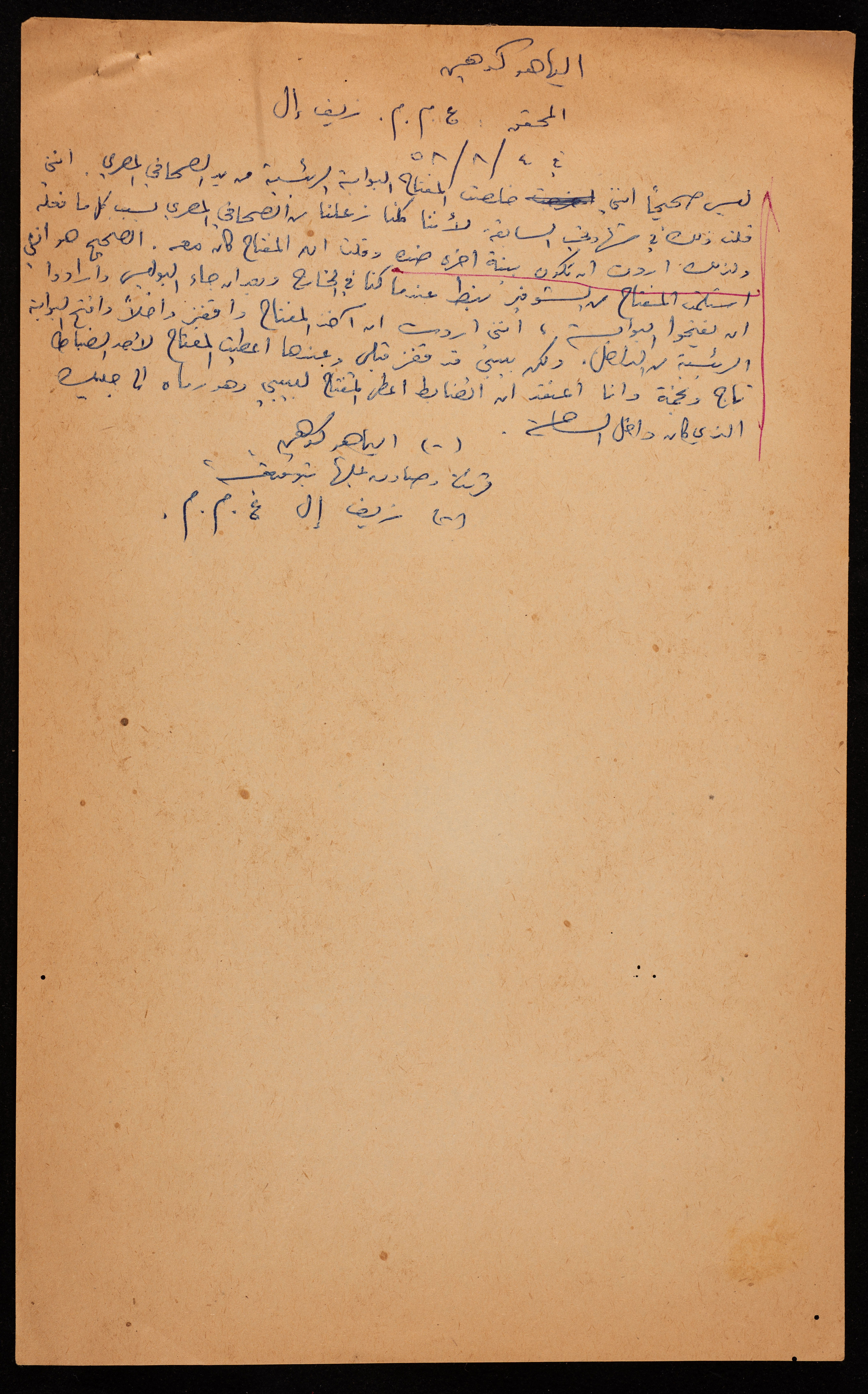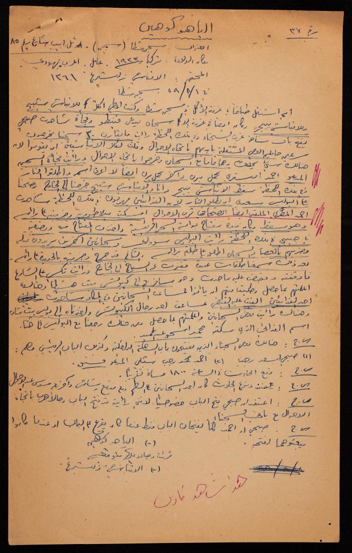 وثيقة مكتوبة بخط يد حنا نقارة، حيفا، بعنوان "الياهو كوهين"، مترجمة من اللغة العبرية، تضمنت شهادات خاصة بملف قضائي، لعام 1958.