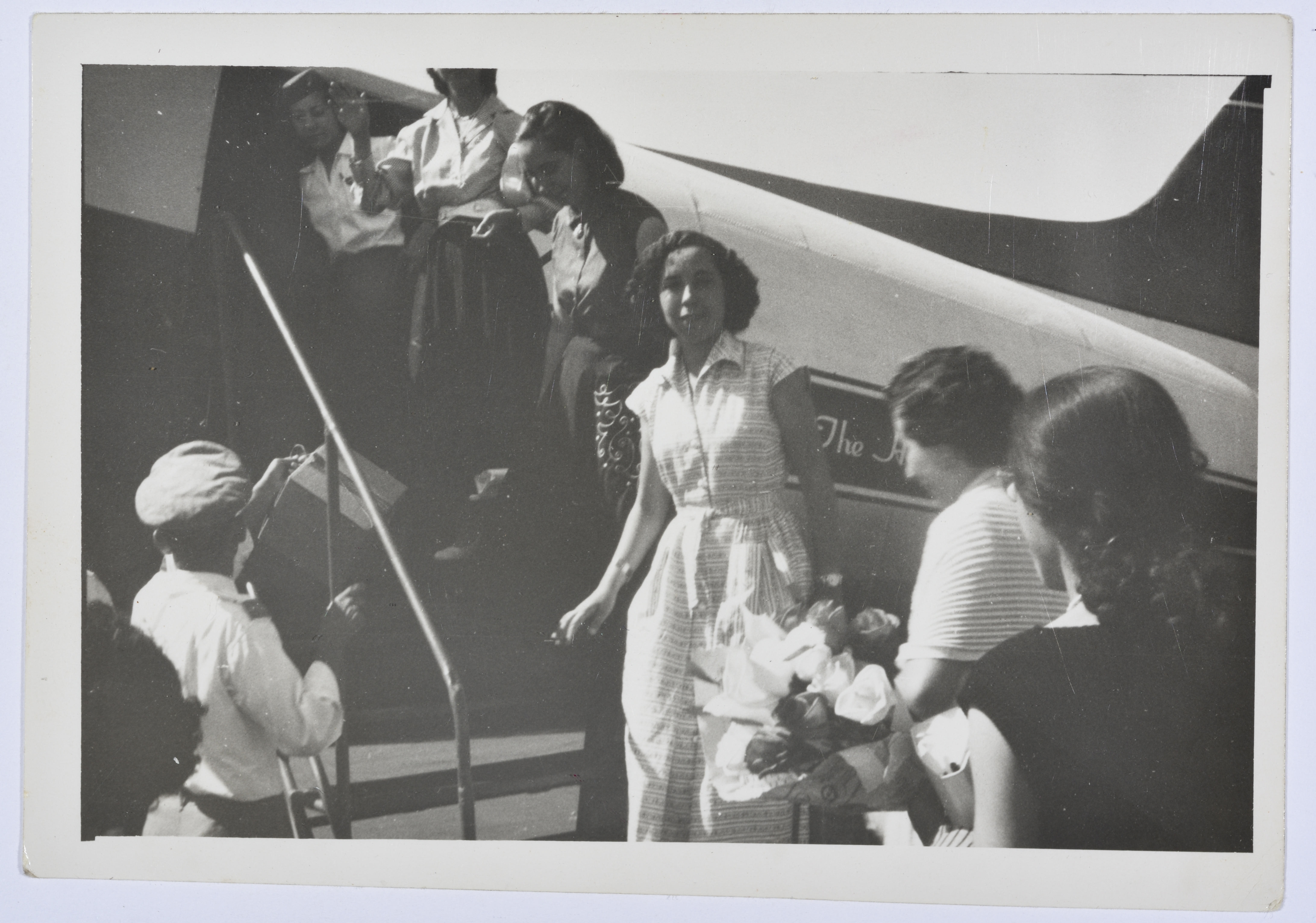 Found in the Mahira Dajani Collection, this photograph shows girls at Cairo Airport on 17 August 1956.