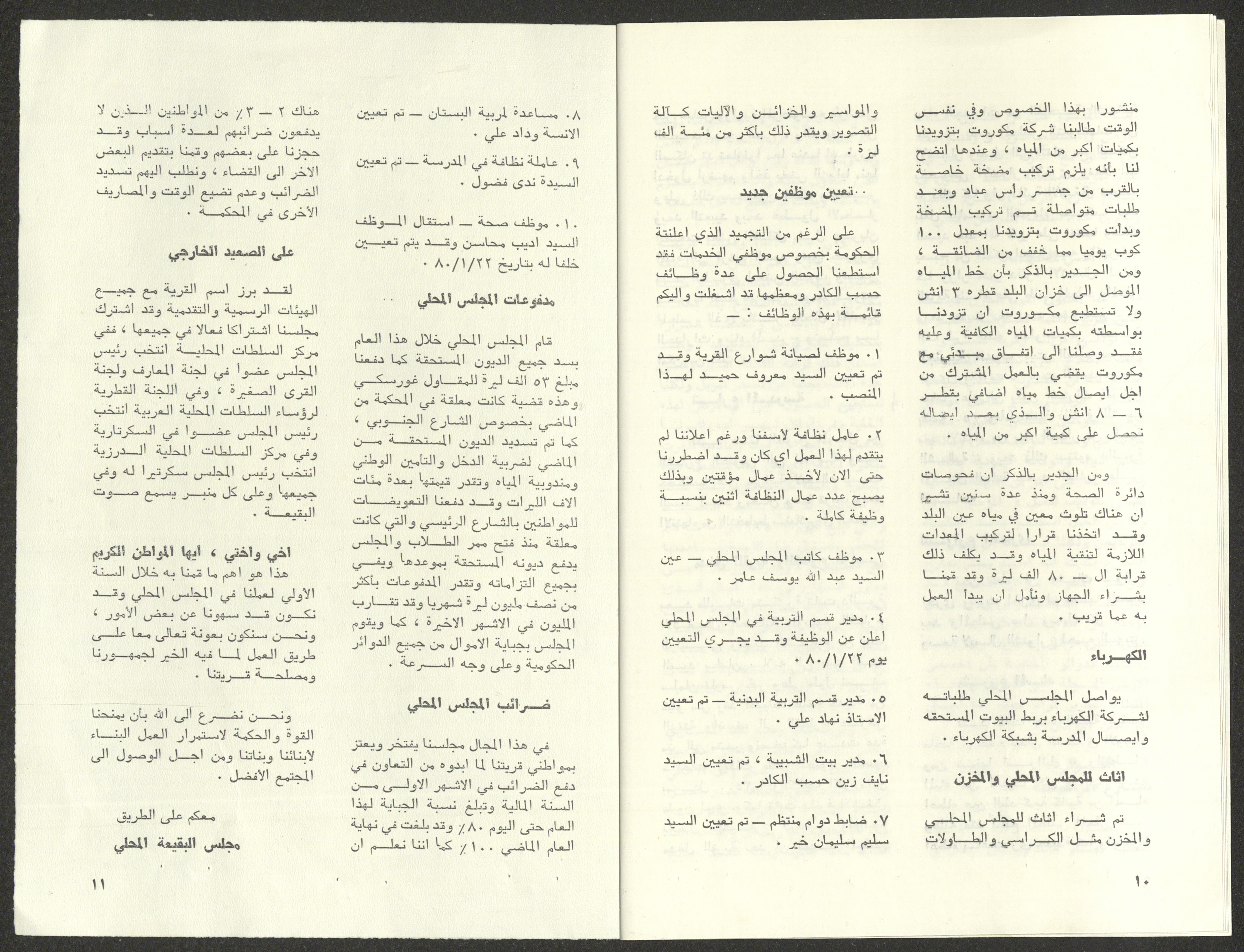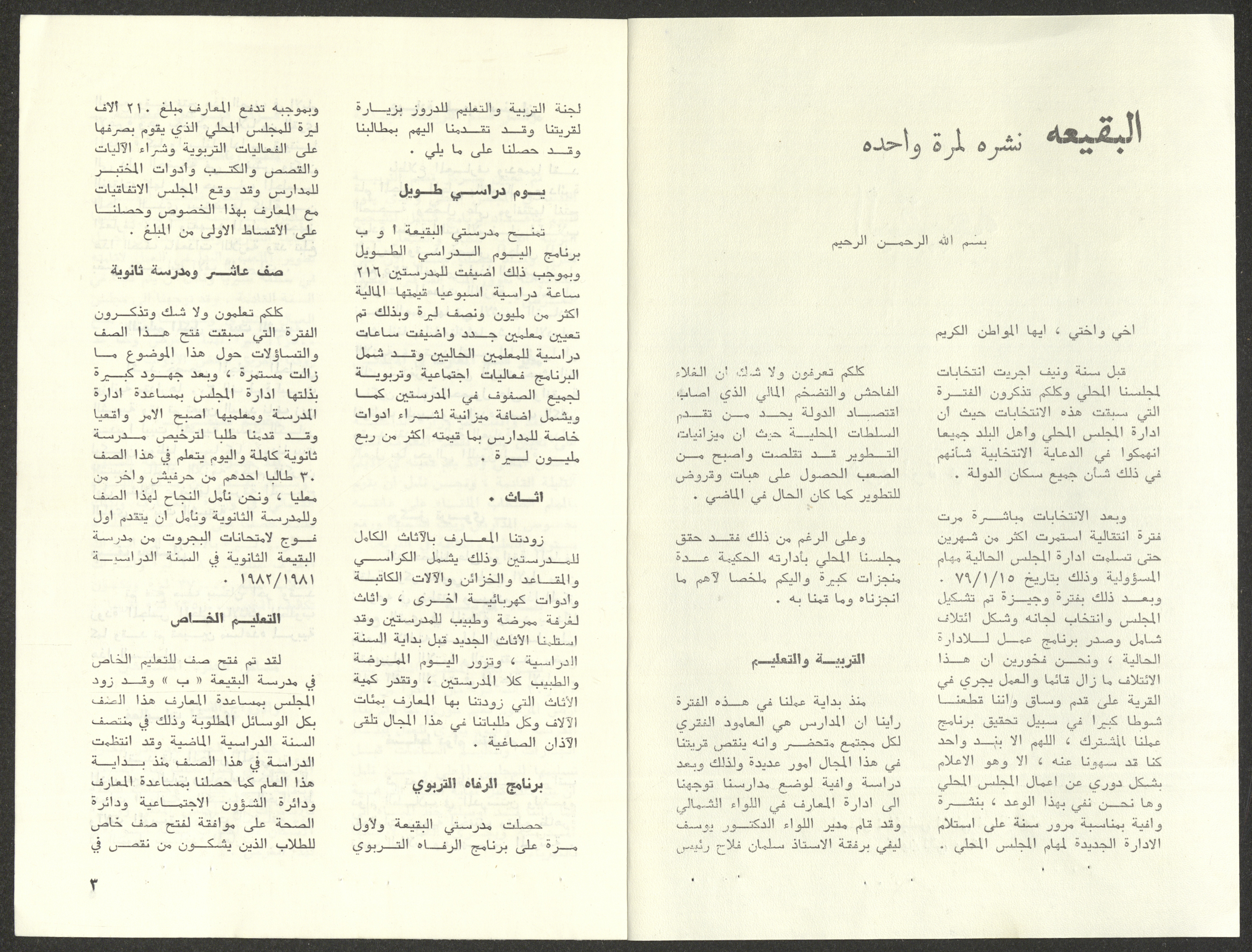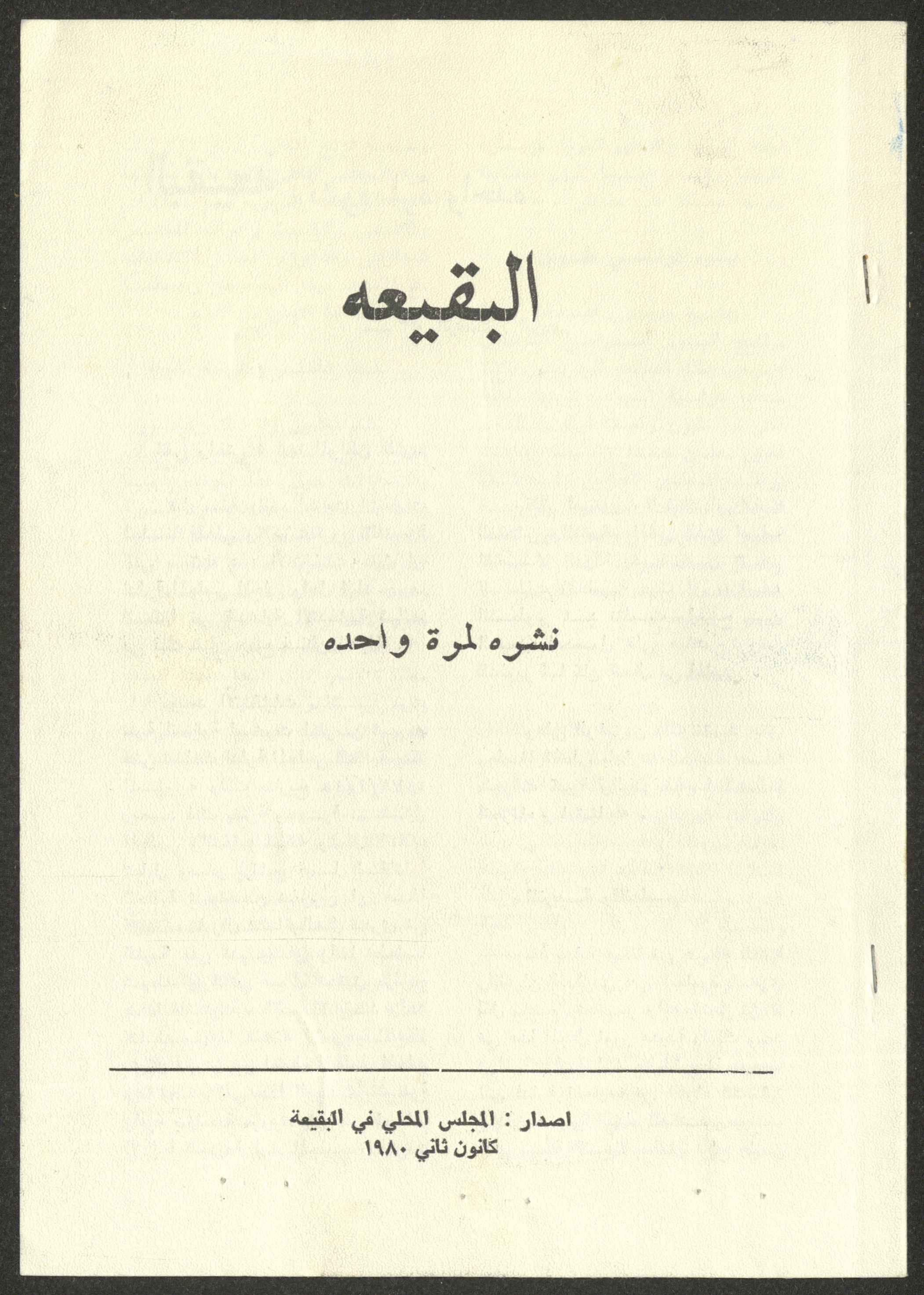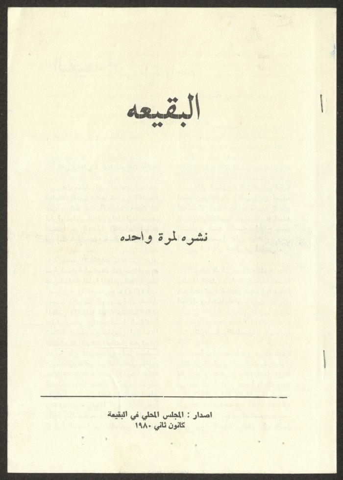 "البقيعة" نشرة صادرة عن المجلس المحلي في البقيعة، كانون الثاني 1980
