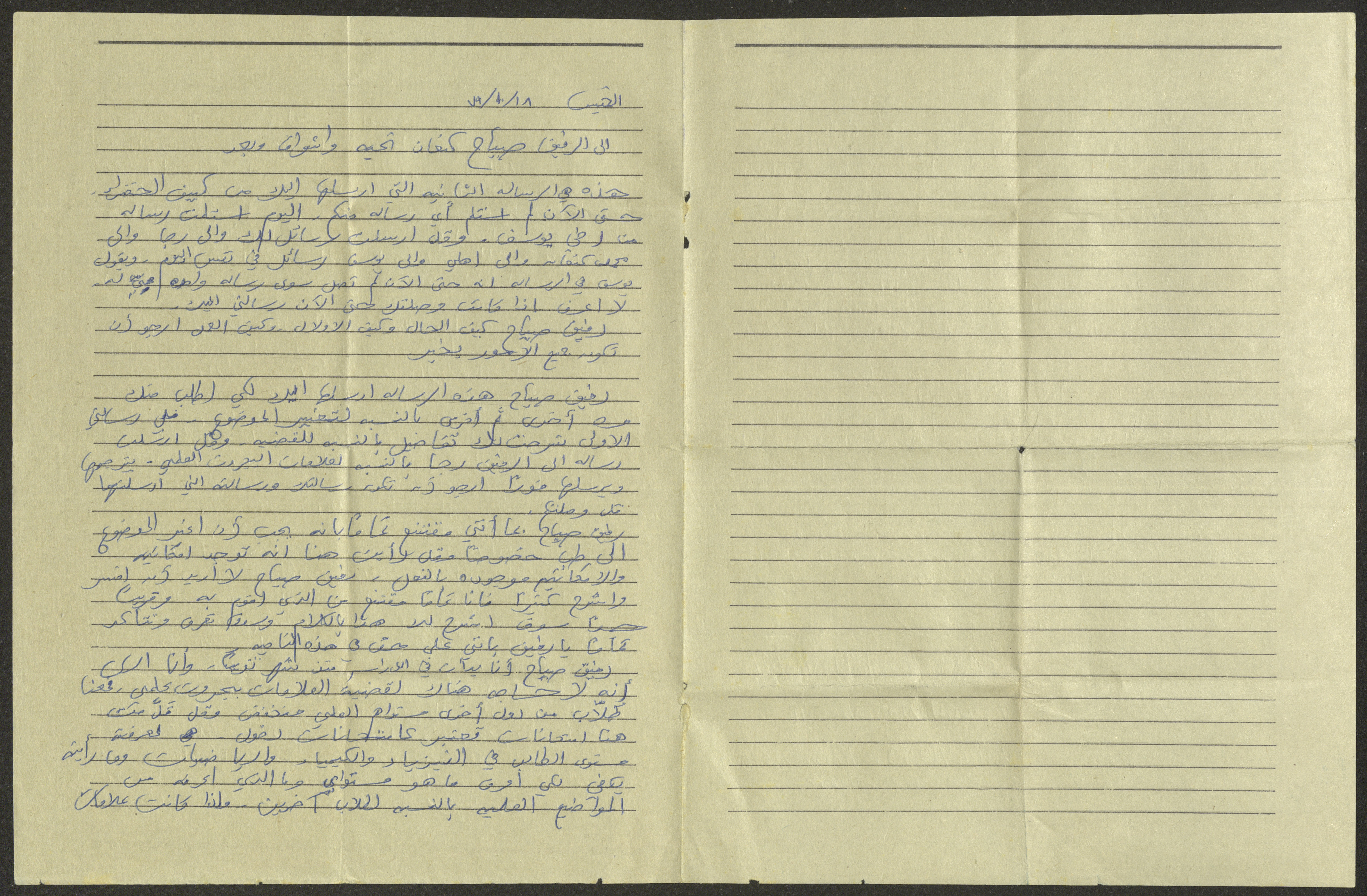 رسالة من عبد الله أبو معروف إلى صيّاح كنعان، 18 تشرين الثاني 1979