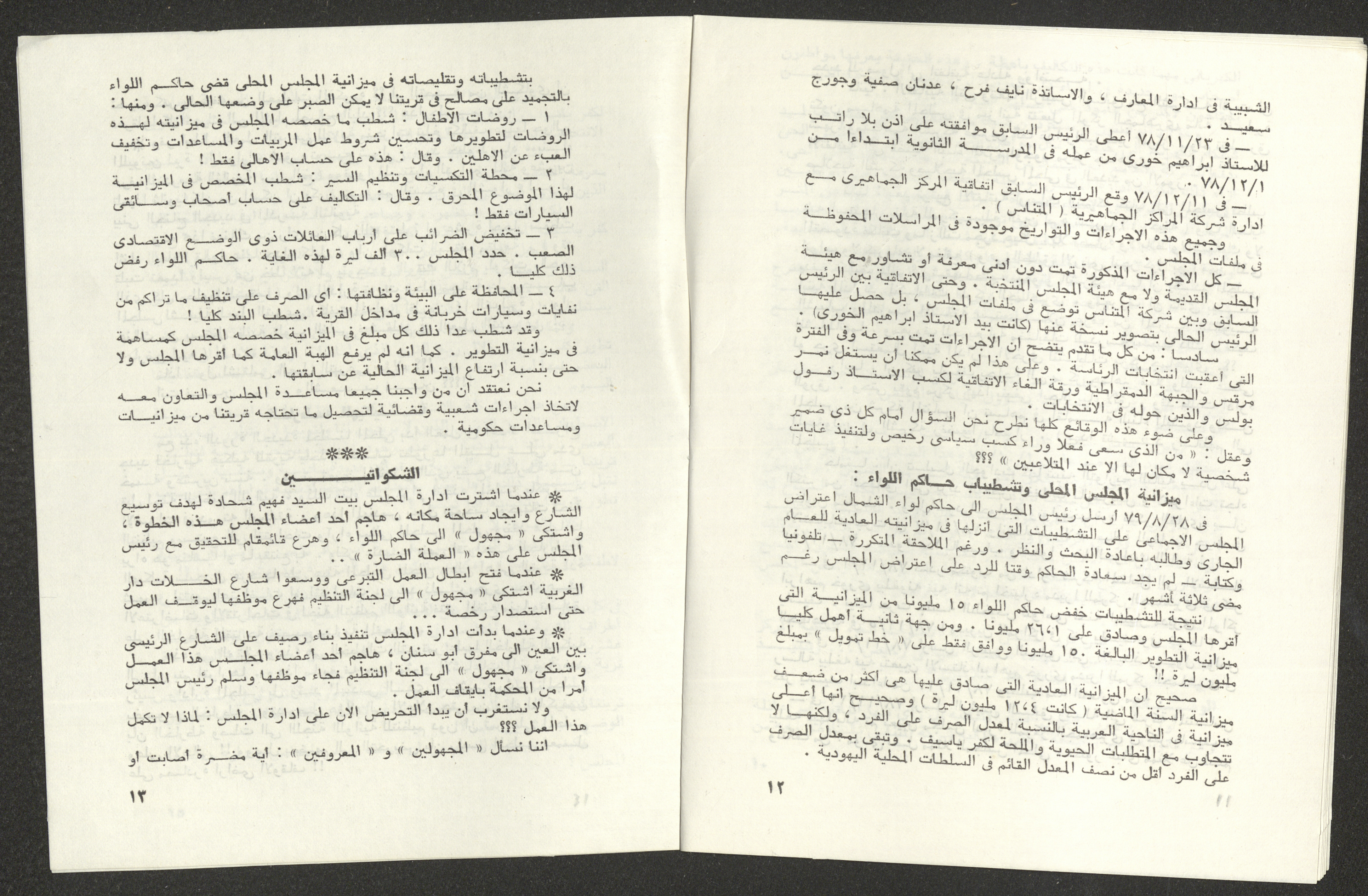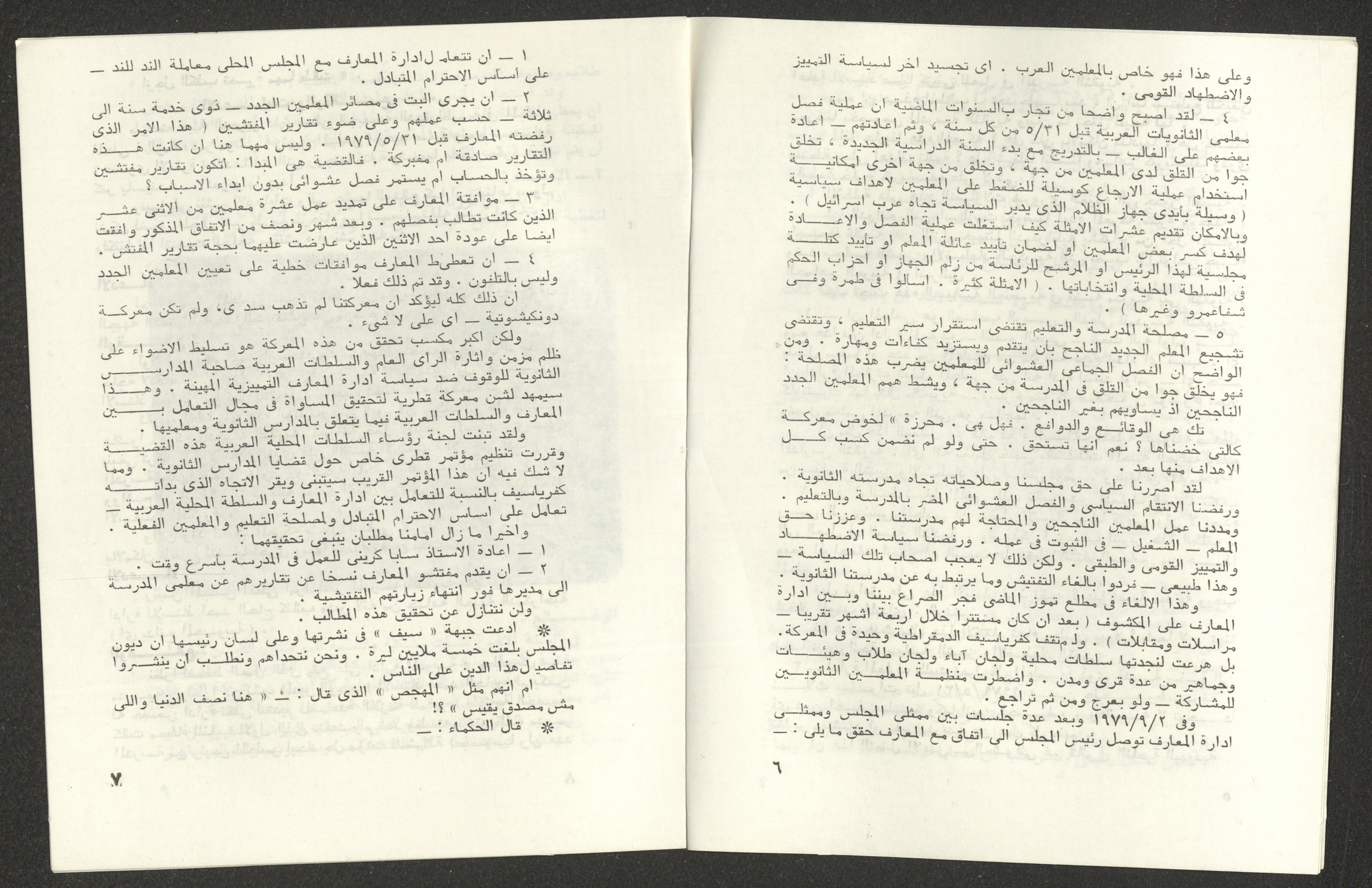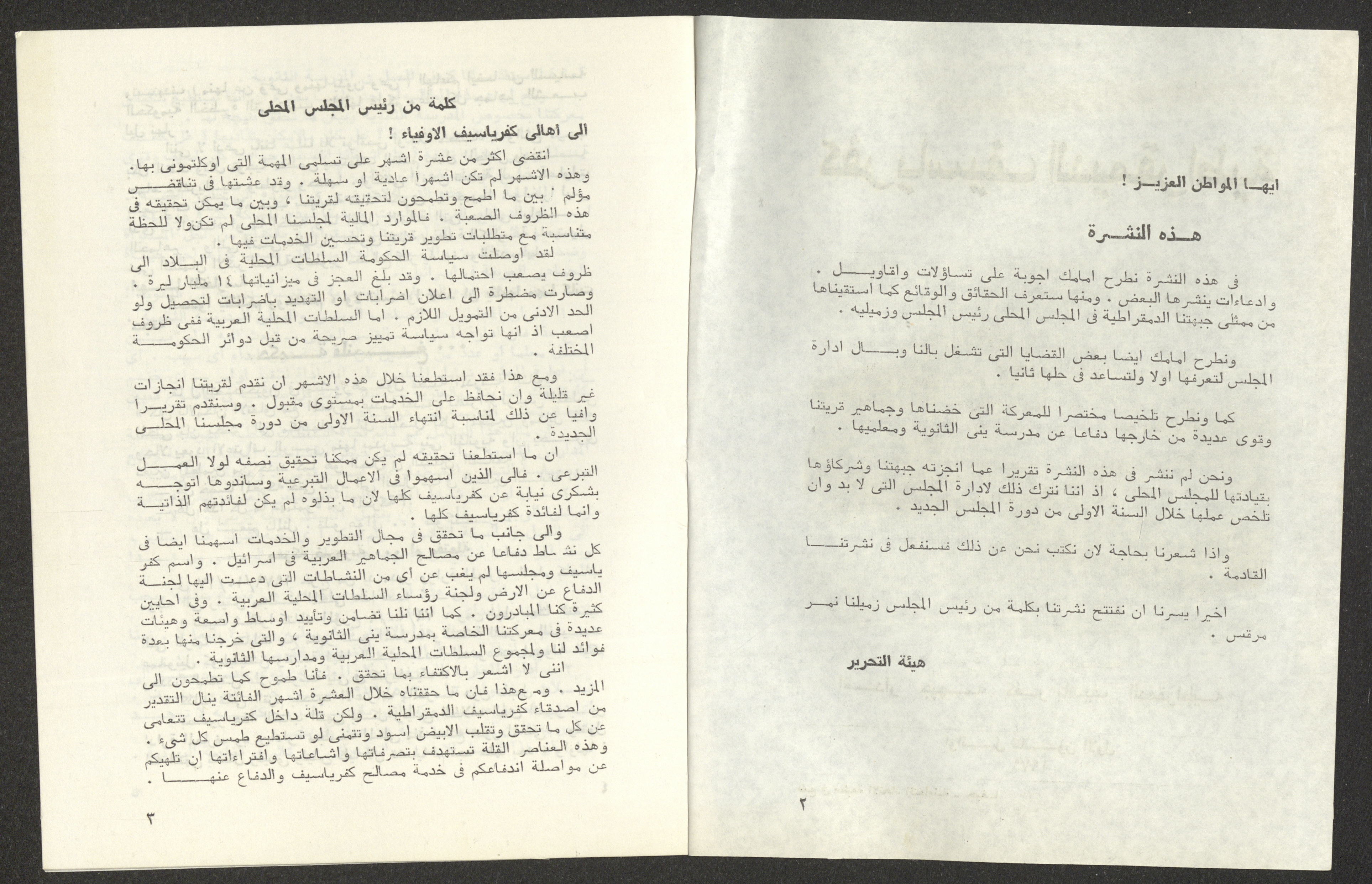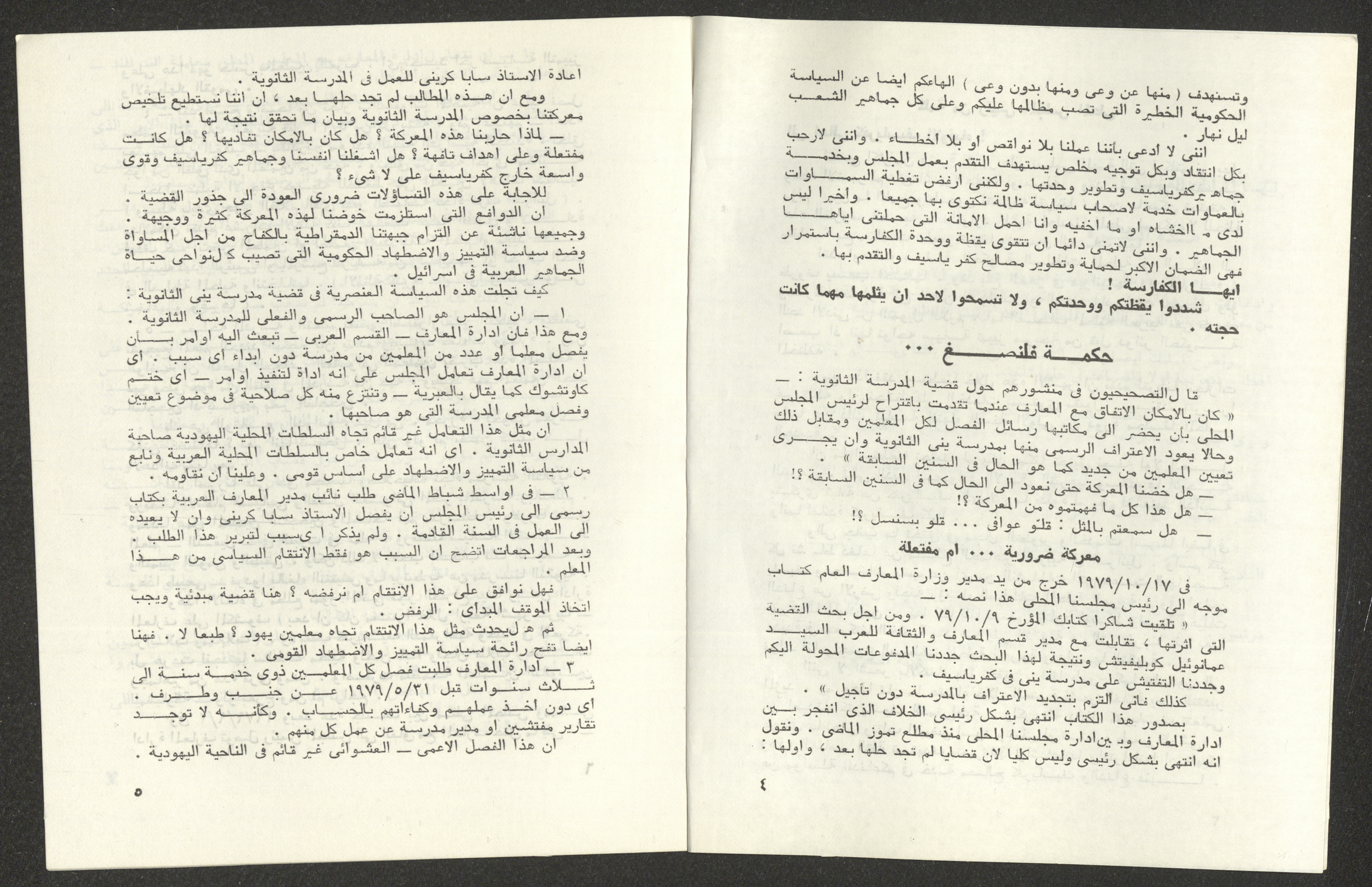 "كفر ياسيف الديموقراطية"، نشرة صادرة عن جبهة كفر ياسيف الديموقراطية، كانون الأول 1979