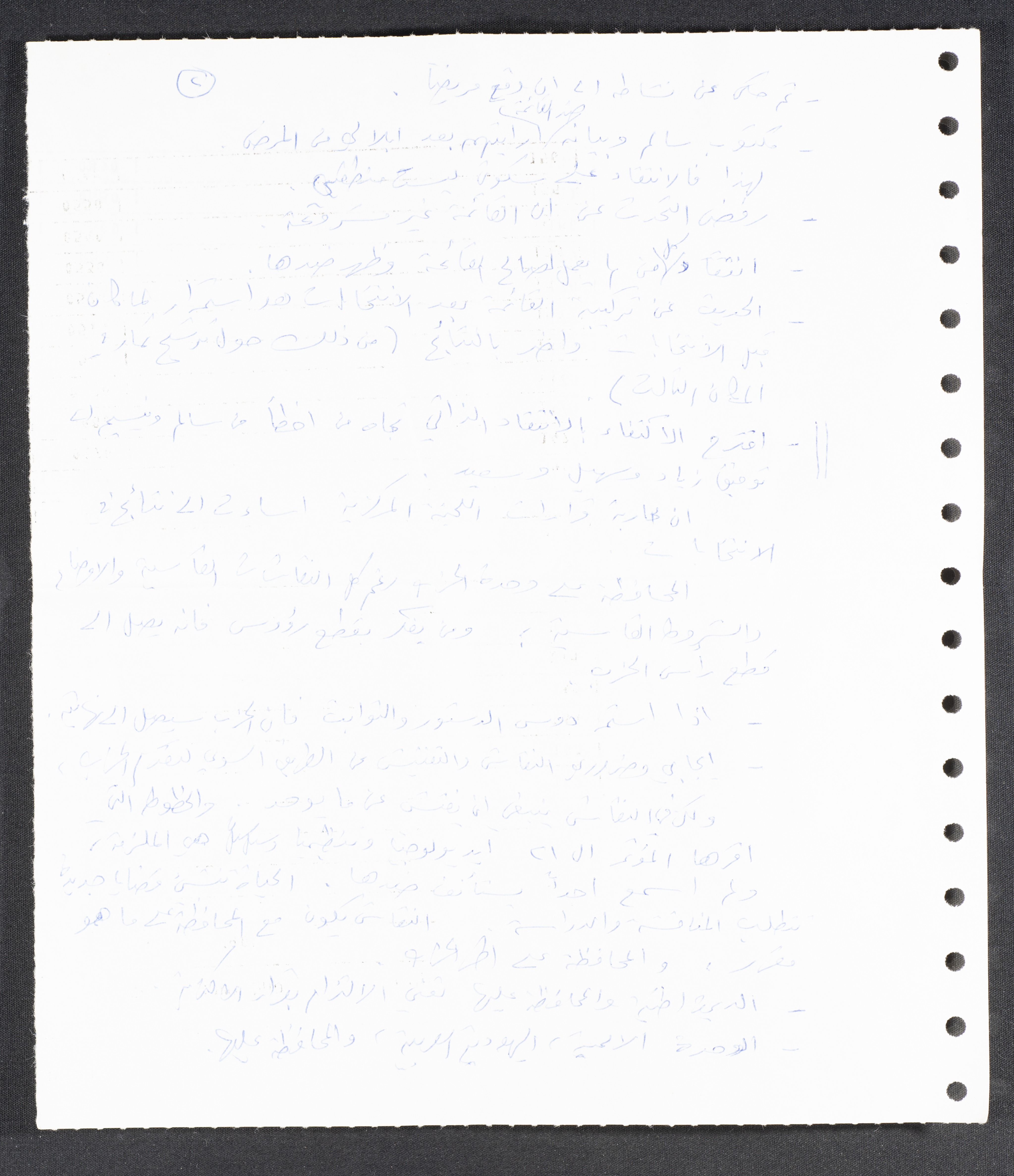 محضر لاجتماع عُقد بتاريخ 18 تموز 1992، شارك فيه 43 شخصًا، وناقشوا حصار قوات الاحتلال الإسرائيلي لجامعة النجاح، والمفاوضات التي انتهت بالاتفاق بين الطرفين، بالإضافة للانتخابات وقضايا أخرى.