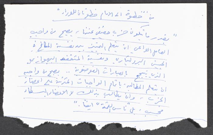 "خطوة الى الأمام خطوتان للوراء" قصاصة ورقية ضمن أرشيف نمر مرقس