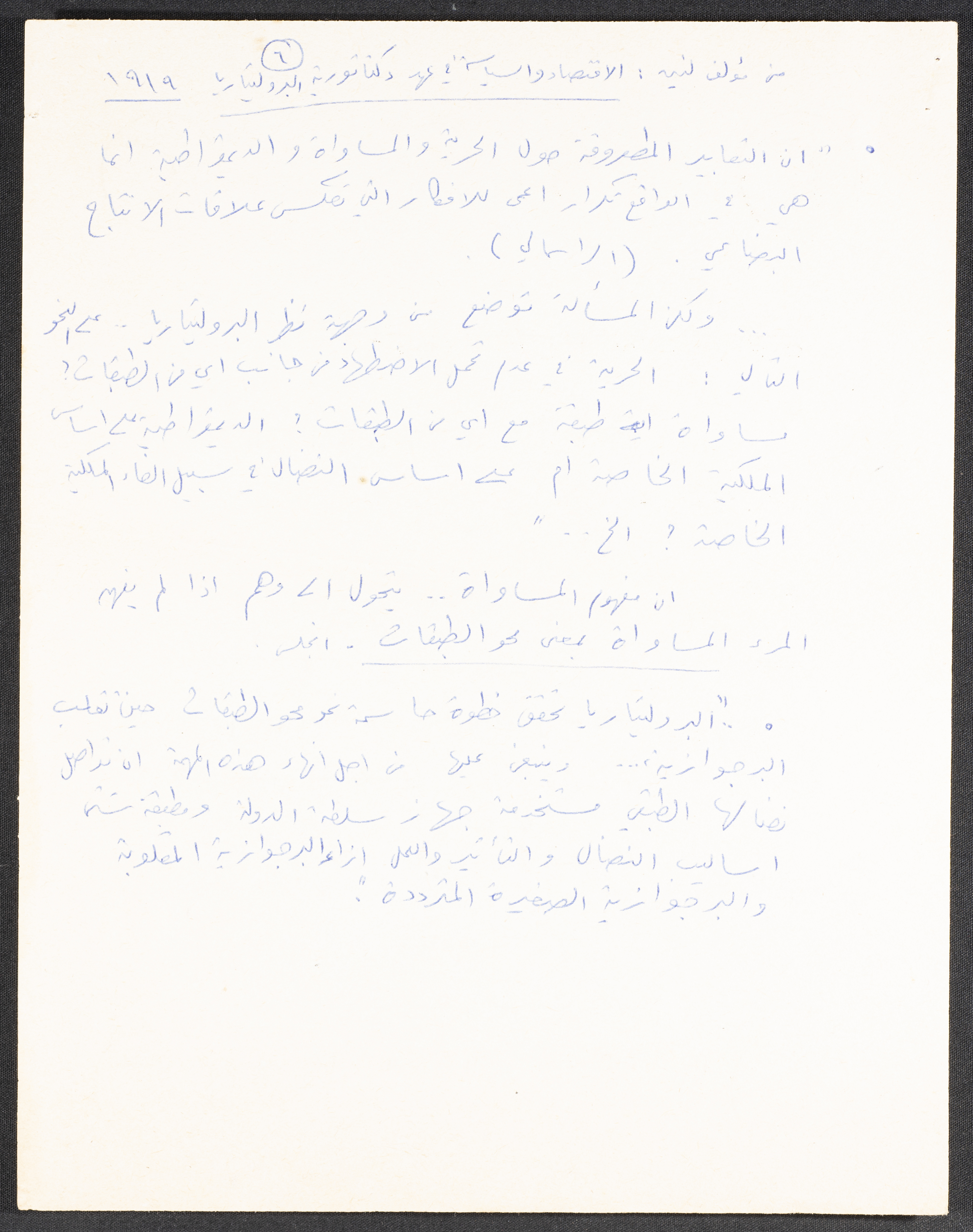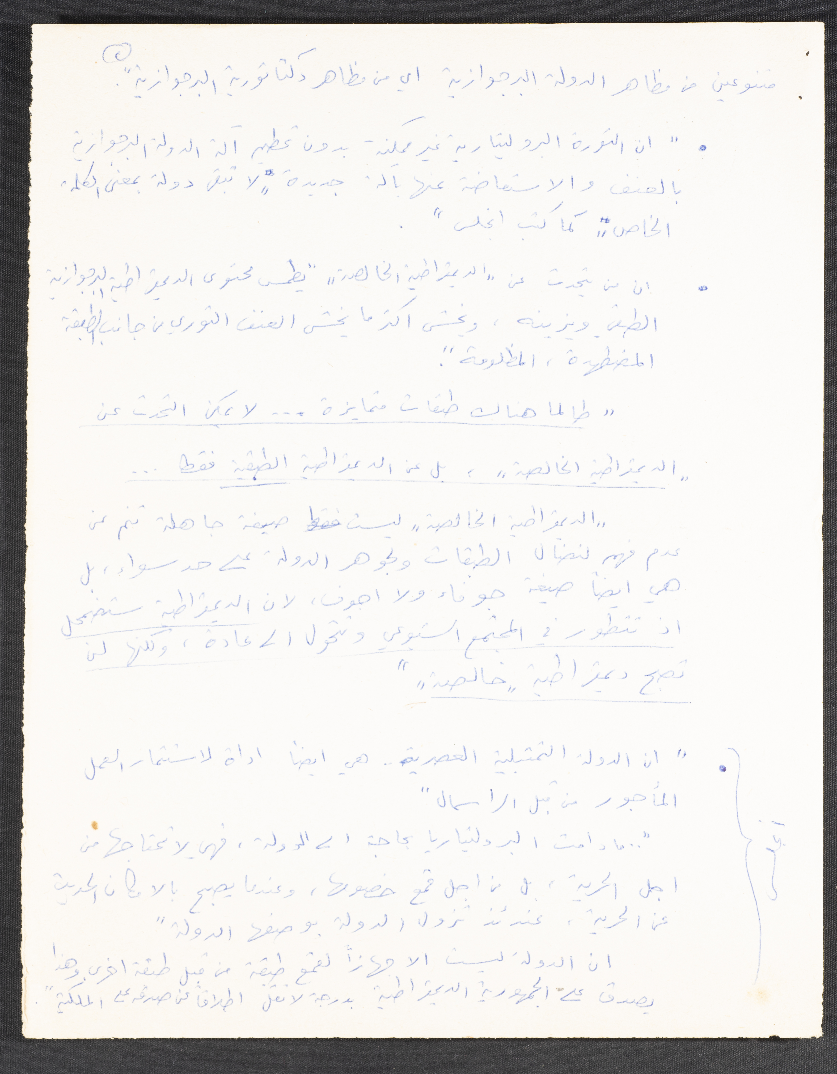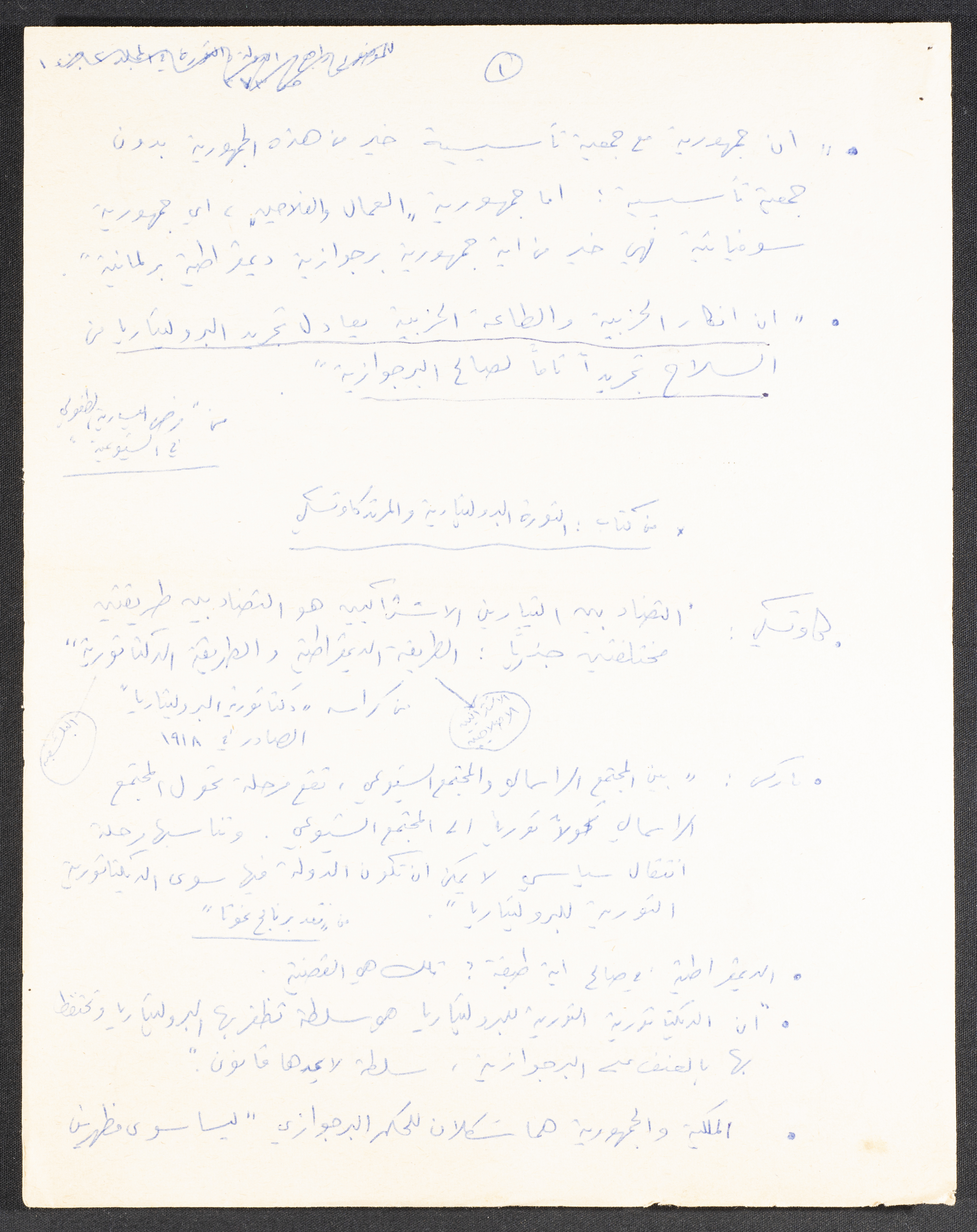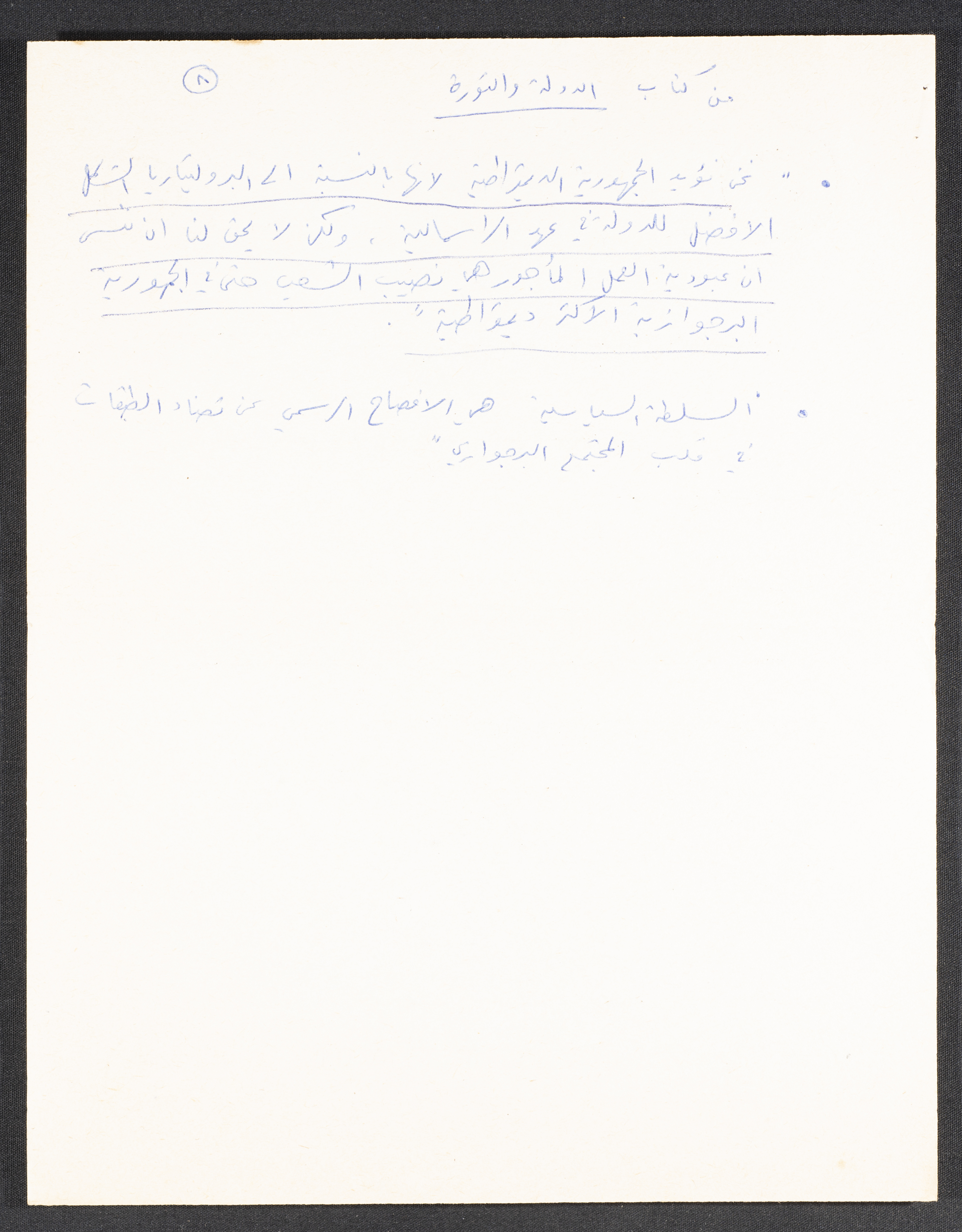 ملاحظات منقولة من كتاب لينين "الثورة البروليتارية والمرتد كاوتسكي"، وجدت في مجموعة نمر مرقس الأرشيفية.