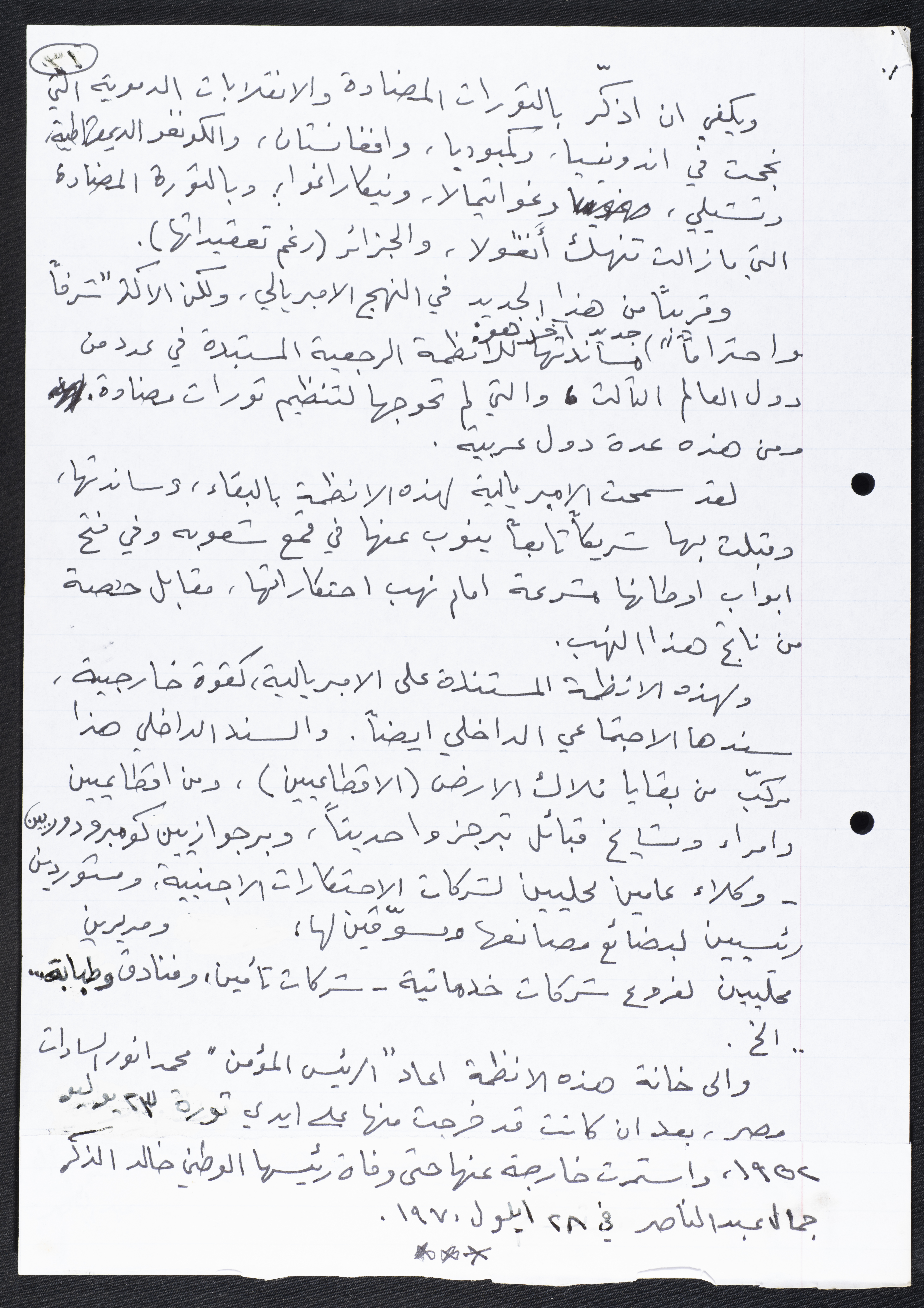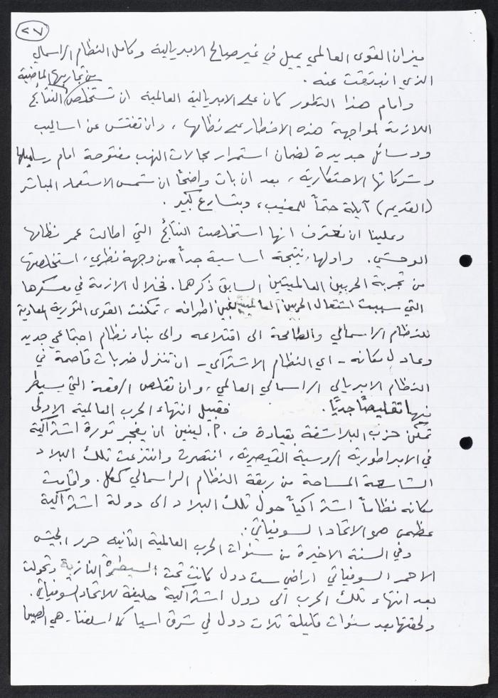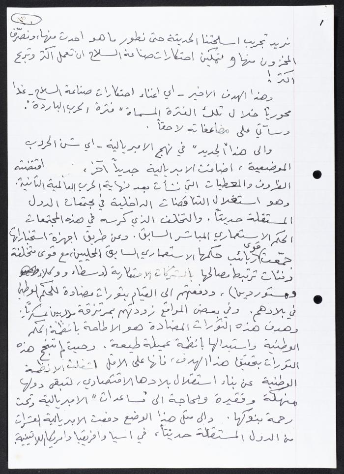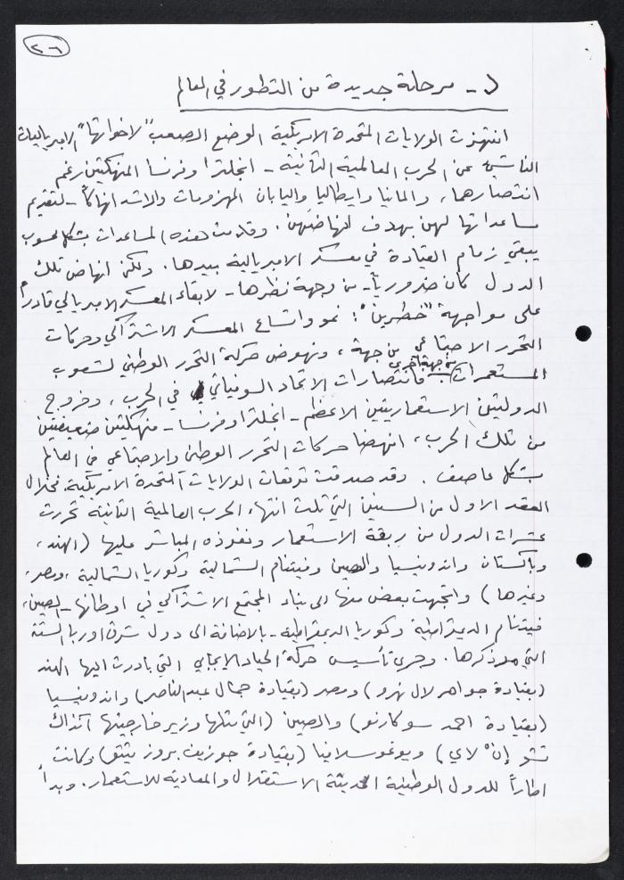 مقال كتبه نمر مرقس بعنوان "مرحلة جديدة من التطور في العالم"، تناول فيه وضع الولايات المتحدة الأمريكية بعد الحرب العالمية الثانية، متطرقًا لوضع الإمبريالية آنذاك.