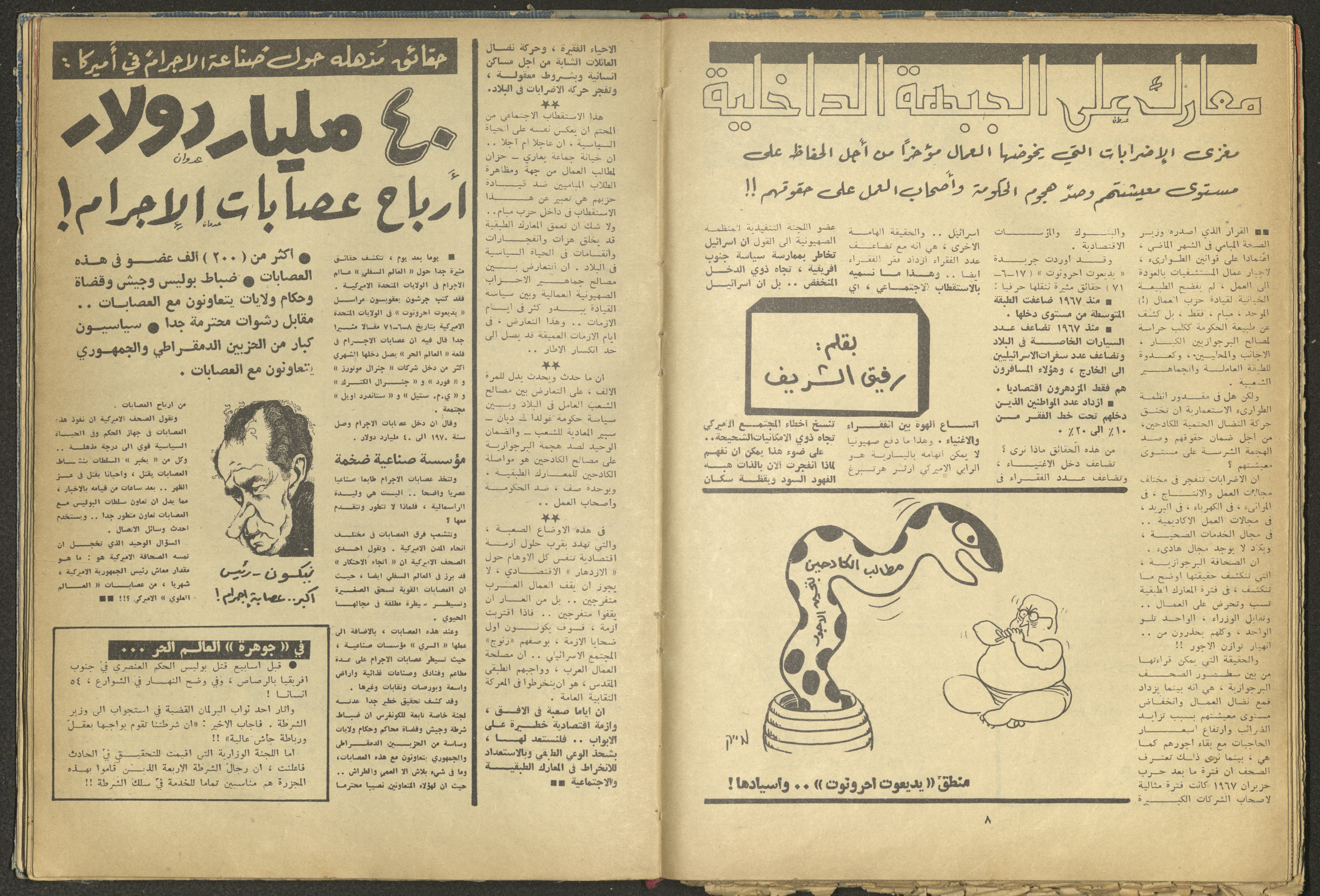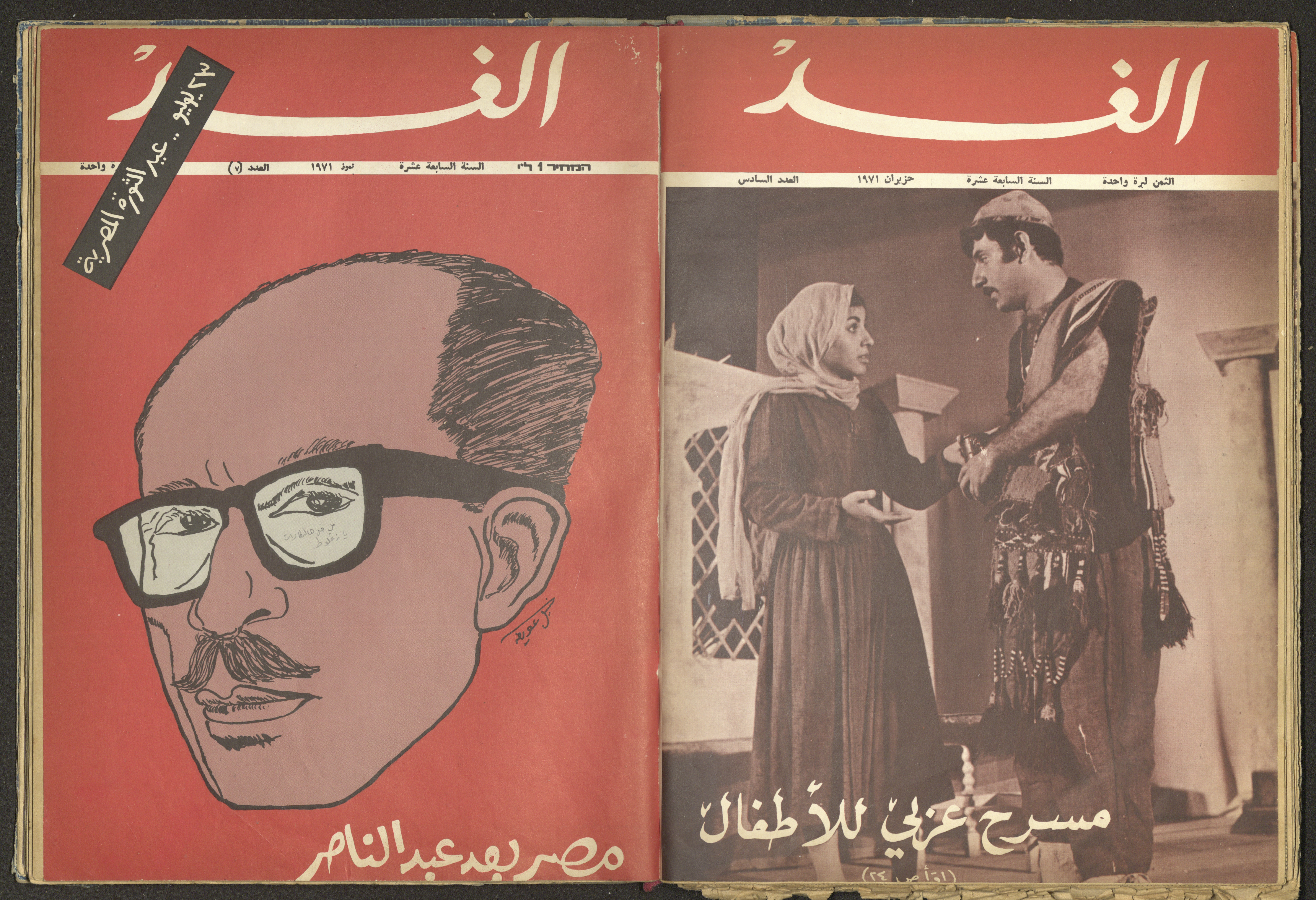 Issued in July 1971, this document shows the seventh issue of al-Ghad Magazine, which is a political magazine issued by the Communist Party Youth.