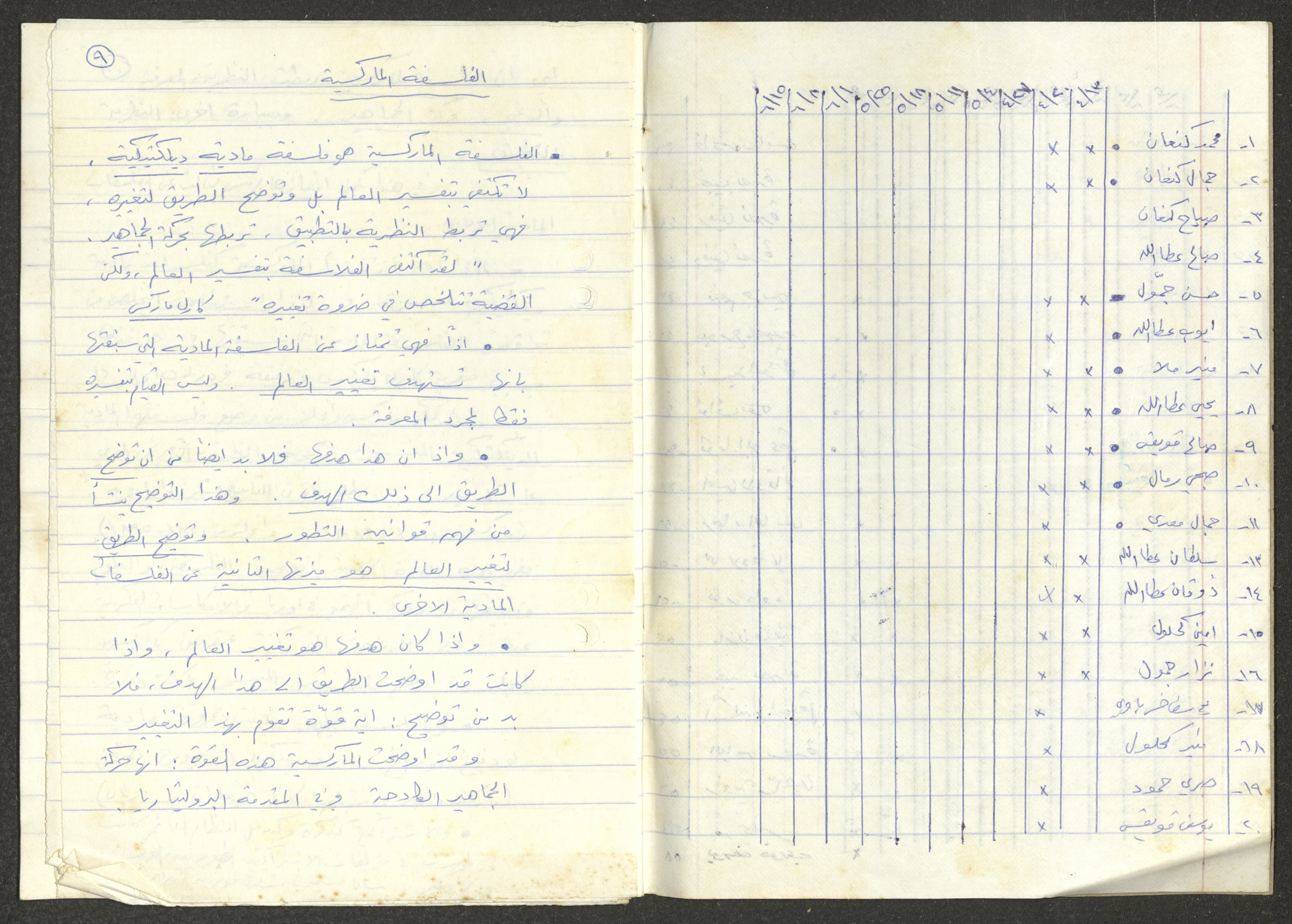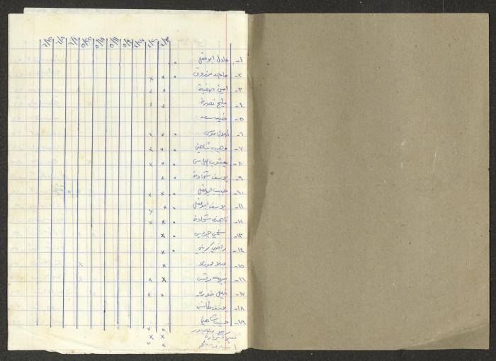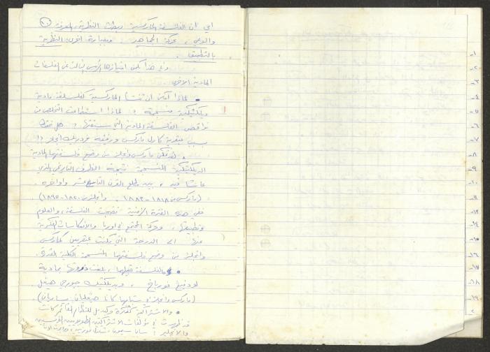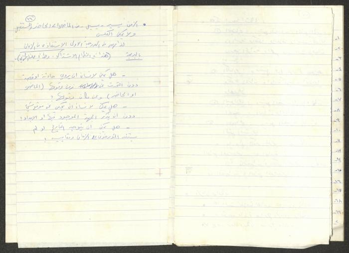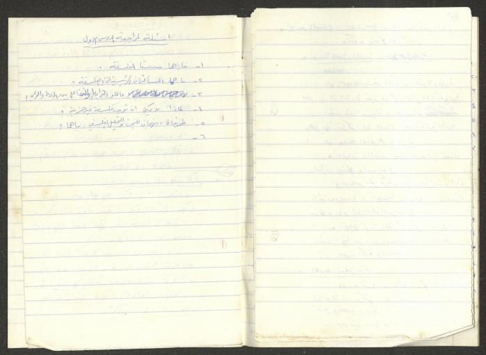 تمثل هذه المادة الموجودة ضمن أرشيف نمر مرقس دفتر بعنوان "الدورة الحزبية 13/4/83".