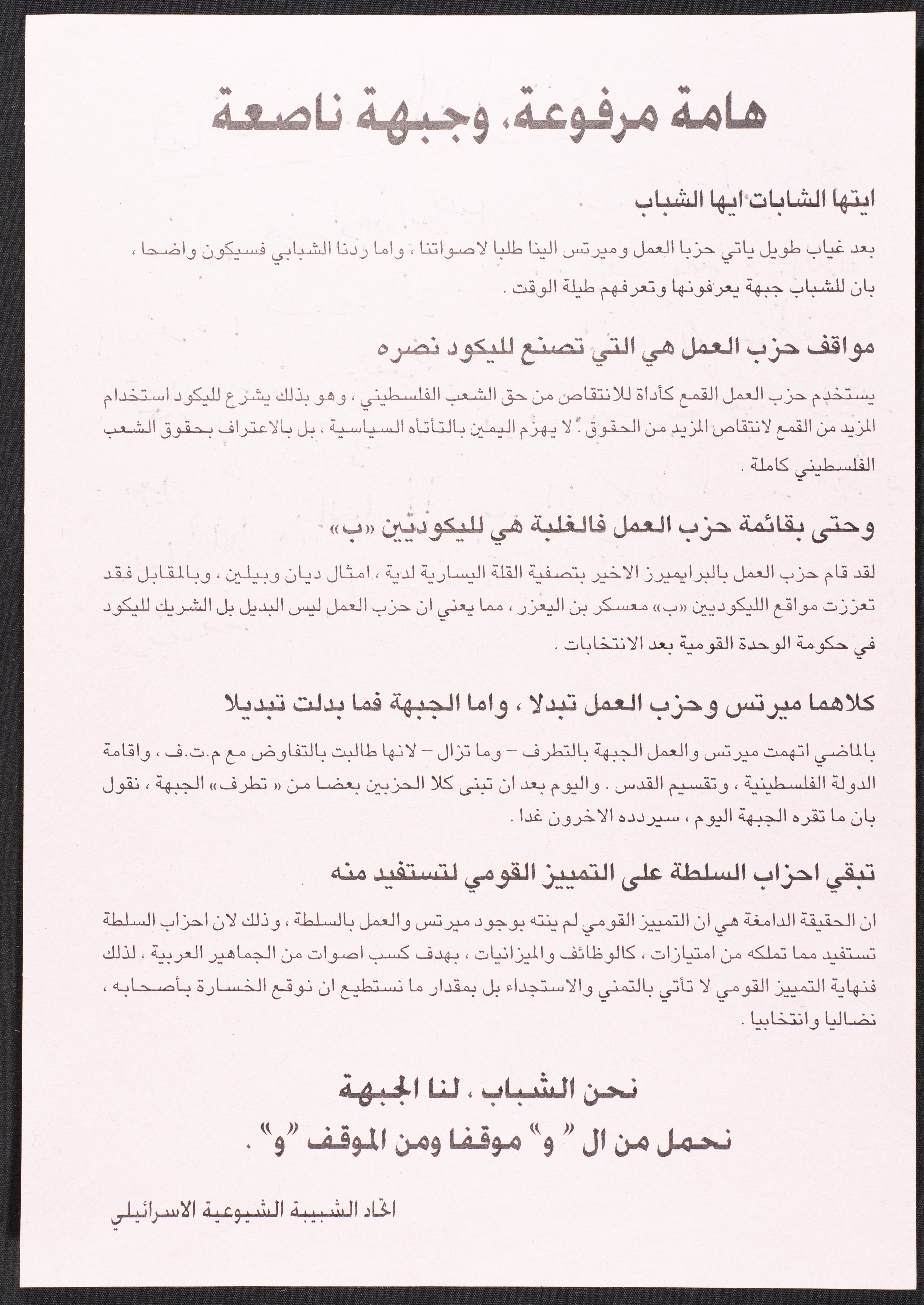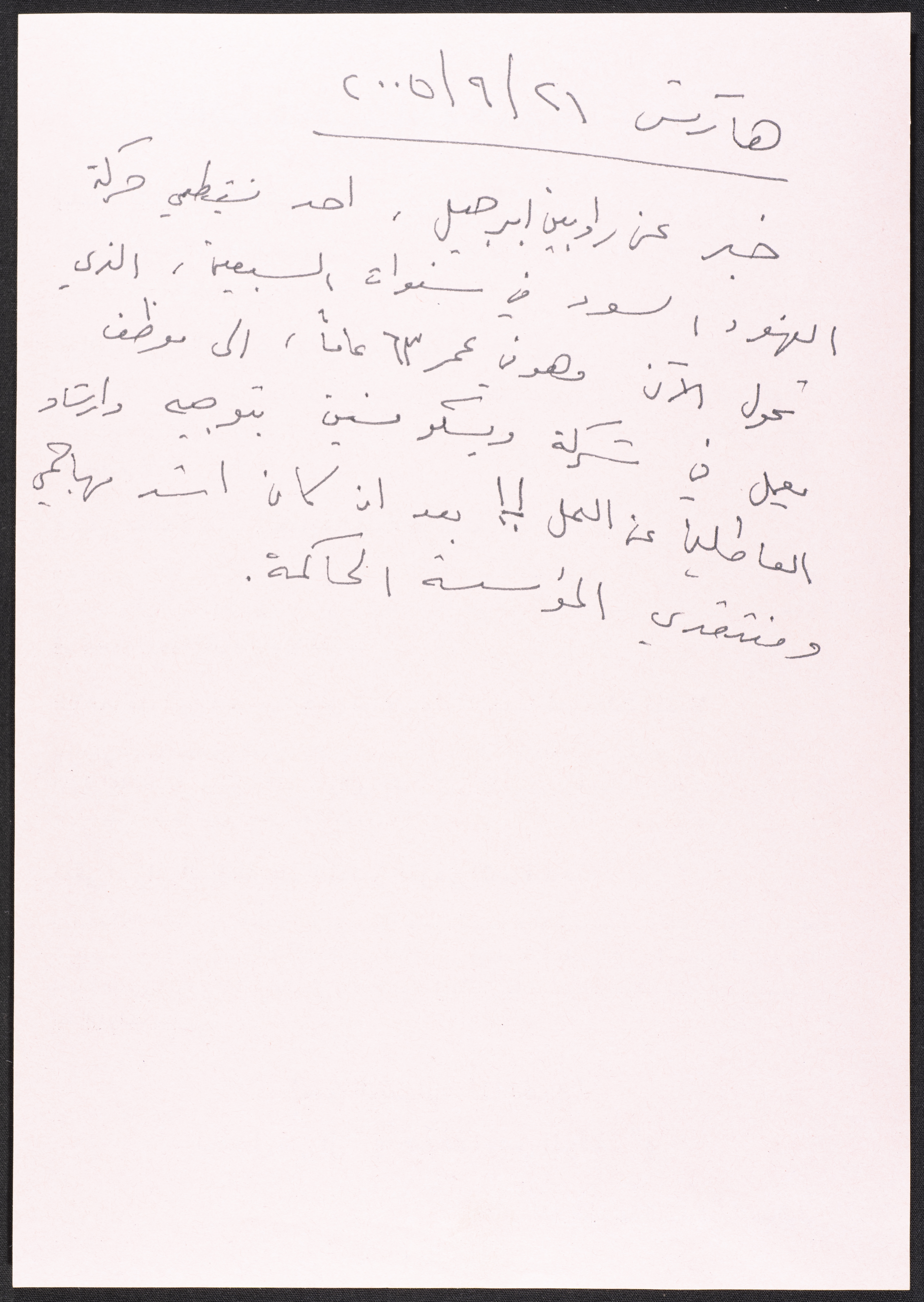 قصاصة ورقية كتبها نمر مرقس تعليقًا على خبر في صحيفة هآرتس، 21 أيلول 2005