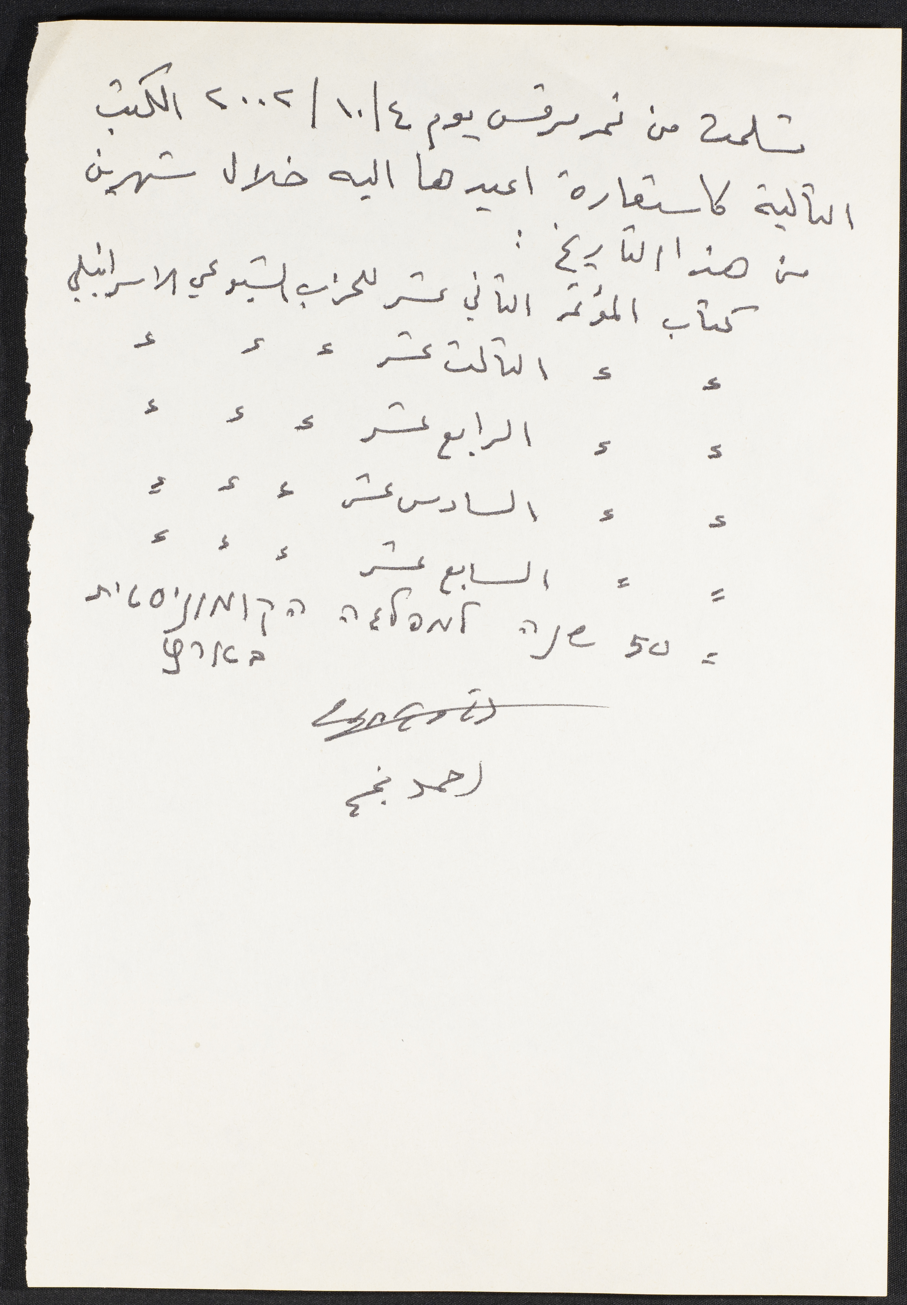 وصل استلام ستة كتب وقعه أحمد نجم لنمر مرقس، 4 تشرين الأول 200