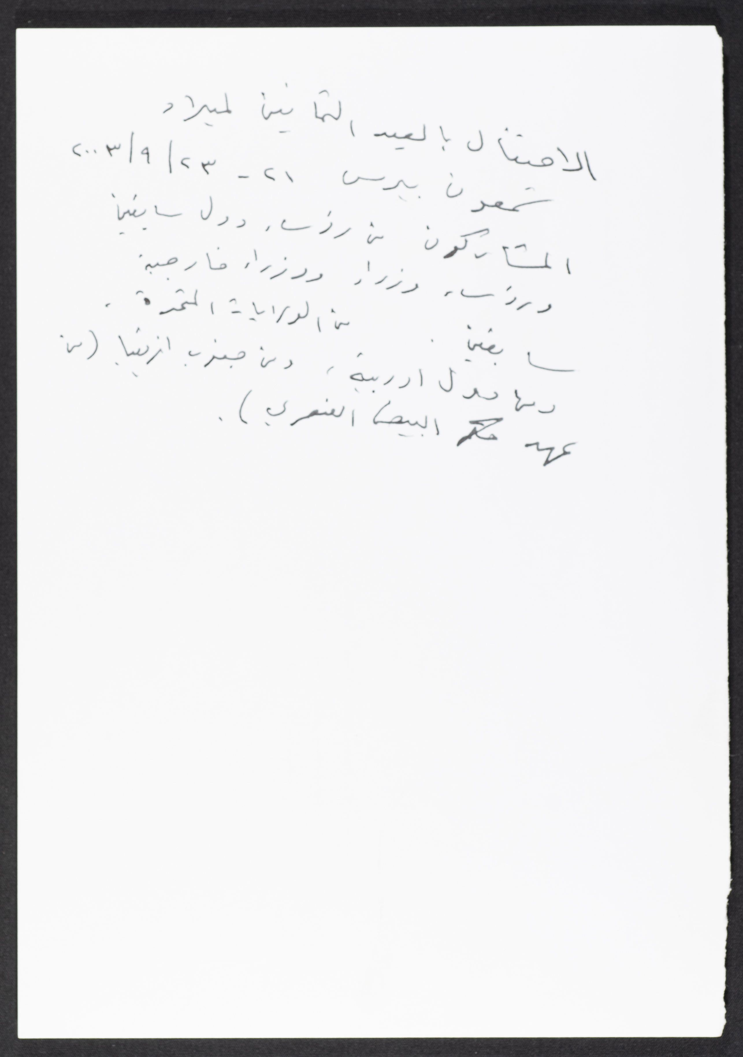 قصاصة ورقية تدور حول الاحتفال بالعيد الثمانين لميلاد شمعون بيرس، في الفترة 21-23 أيلول 2003، حيث كان المشاركون من رؤساء دول سابقين ورؤساء ووزراء خارجية سابقين، من الولايات المتحدة ودول أوروبية وأخرى من دول جنوب إفريقيا.