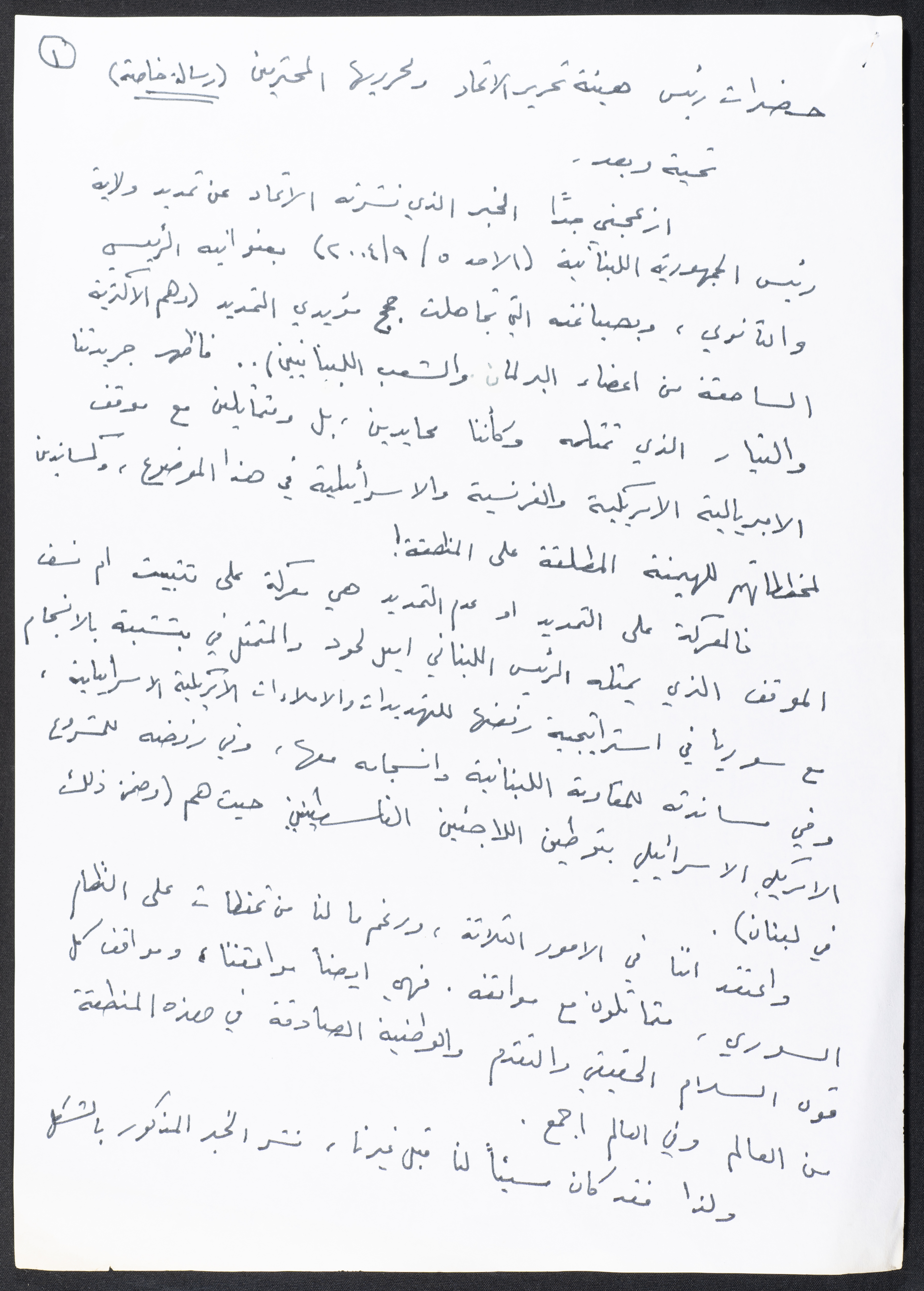 رسالة من نمر مرقس إلى رئيس هيئة تحرير الاتحاد ومحرريها، 6 أيلول 2004